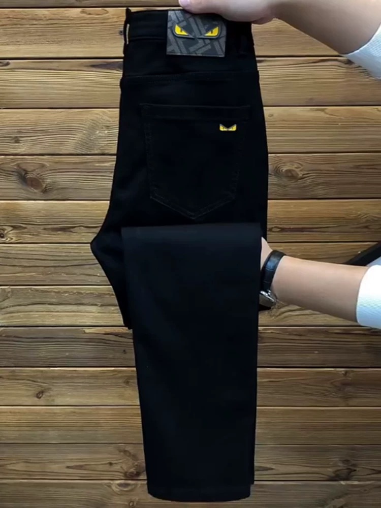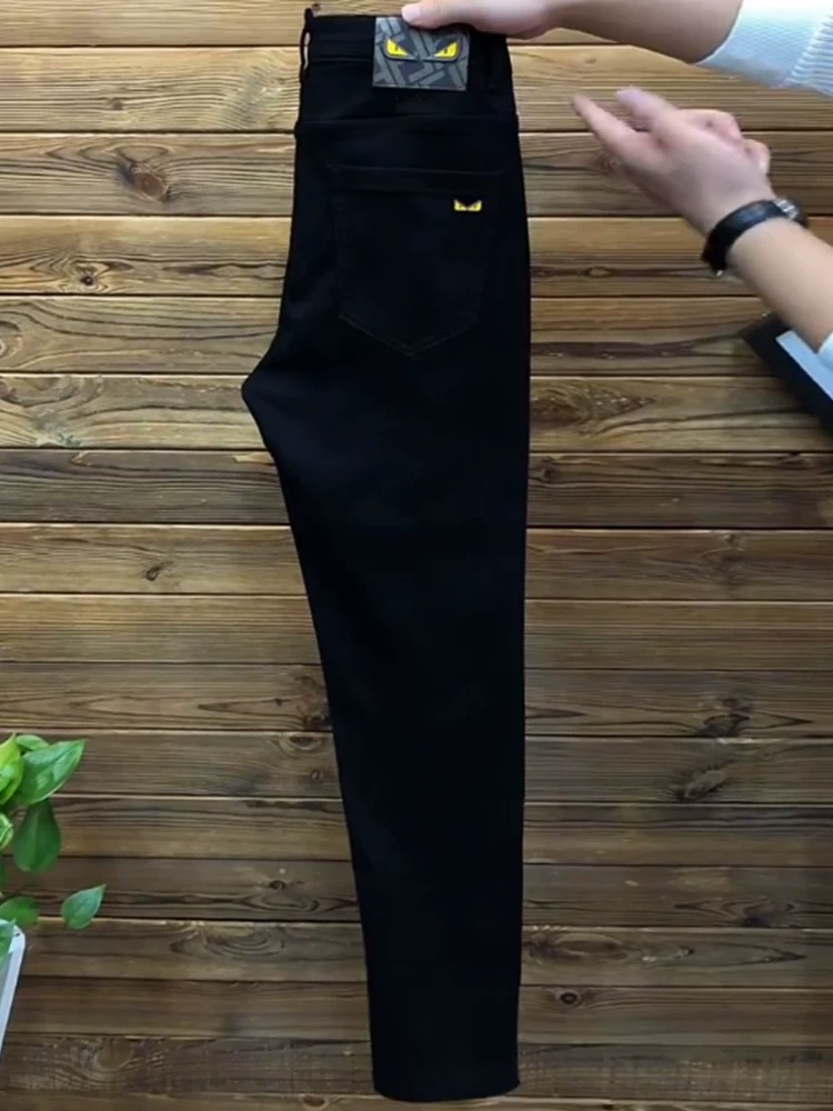 남성용 비즈니스 트렌디 청바지 2025 봄 유럽 트렌디 브랜드 블랙 스몰 피트 팬츠 스트레치 슬림핏 남성용 바지스토어 가기