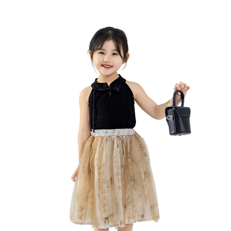 여자 여름 옷 새로운 중국 스타일 조끼 거즈 스커트 Hanfu 정장 2025 새로운 중국 스타일 아기 소녀 여름 투피스 세트