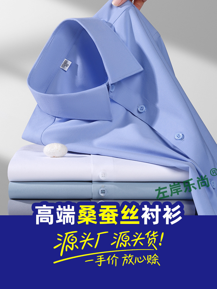 하이 엔드 헤어 프리 멀버리 실크 남성용 반팔 셔츠 화이트 비즈니스 셔츠 블루 그레이 블랙 그린 남성용 셔츠스토어 가기