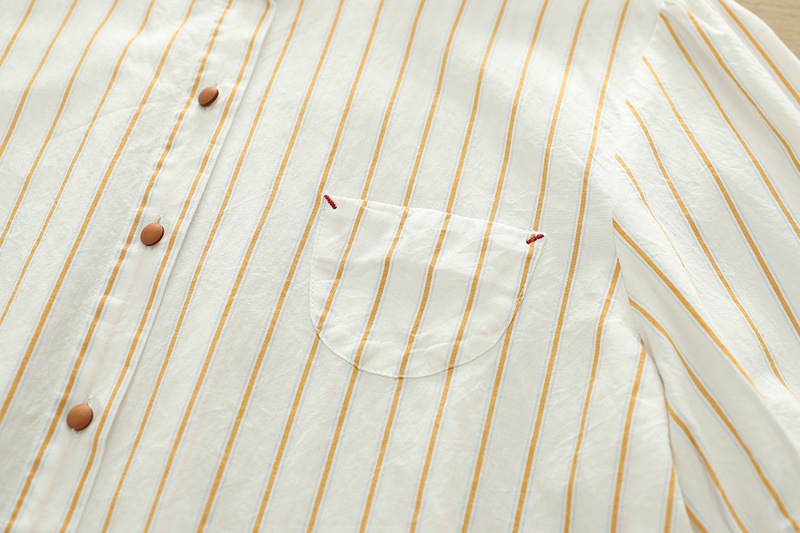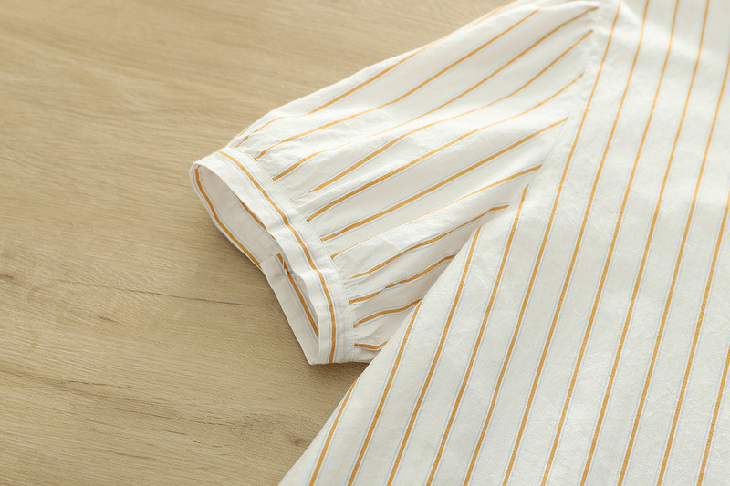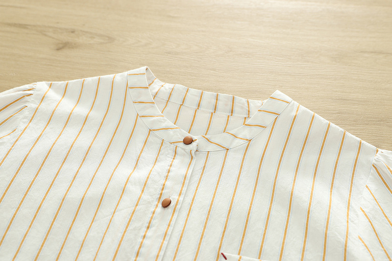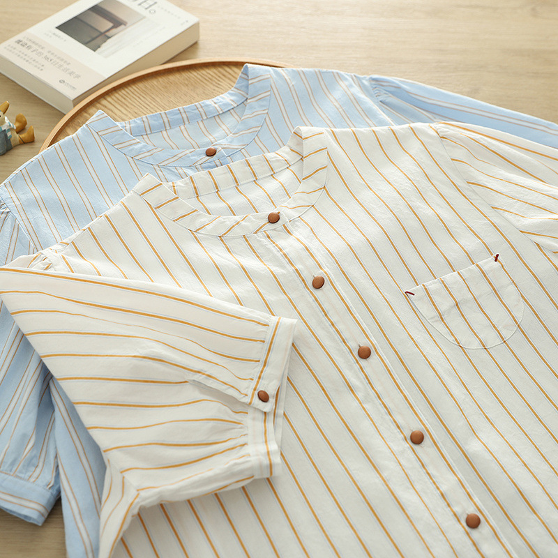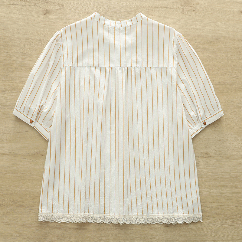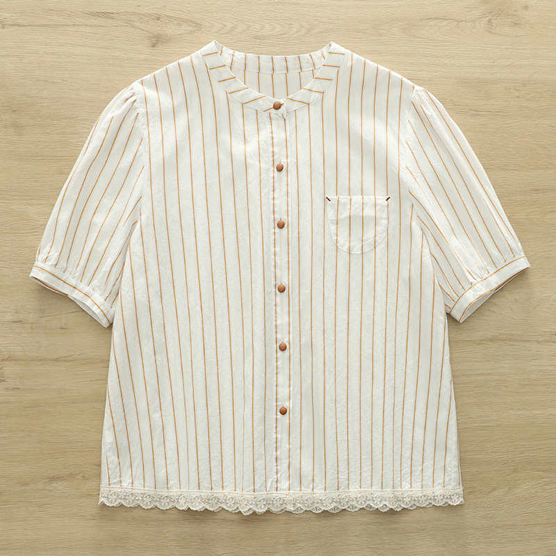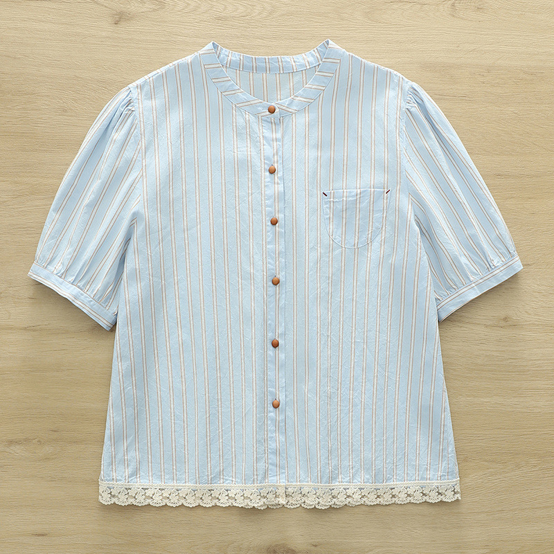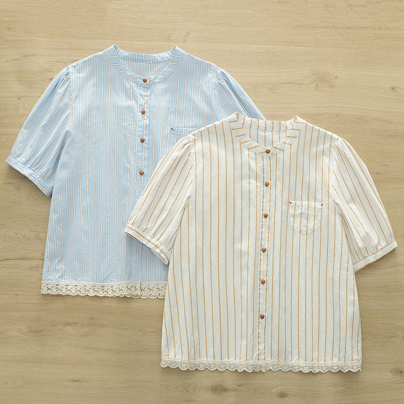 2025 여름 새로운 레이스 헴 스트라이프 프린트 스탠드 칼라 짧은 소매 셔츠 카디건 도매스토어 가기