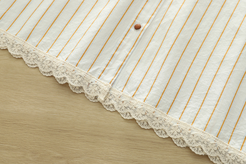 2025 여름 새로운 레이스 헴 스트라이프 프린트 스탠드 칼라 짧은 소매 셔츠 카디건 도매