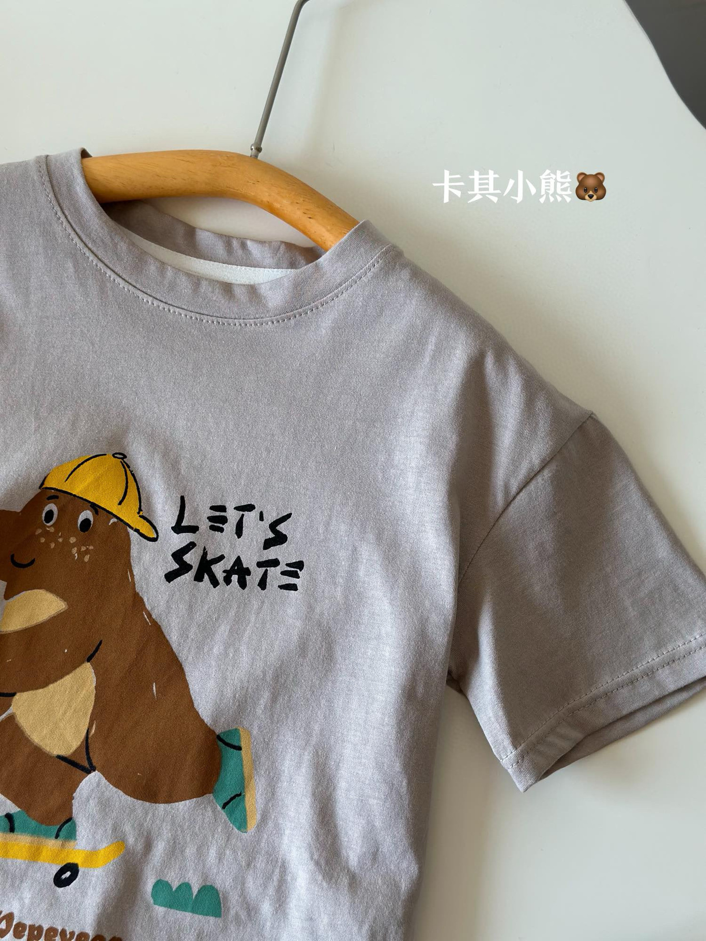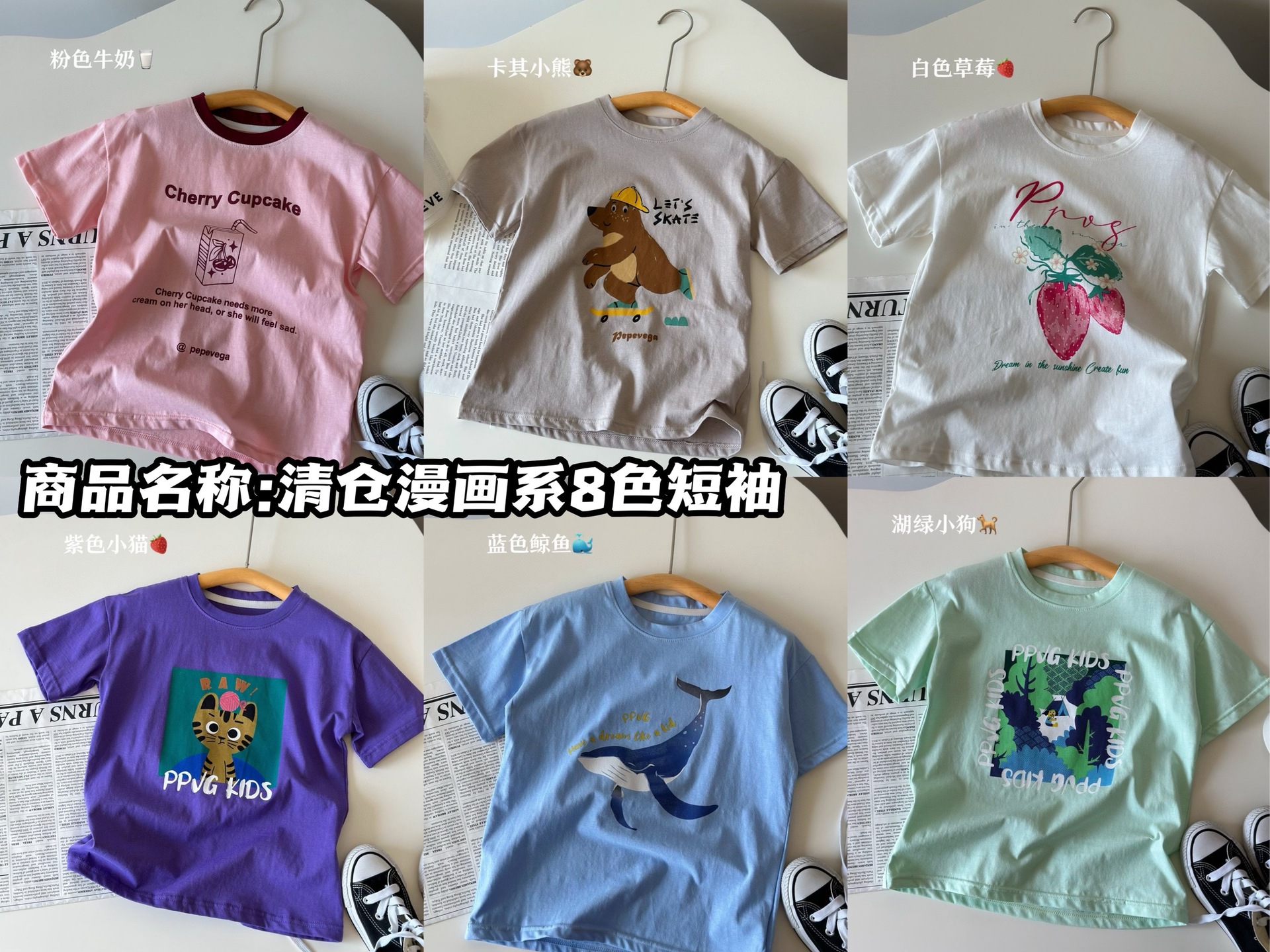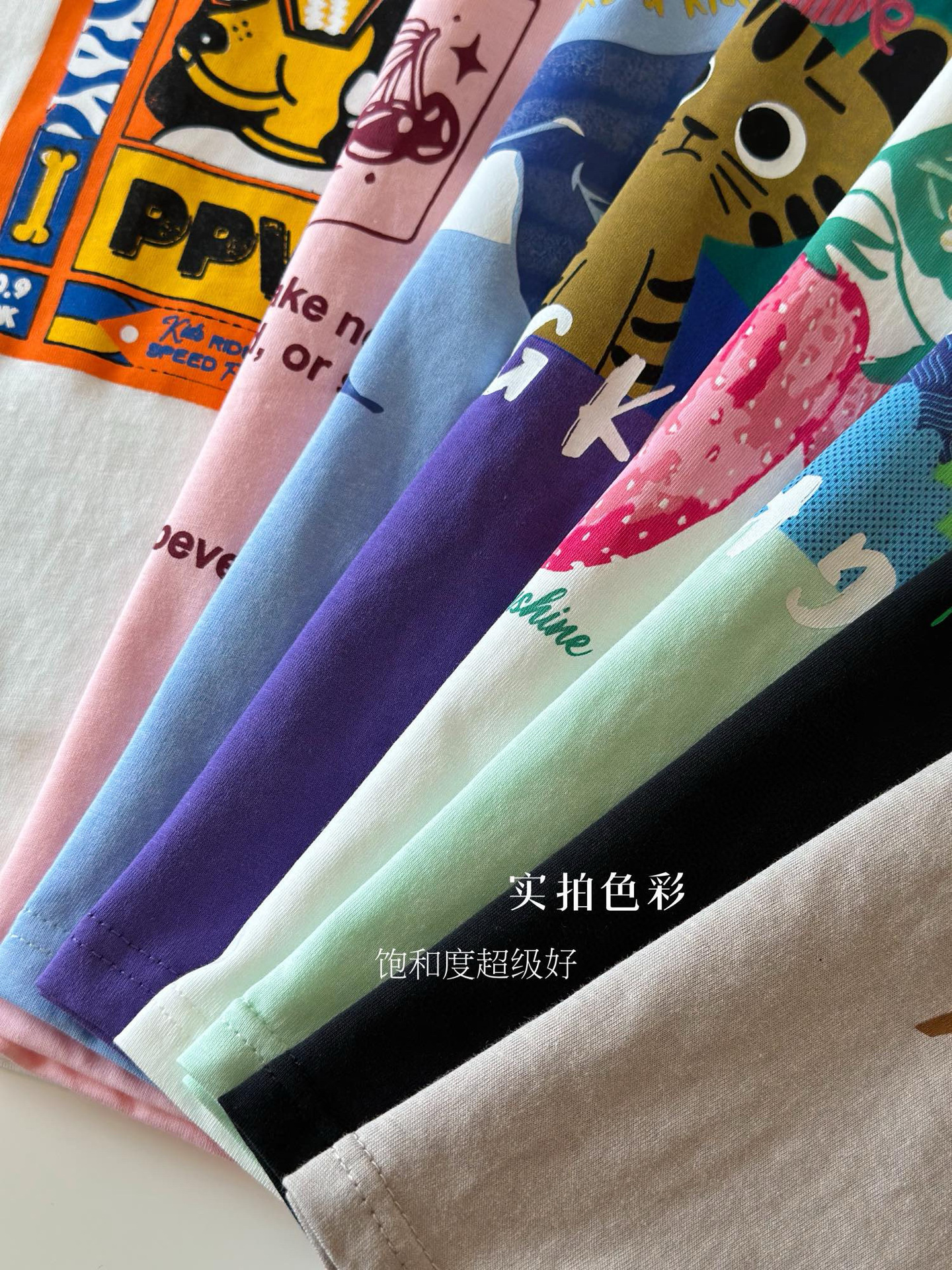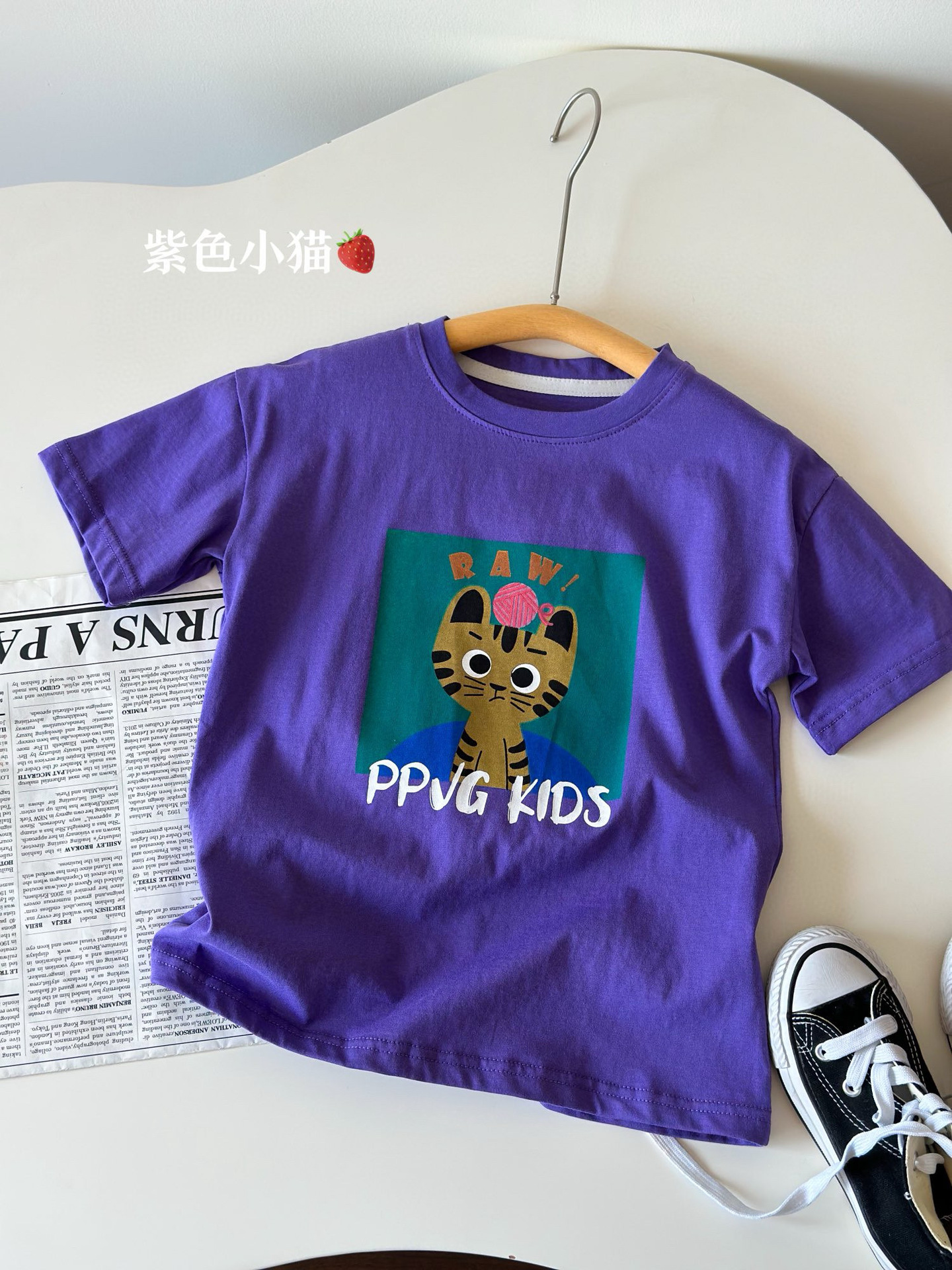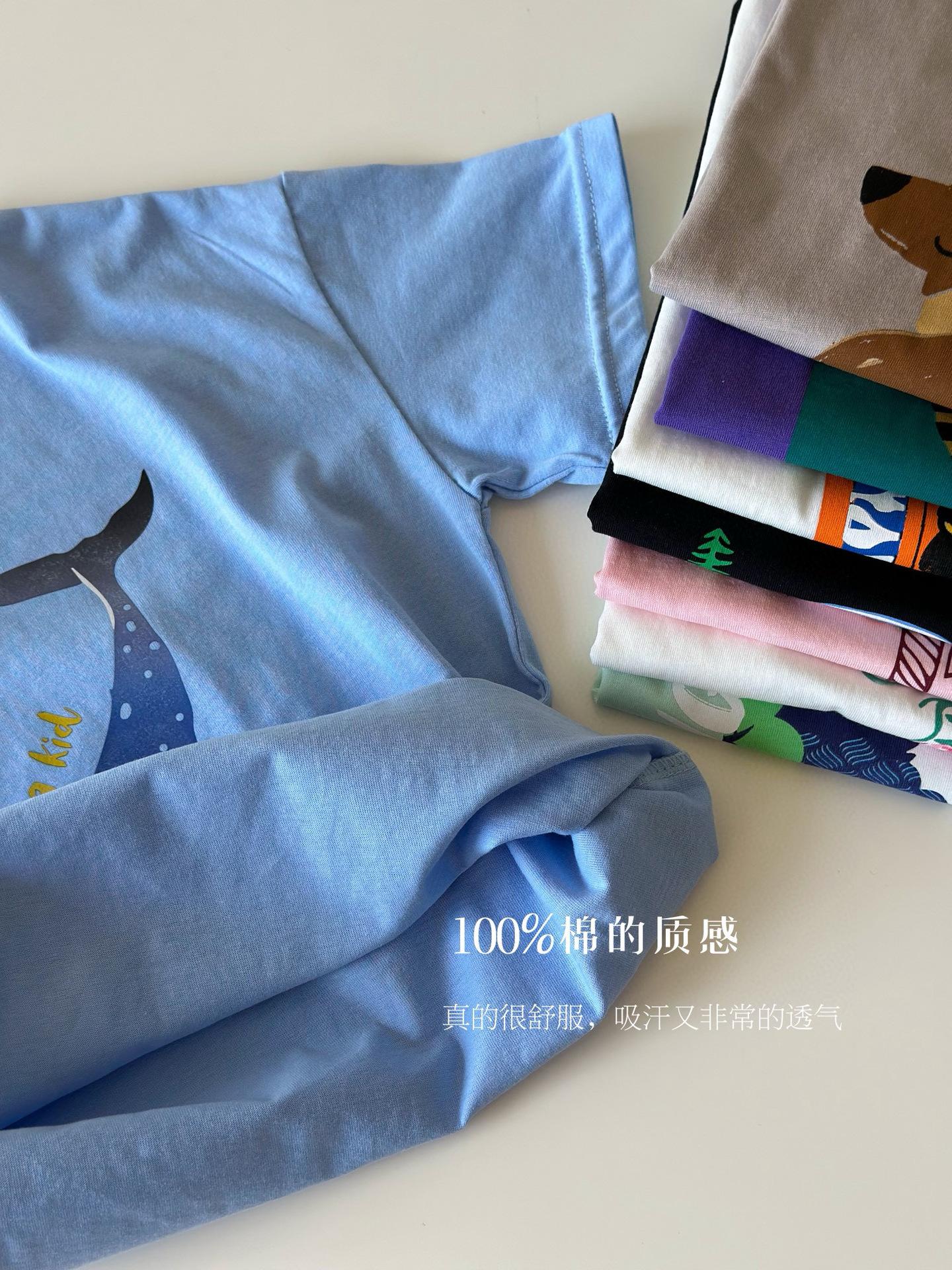 디자이너 손으로 그린 어린이 여름면 티셔츠 둥근 목 인쇄 만화 한국 짧은 소매 재킷 [2 개스토어 가기