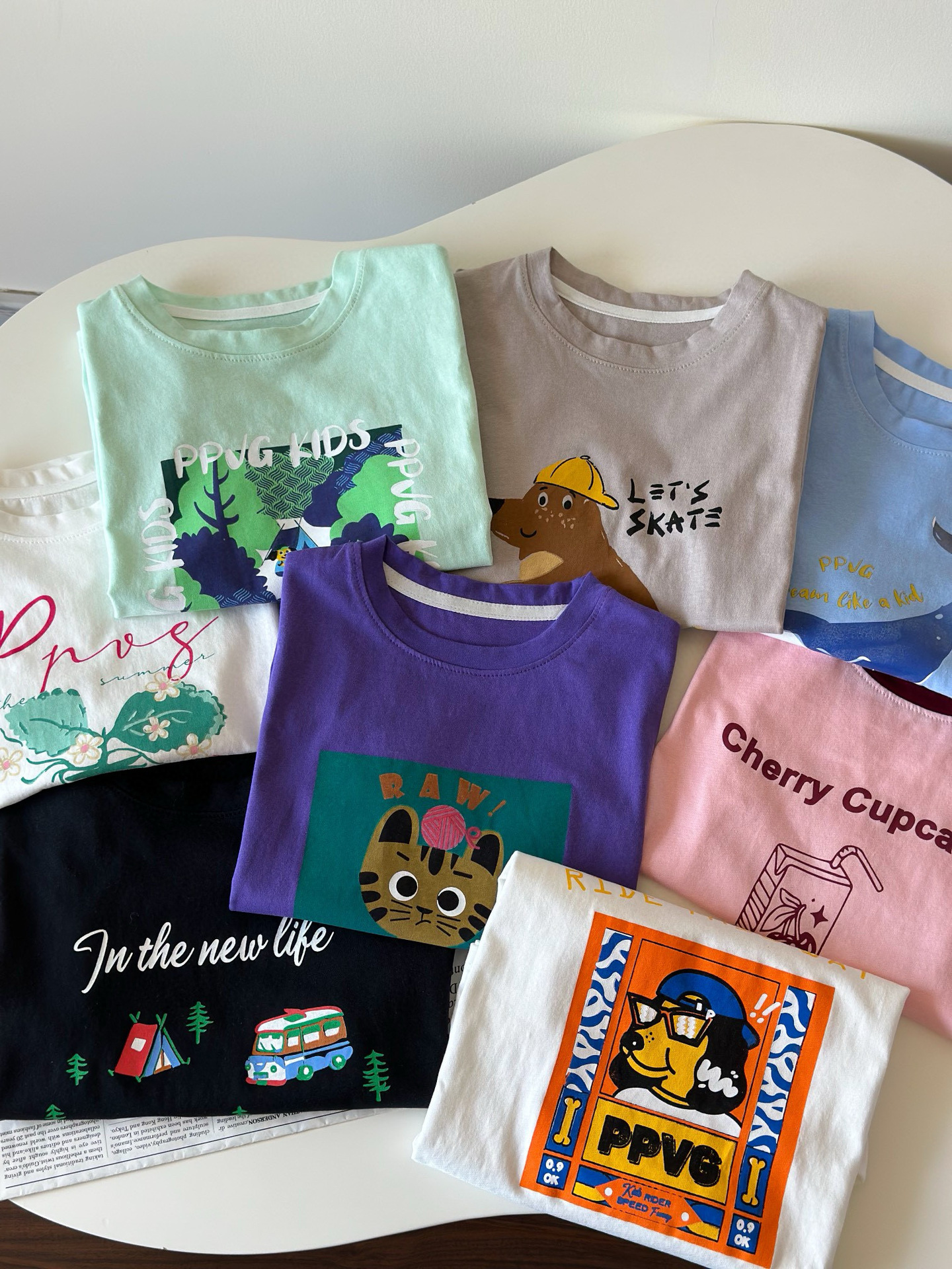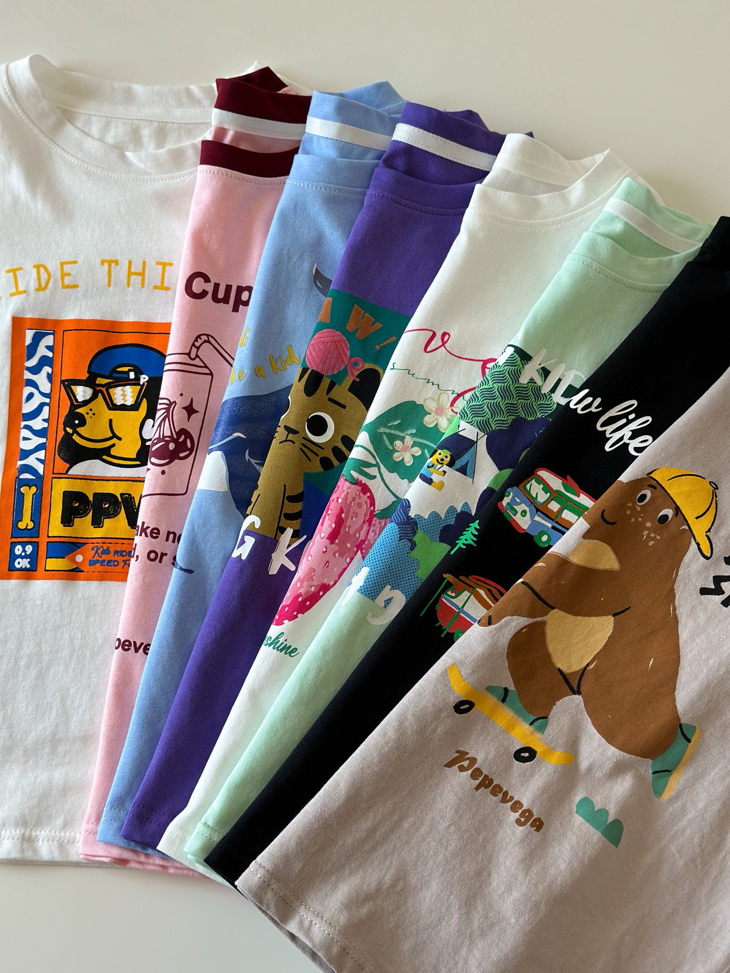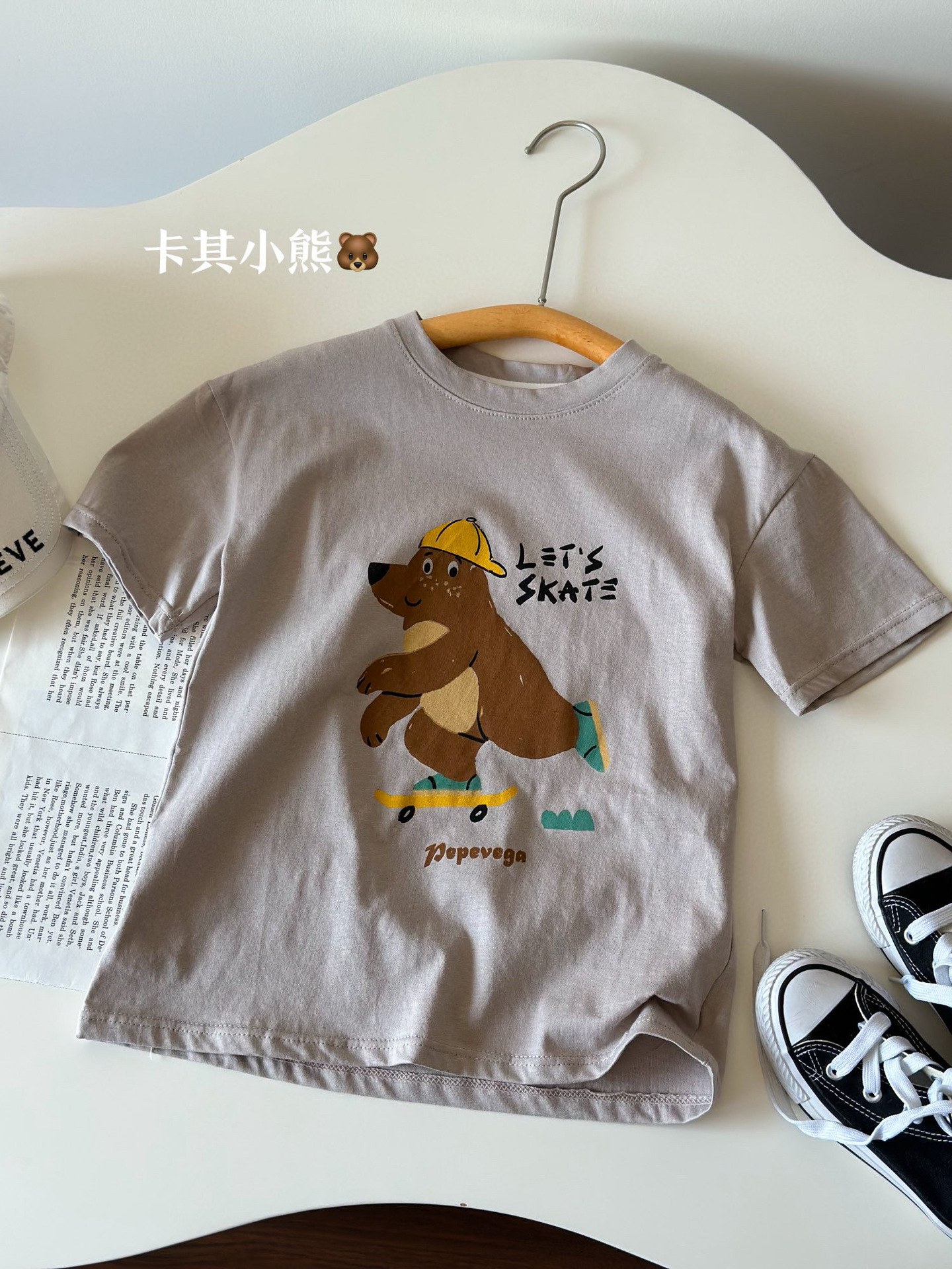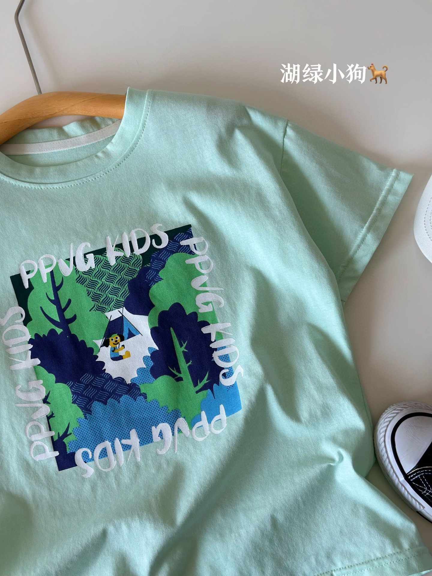 디자이너 손으로 그린 어린이 여름면 티셔츠 둥근 목 인쇄 만화 한국 짧은 소매 재킷 [2 개스토어 가기