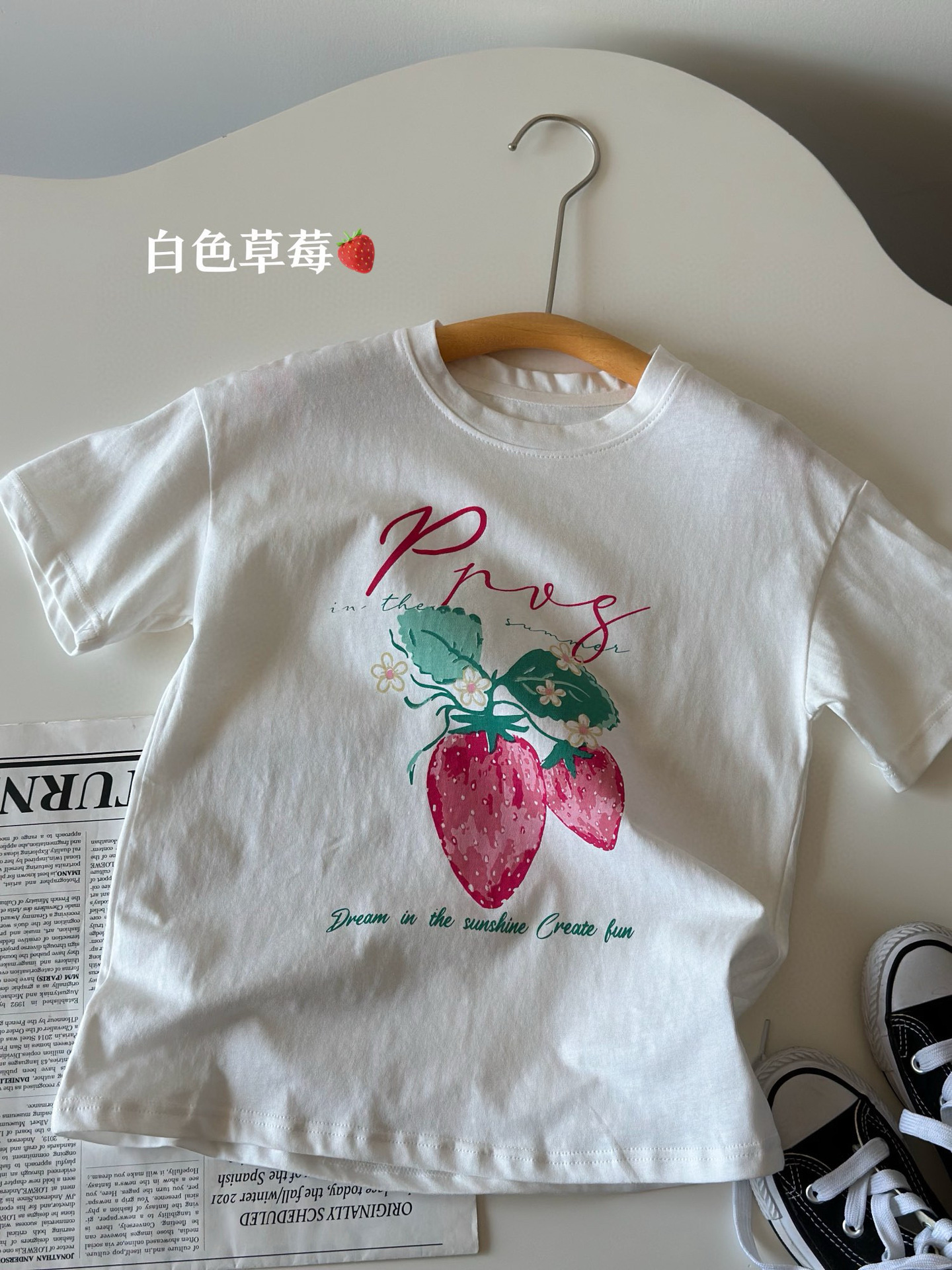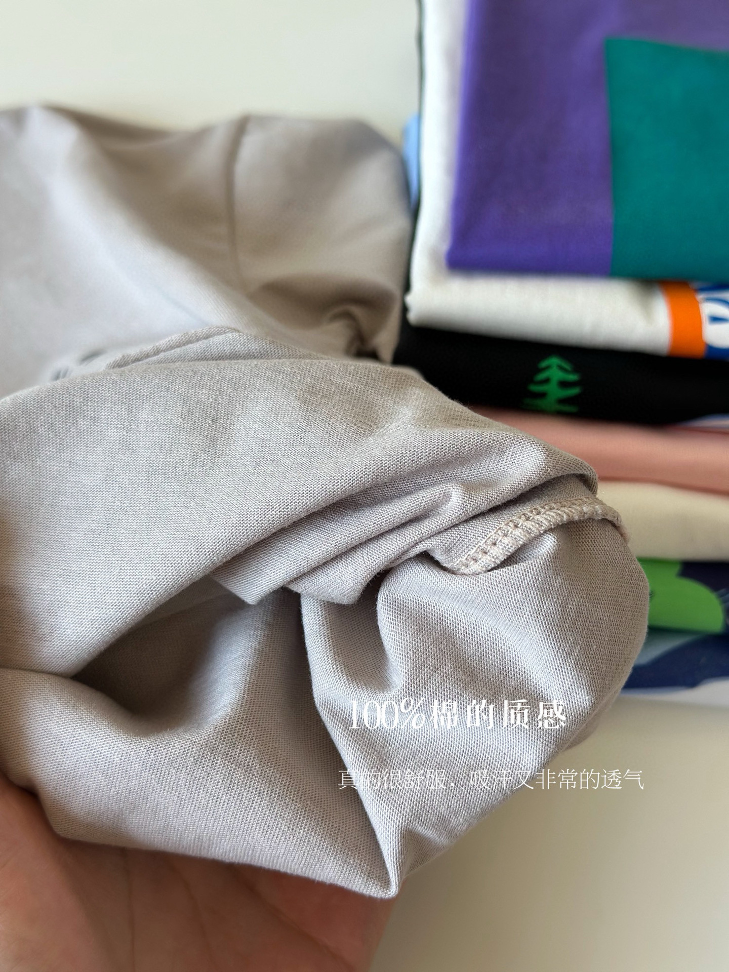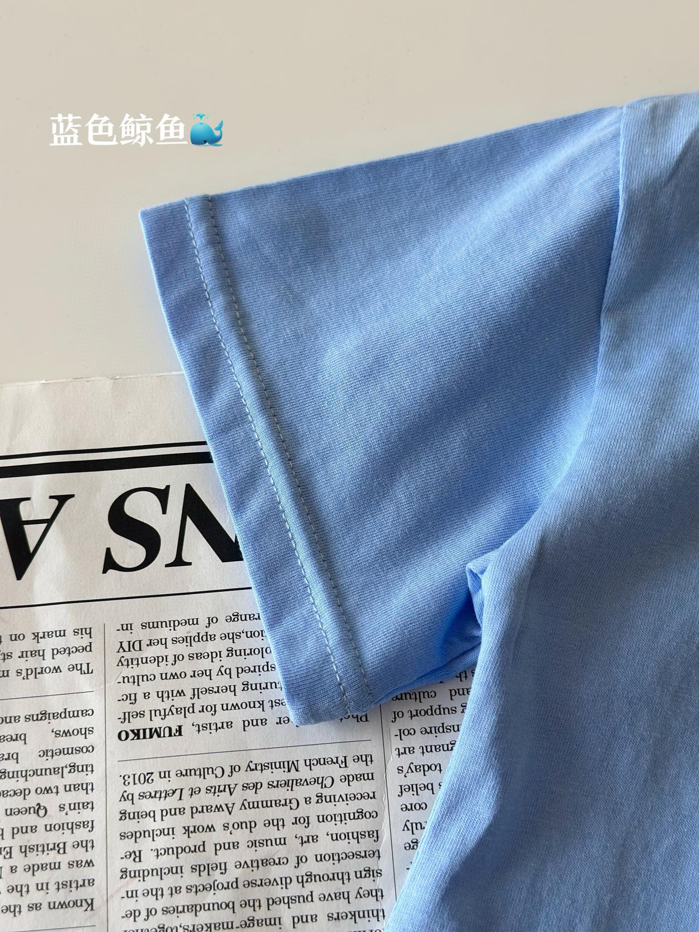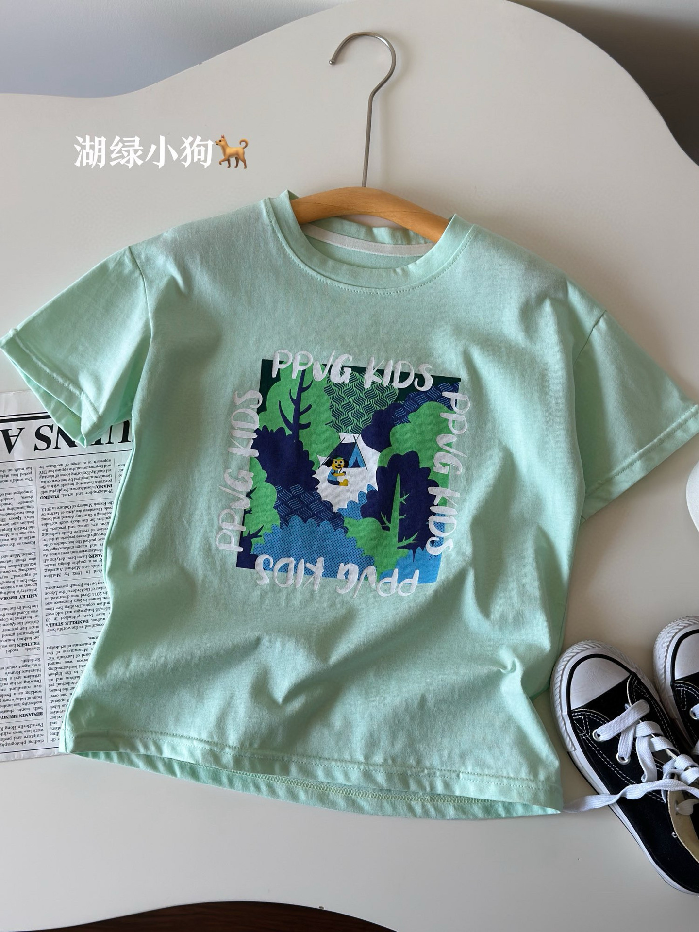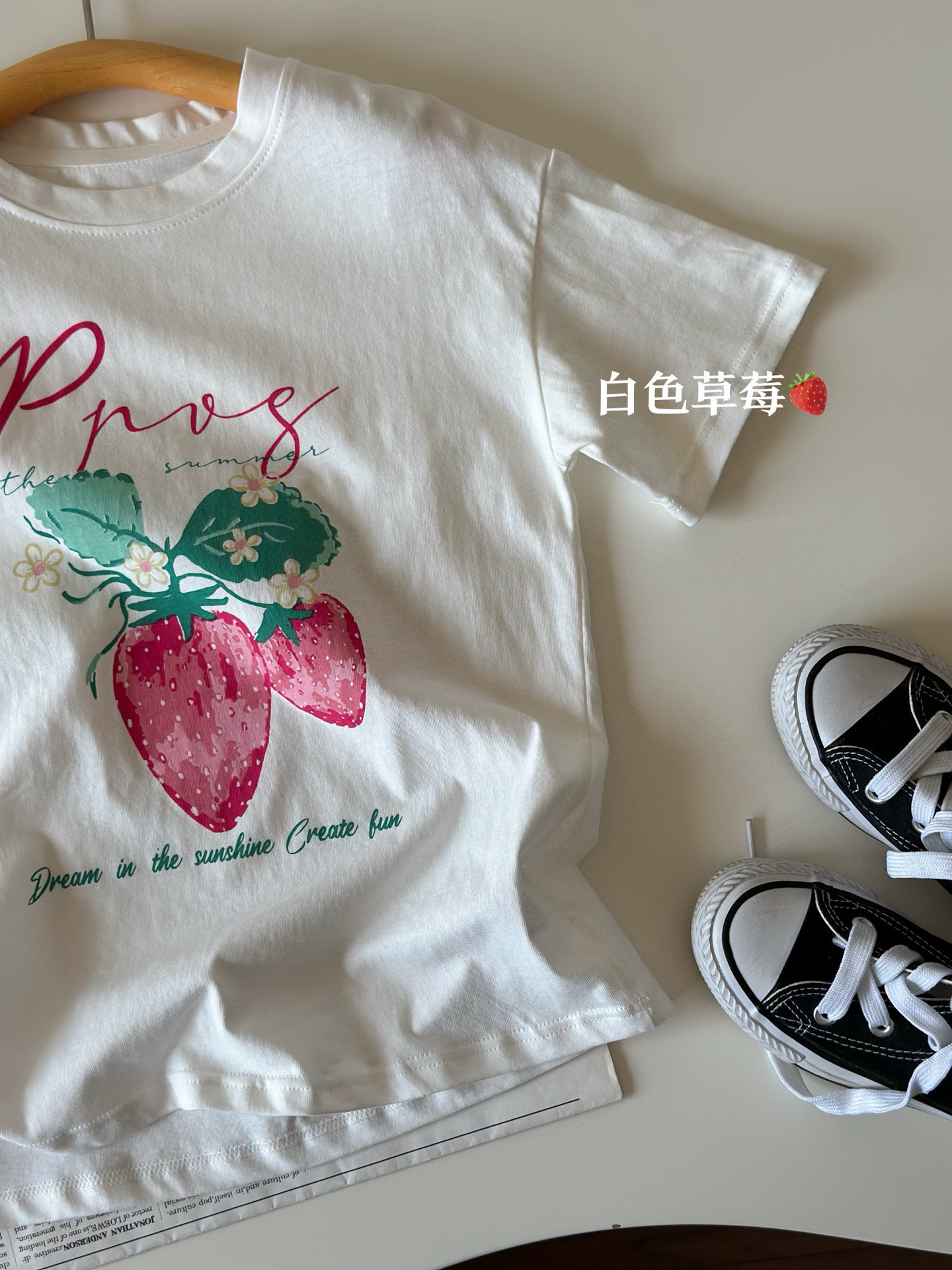 디자이너 손으로 그린 어린이 여름면 티셔츠 둥근 목 인쇄 만화 한국 짧은 소매 재킷 [2 개스토어 가기