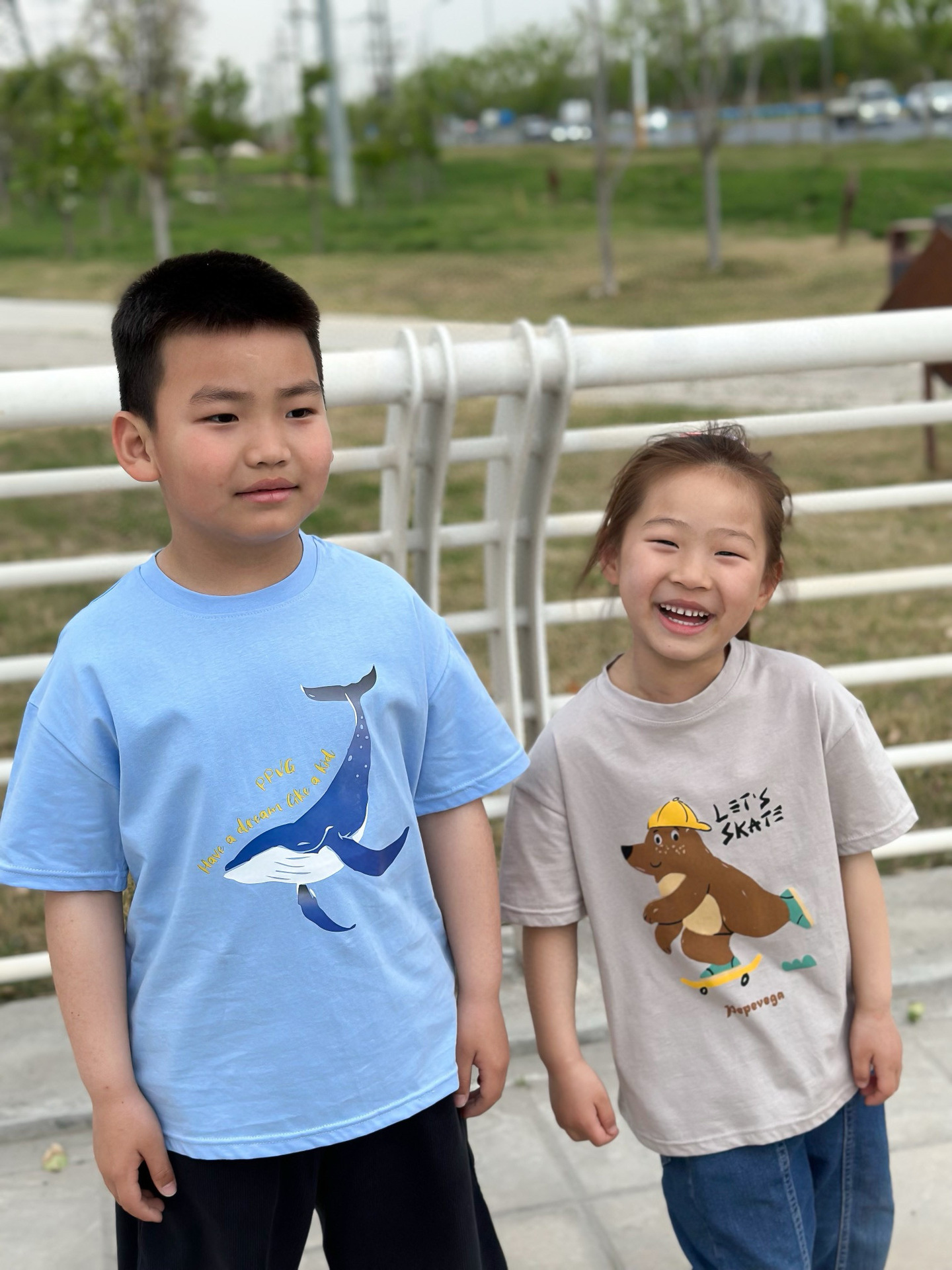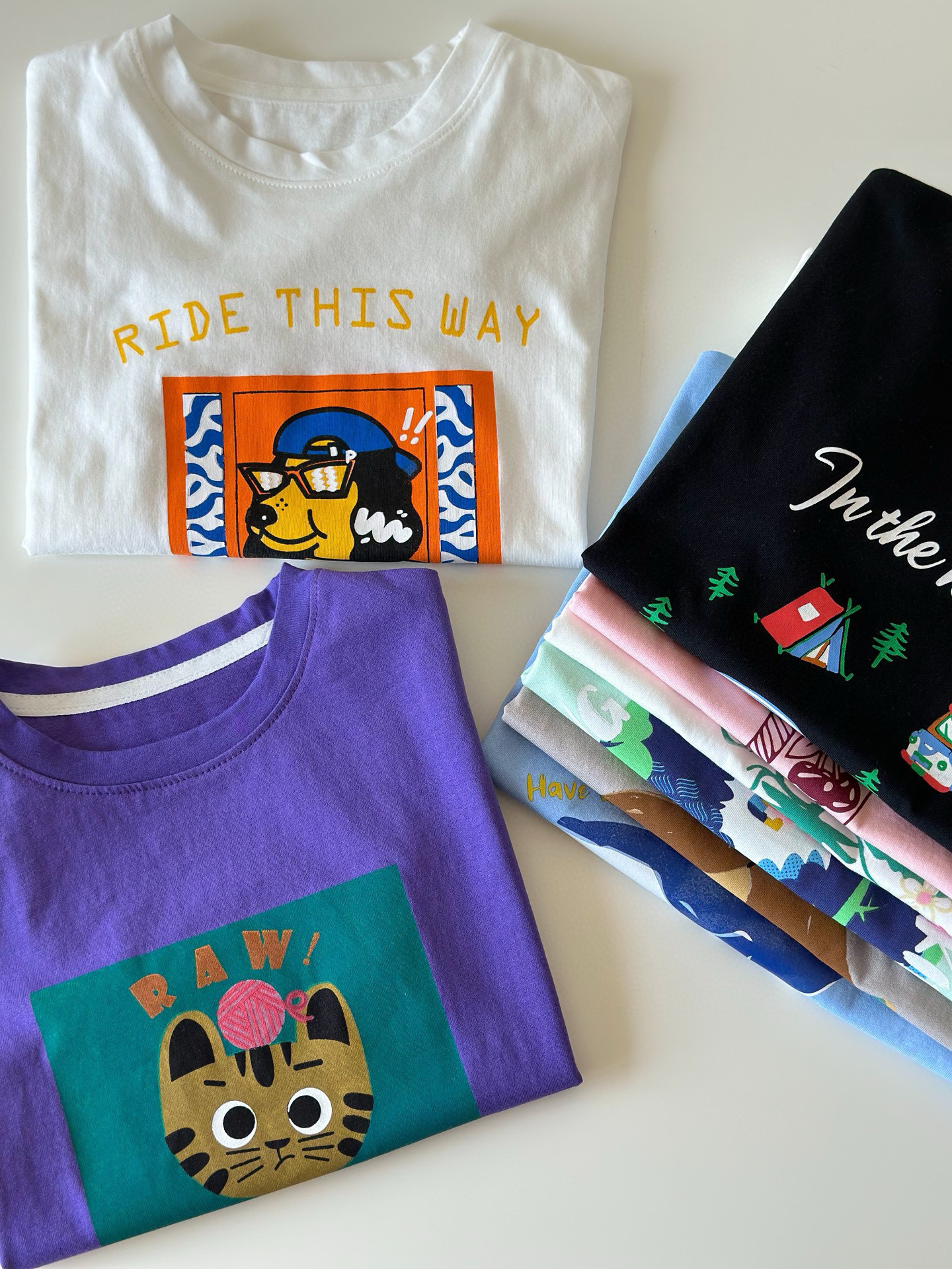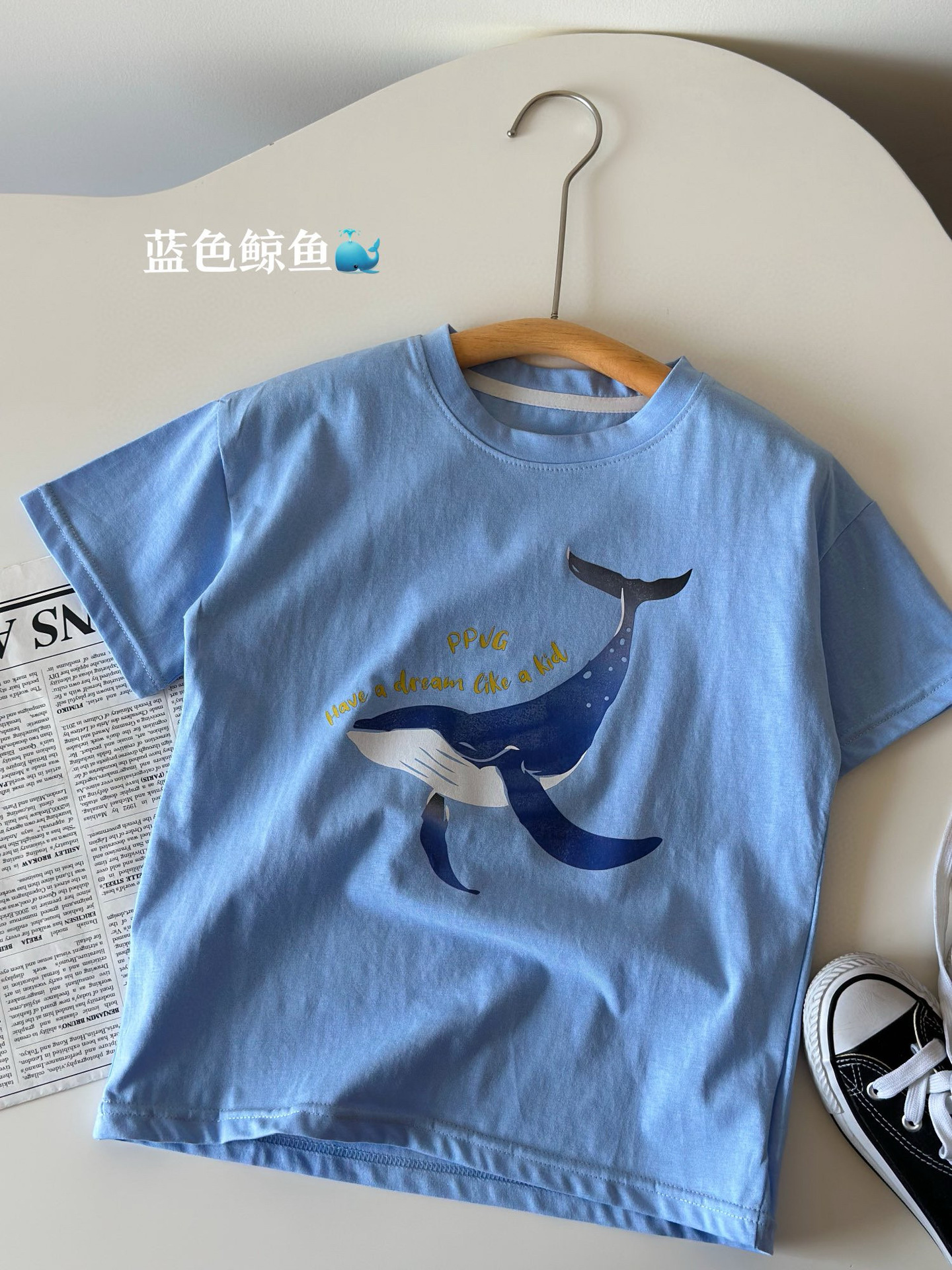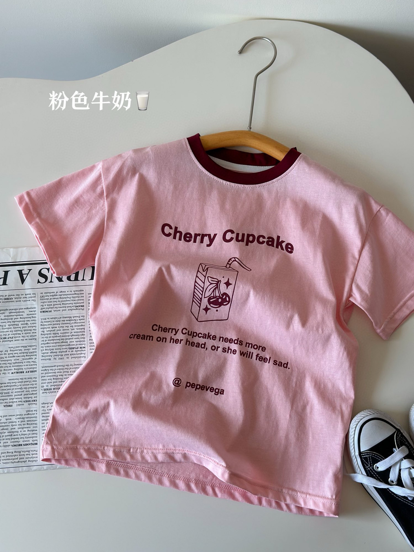 디자이너 손으로 그린 어린이 여름면 티셔츠 둥근 목 인쇄 만화 한국 짧은 소매 재킷 [2 개스토어 가기
