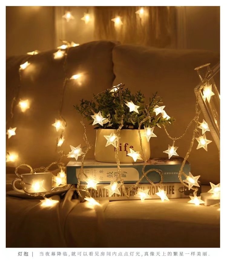 태양열 LED 빛 문자열 야외 캠핑 텐트 크리스마스 분위기 장식 스타 라이트 스트립 야간 조명 새해 빛