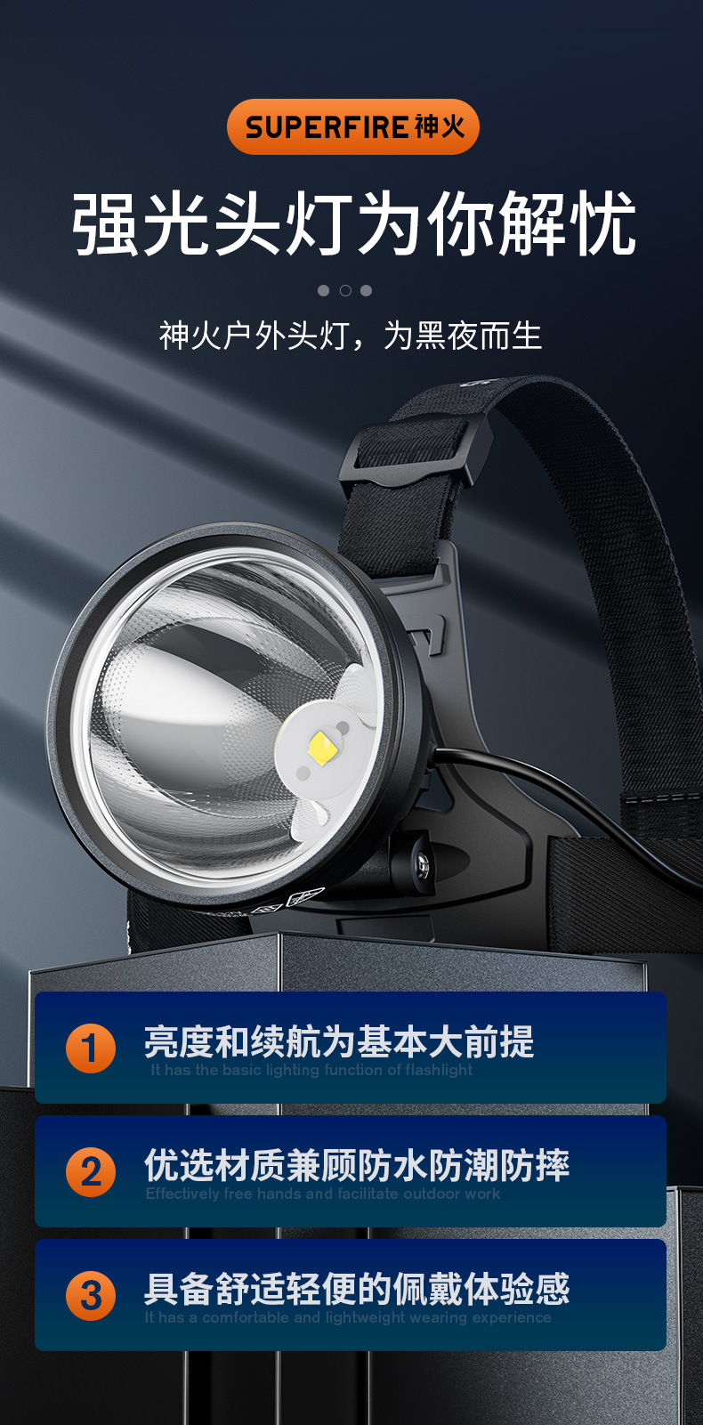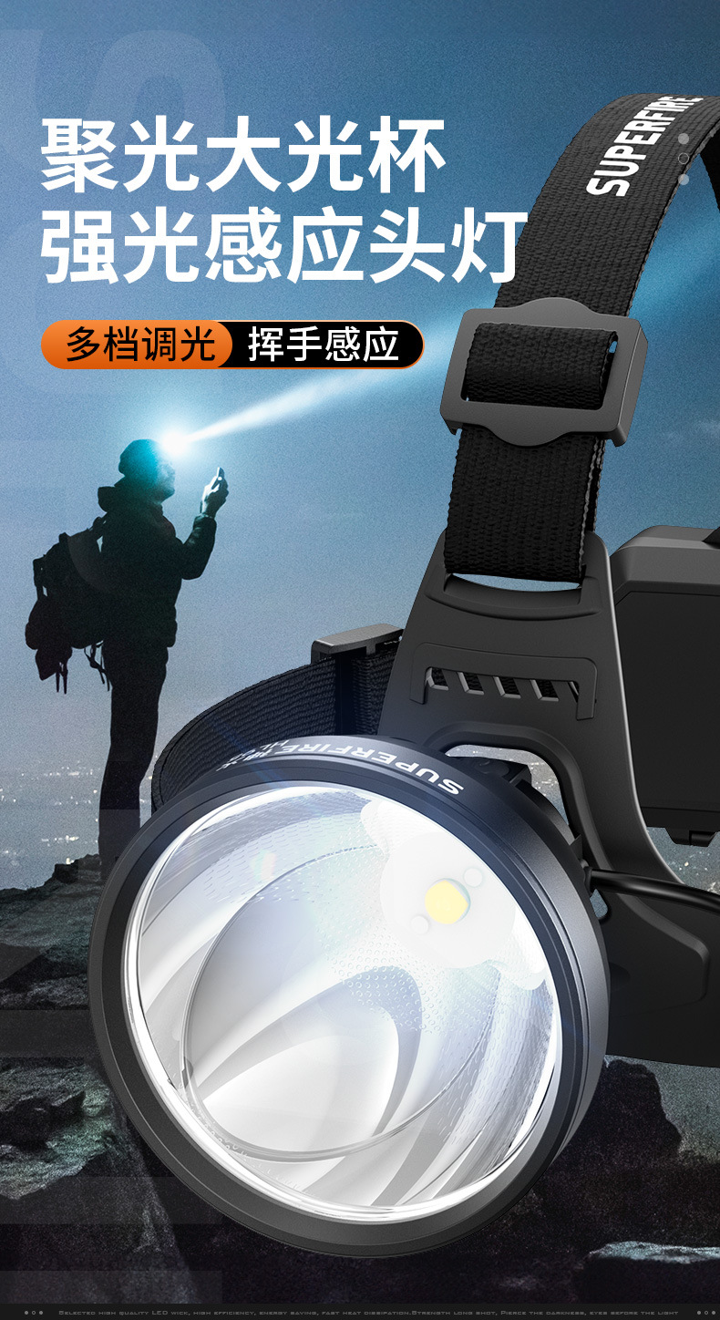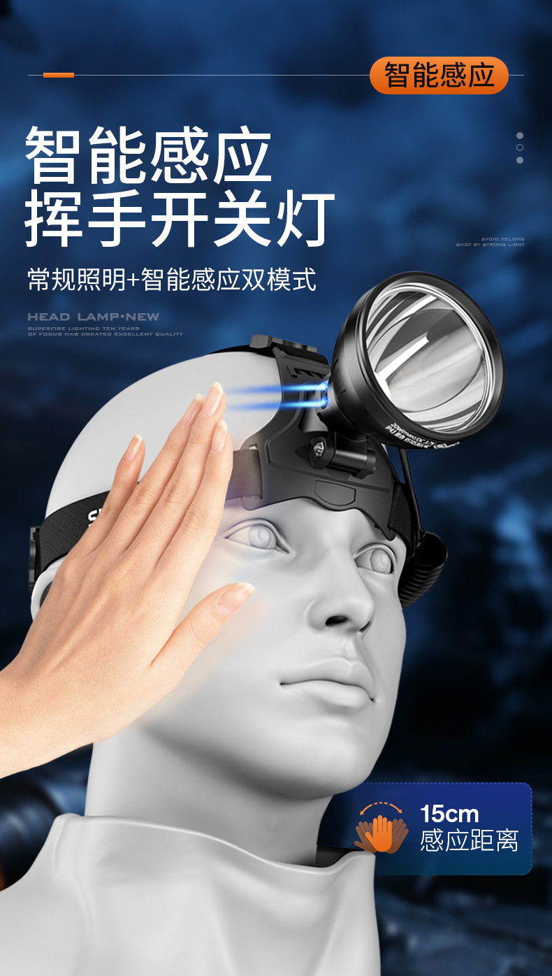 Shenhuo 야외 휴대용 장거리 헤드 라이트 지능형 유도 강한 빛 LED 헤드 장착형 안전 헬멧 충전식 헤드 라이트 도매