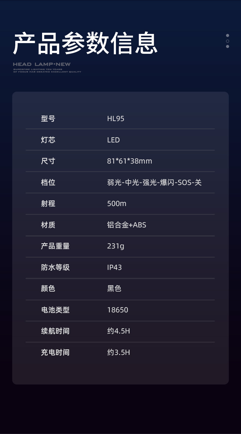 • HL95 (20W + 배터리 수명 약 4.5시간)