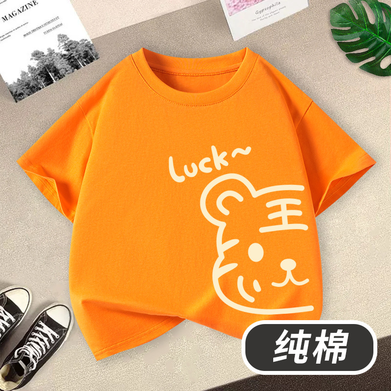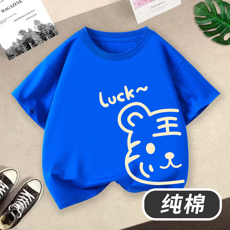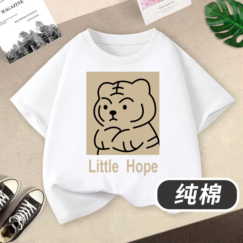 아동 의류 소년 반팔 티셔츠 2025 새로운 호랑이 머리 인쇄 소년 라운드 넥 여름 통기성 어린이 면화상의