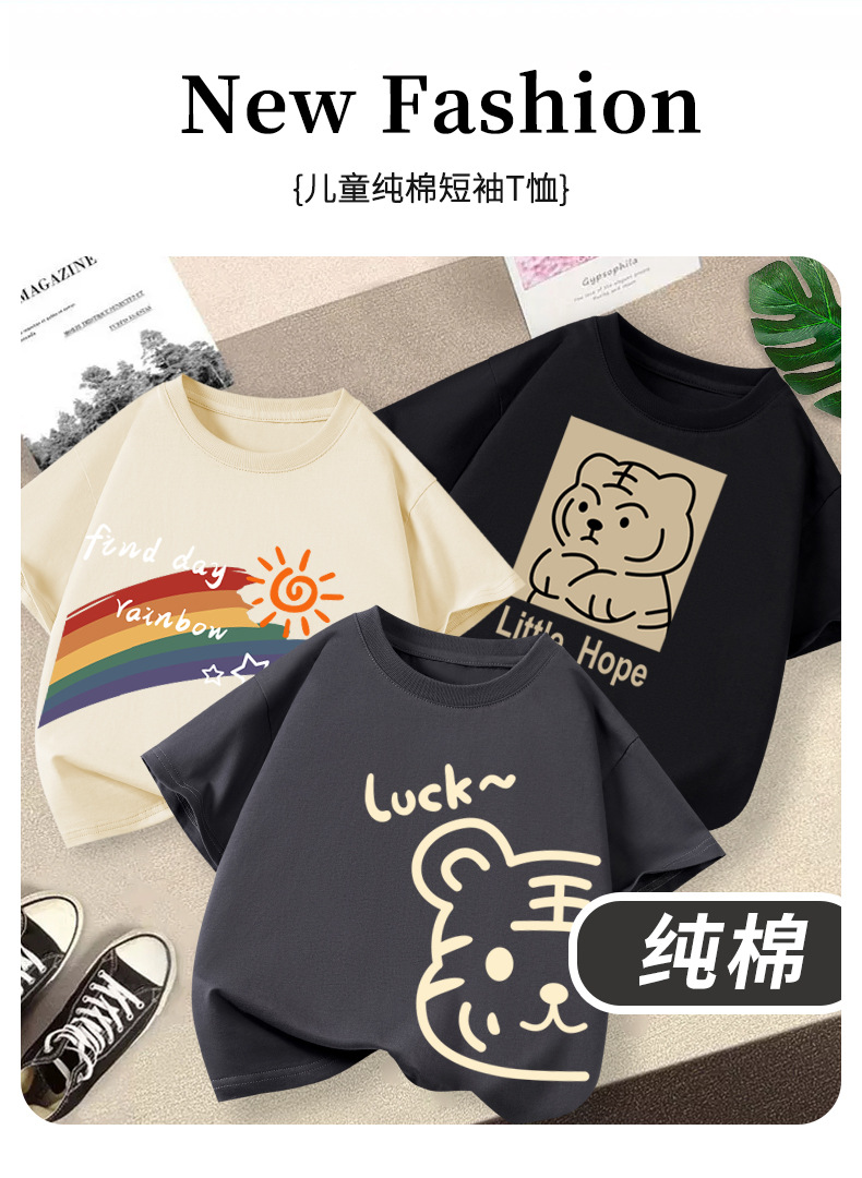 아동 의류 소년 반팔 티셔츠 2025 새로운 호랑이 머리 인쇄 소년 라운드 넥 여름 통기성 어린이 면화상의스토어 가기