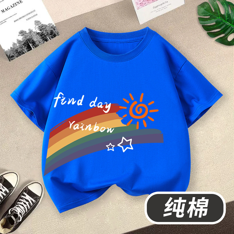 • 반소매 왼쪽 레인보우 선 레인 블루
