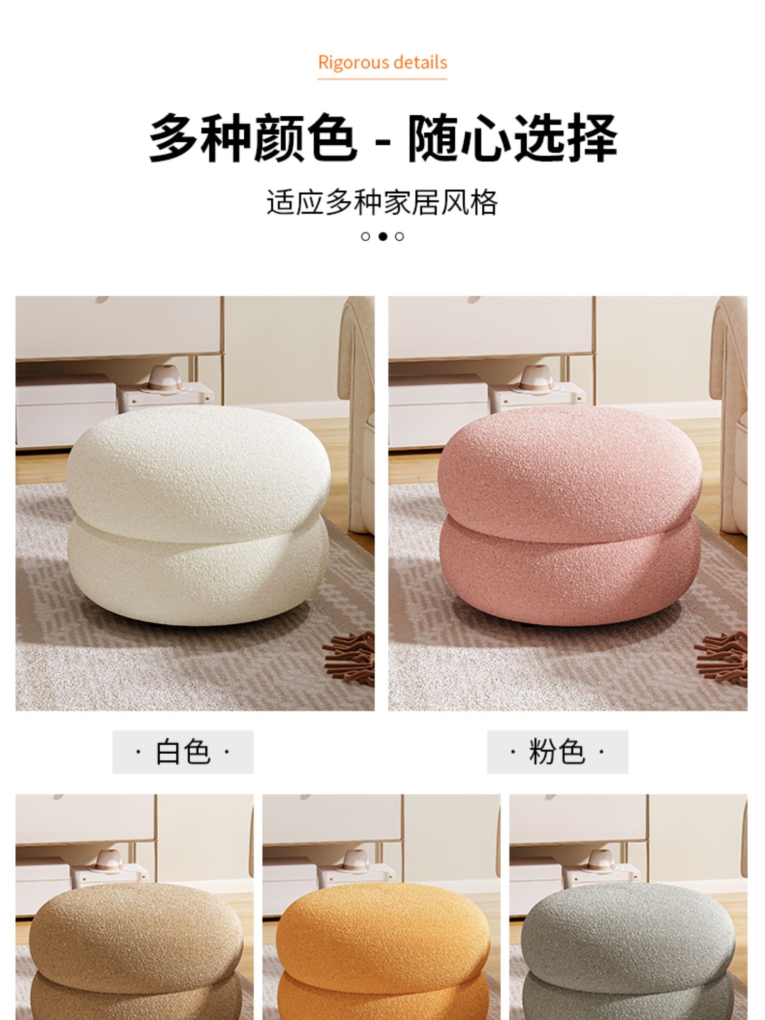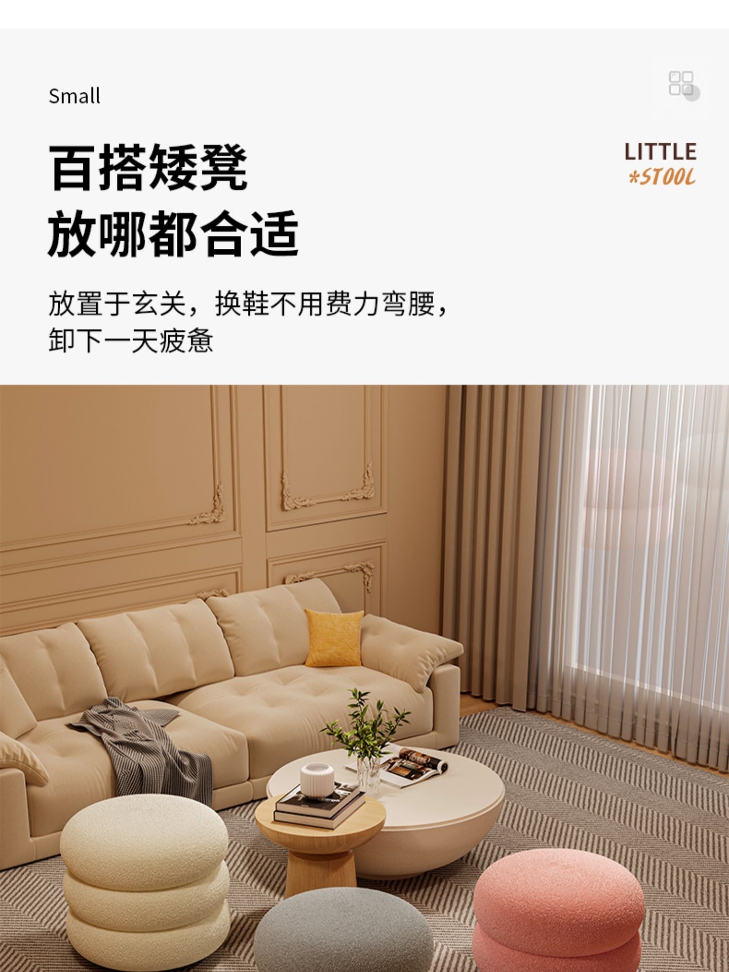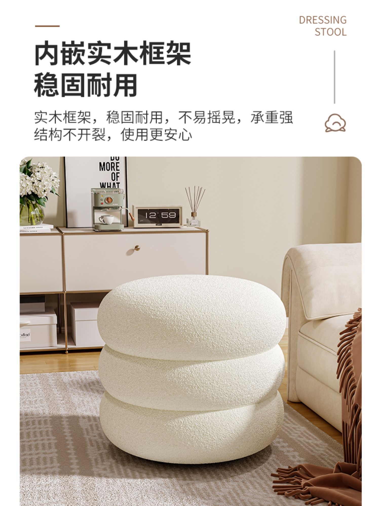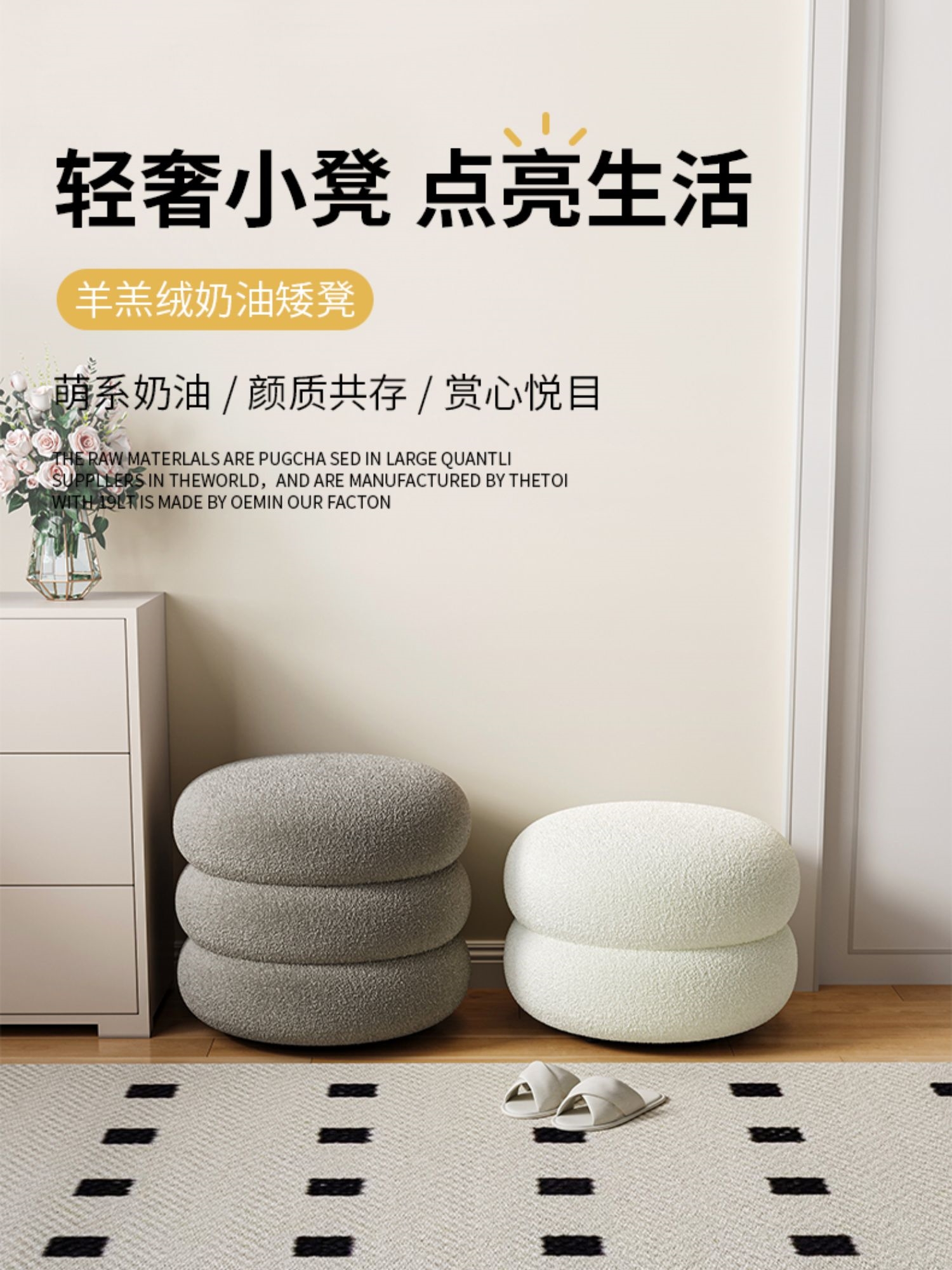 크림 스타일 거실 작은 의자 가정용 둥근 의자 소파 의자 낮은 의자 신발 의자 작은 벤치 앉아 부두 커피 테이블스토어 가기