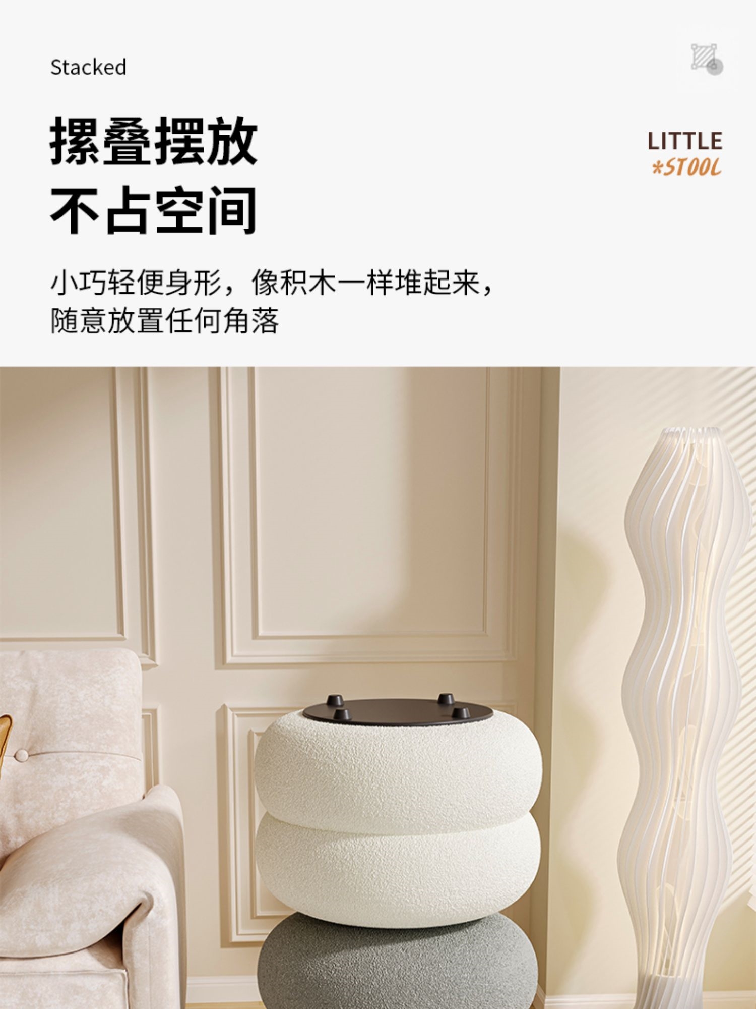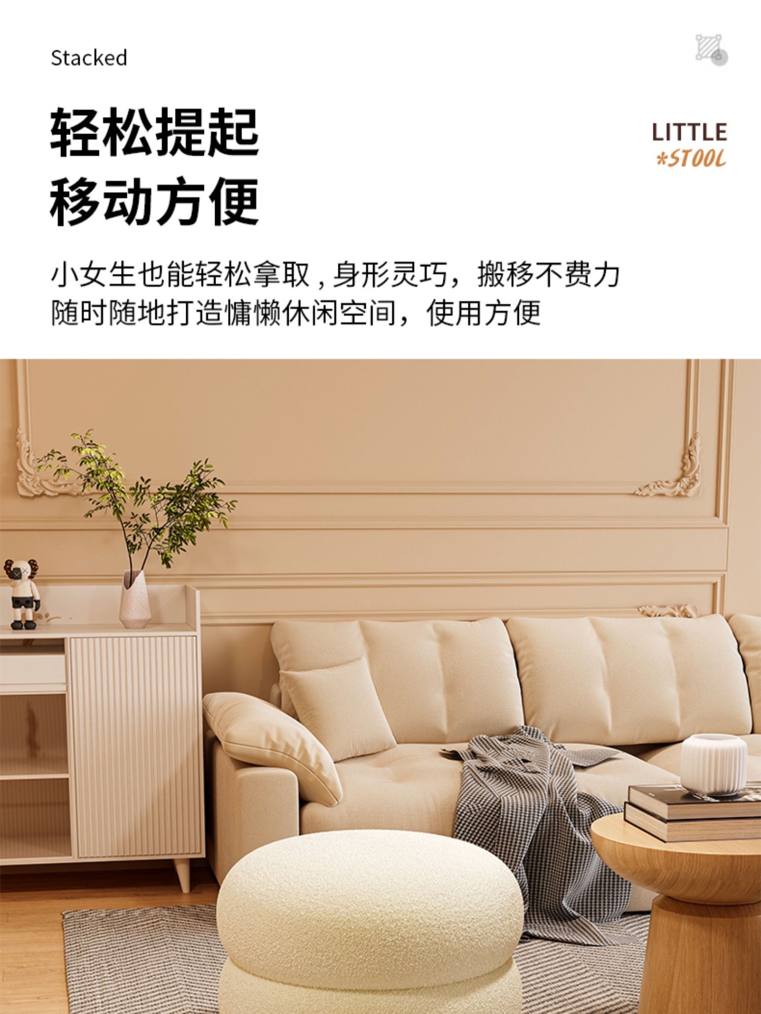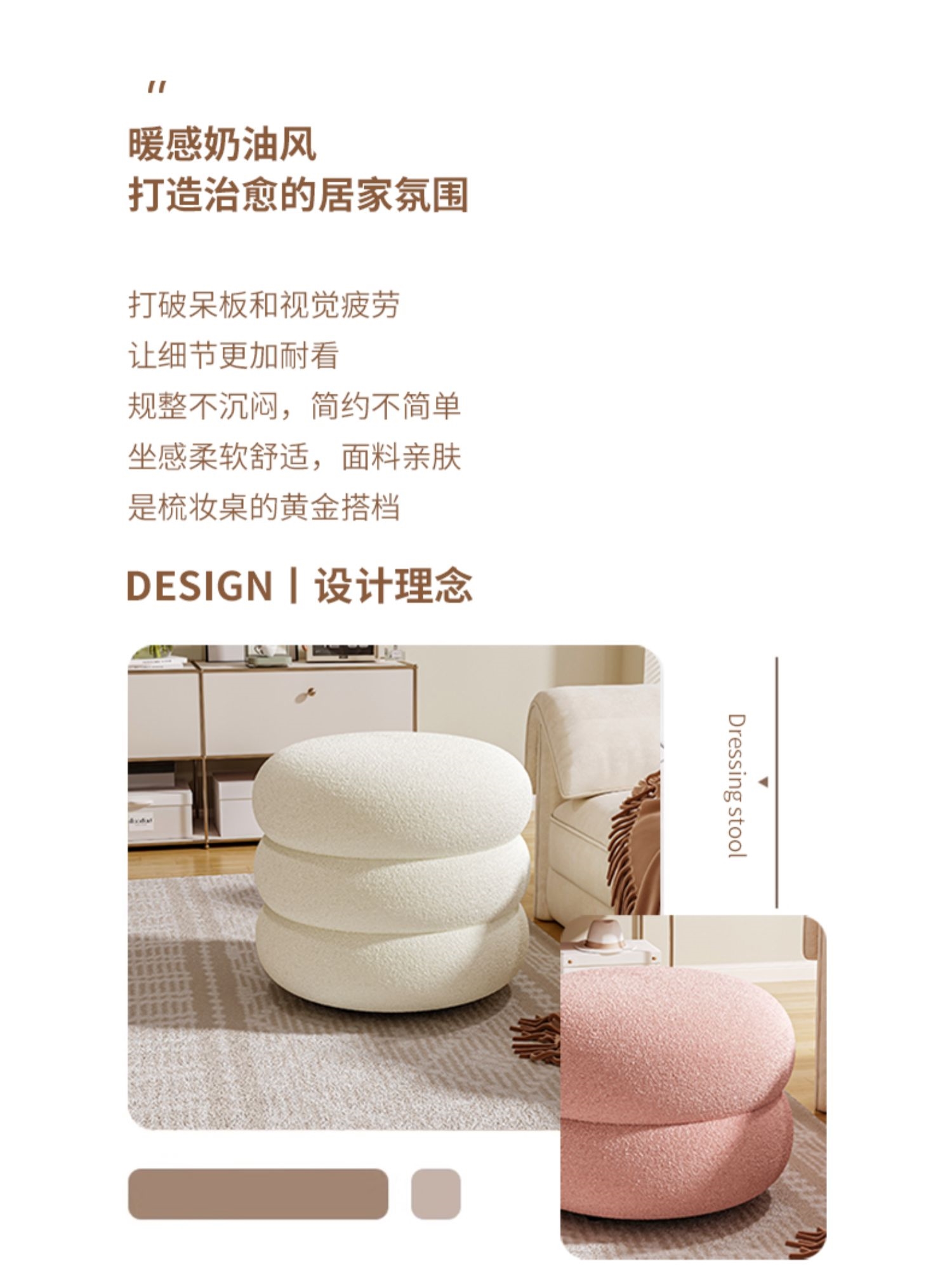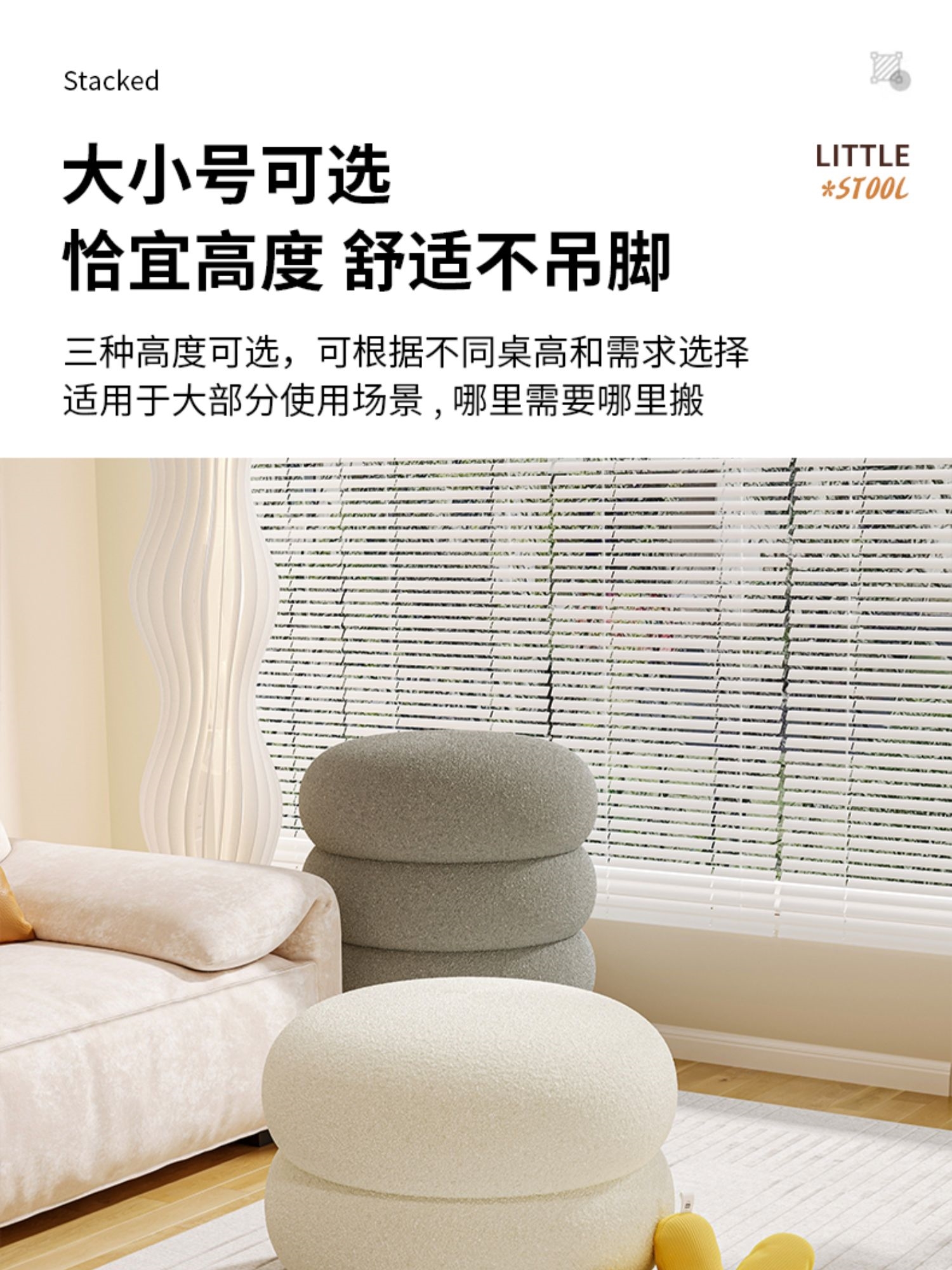 크림 스타일 거실 작은 의자 가정용 둥근 의자 소파 의자 낮은 의자 신발 의자 작은 벤치 앉아 부두 커피 테이블스토어 가기