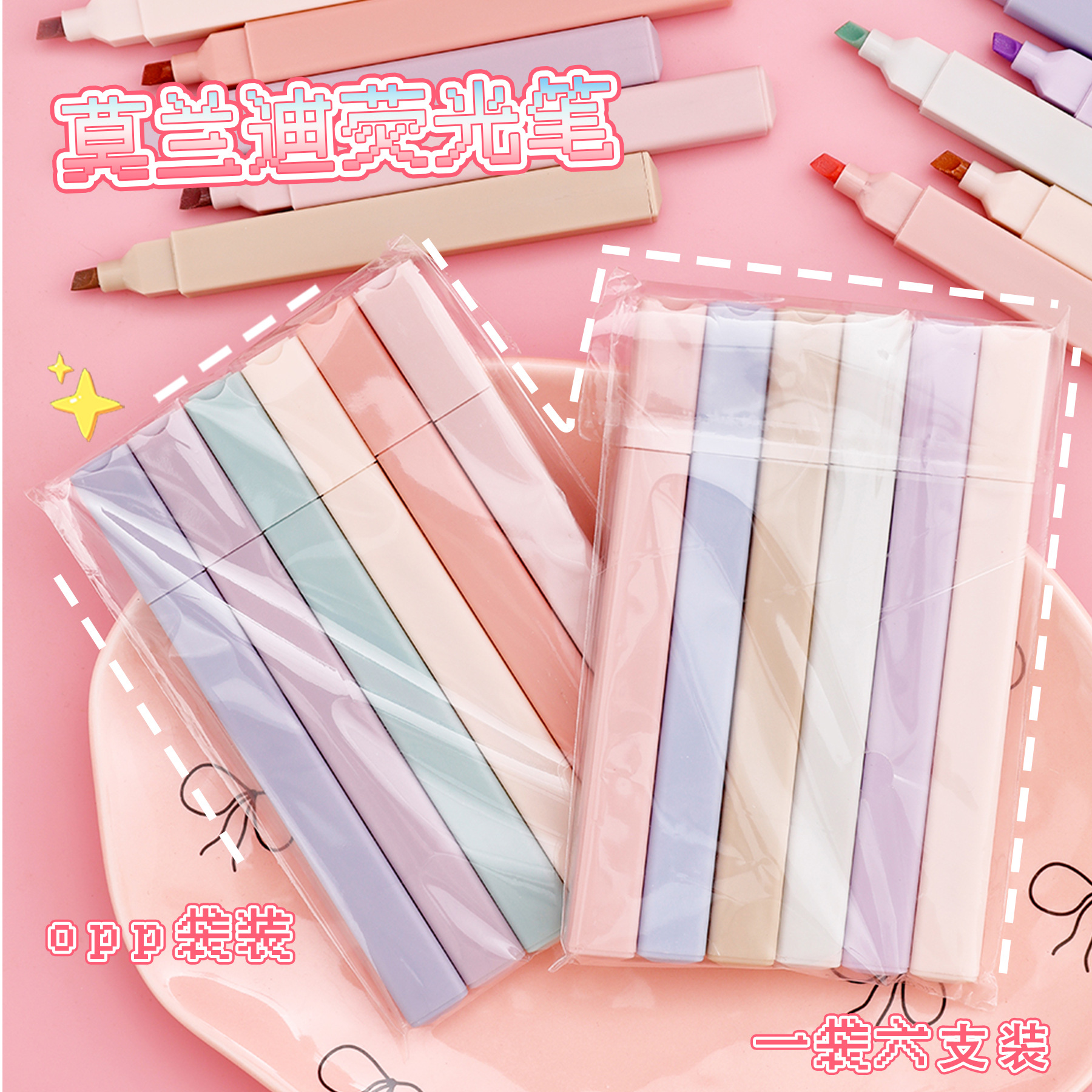 Morandi 형광펜 학생 마킹 키 DIY 핸드북 펜 고가치 눈 보호 밝은 색상 형광펜 세트스토어 가기