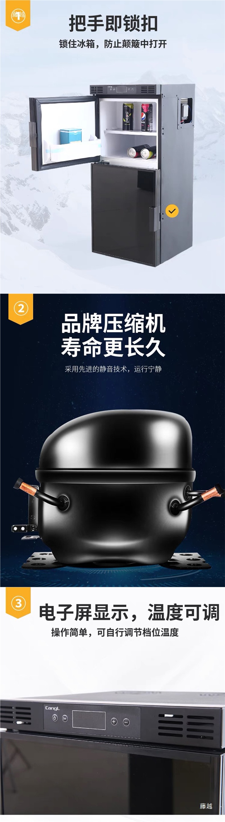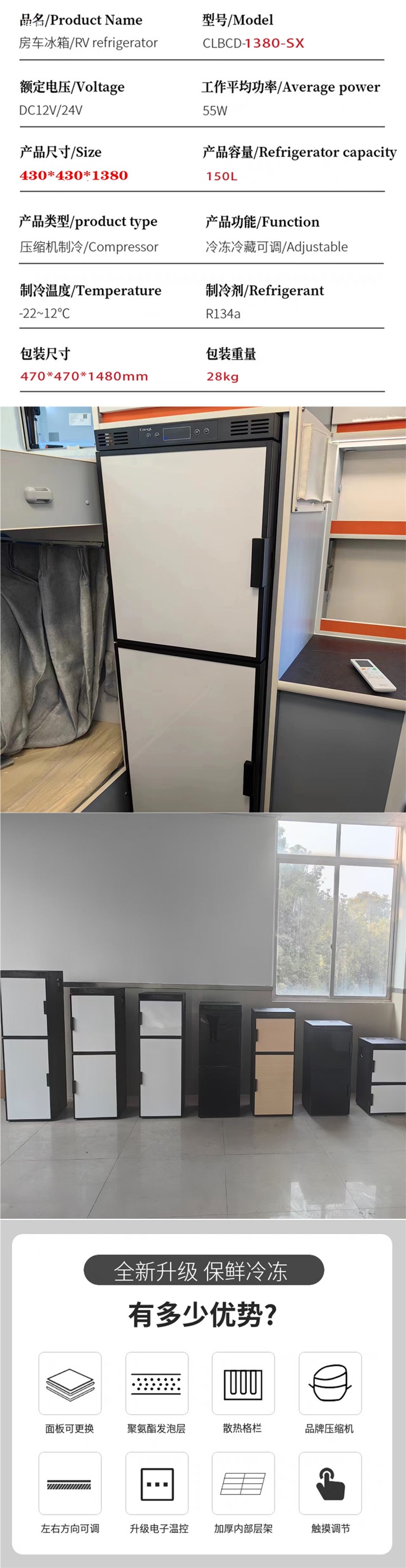 RV 냉장고 12/24V48V DC 완전 냉동 및 냉장 모드 조절 가능한 대형 이중 도어 아이스스토어 가기