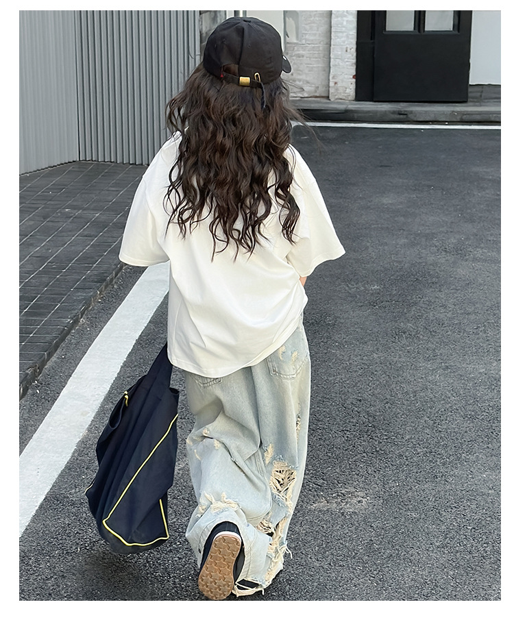 • 흰색 티셔츠 + 찢어진 청바지 [투피스 세트]