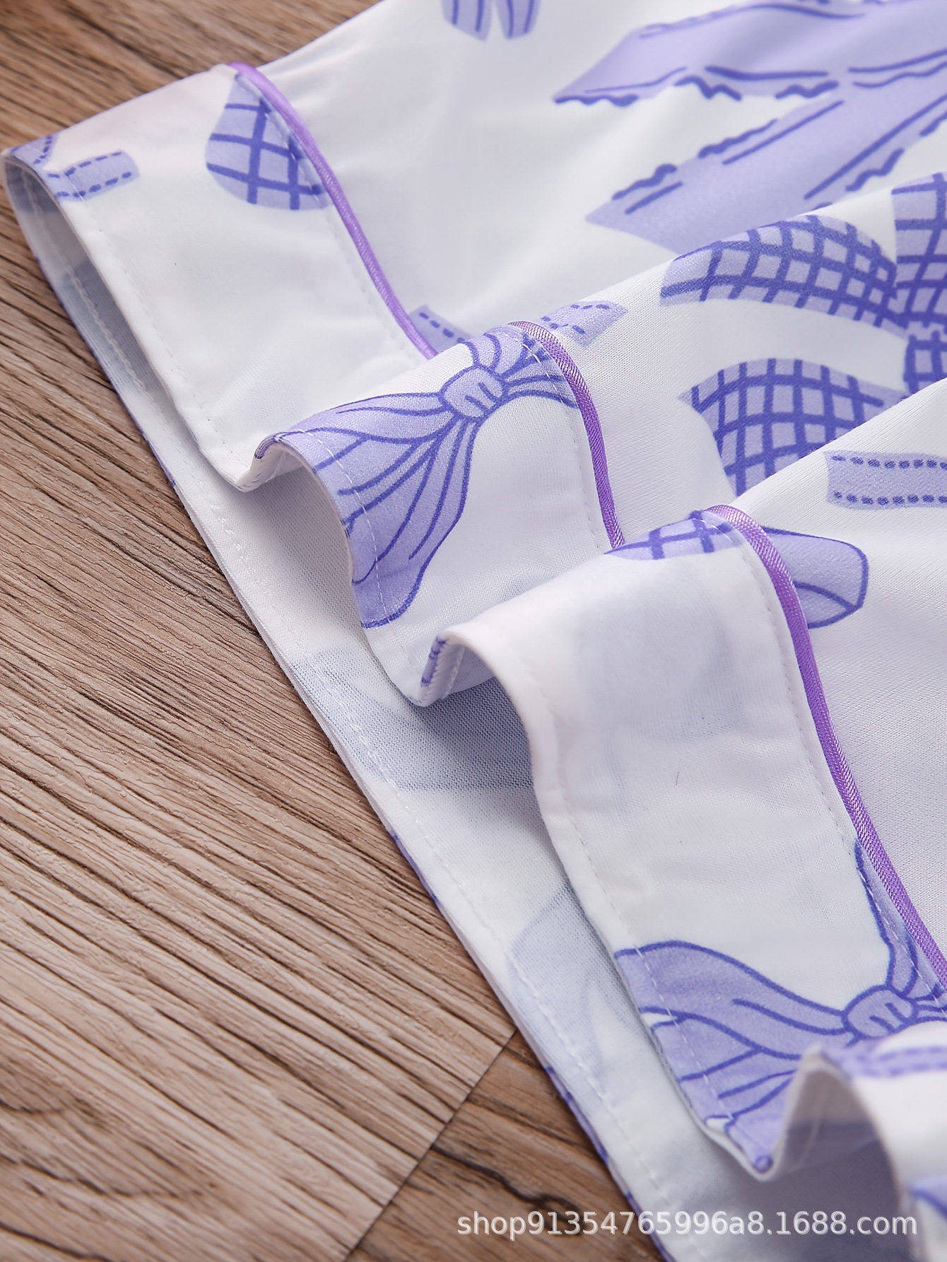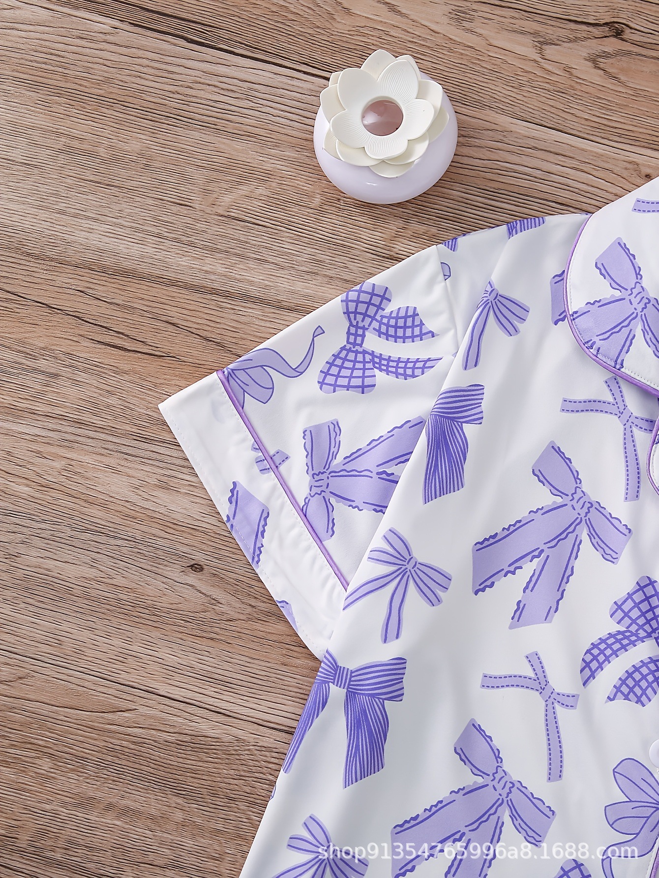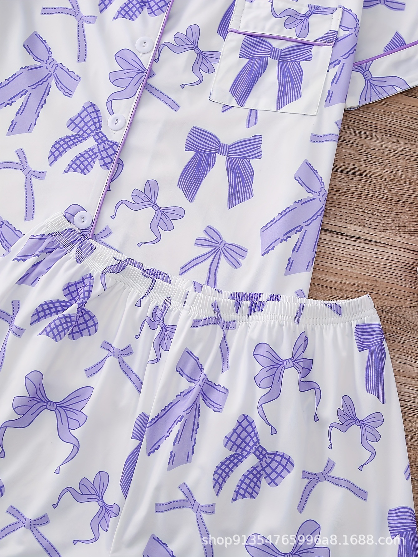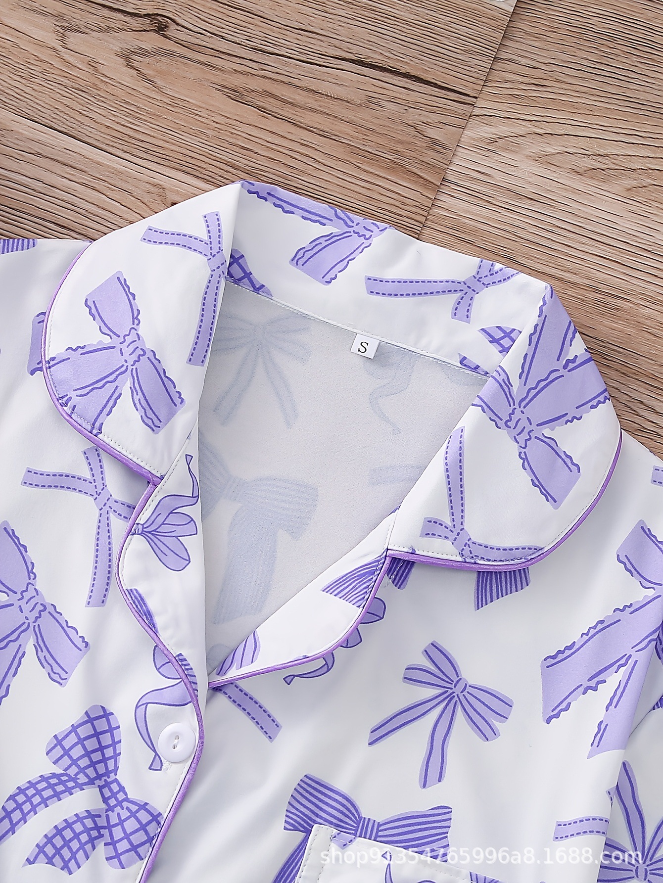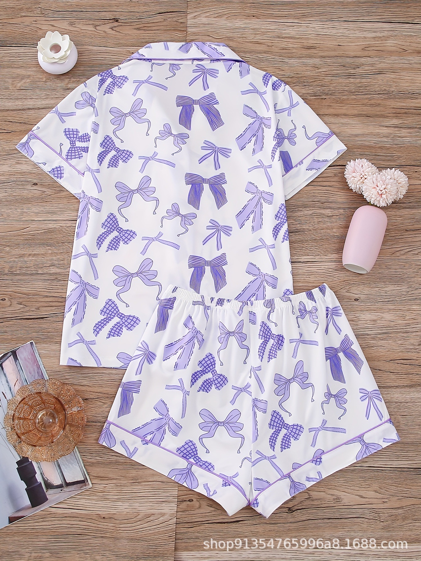 국경 간 대외 무역 인기 유럽과 미국 여성 잠옷 나비 프린트 라펠 반팔 반바지 잠옷