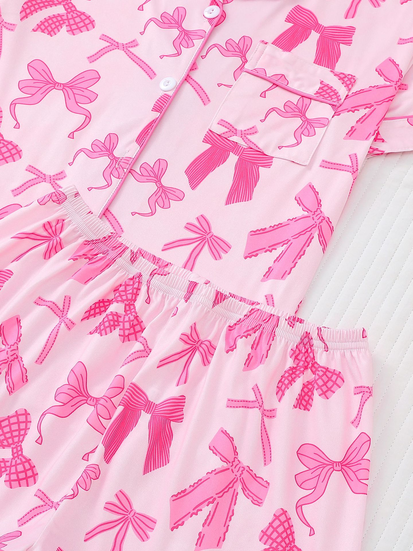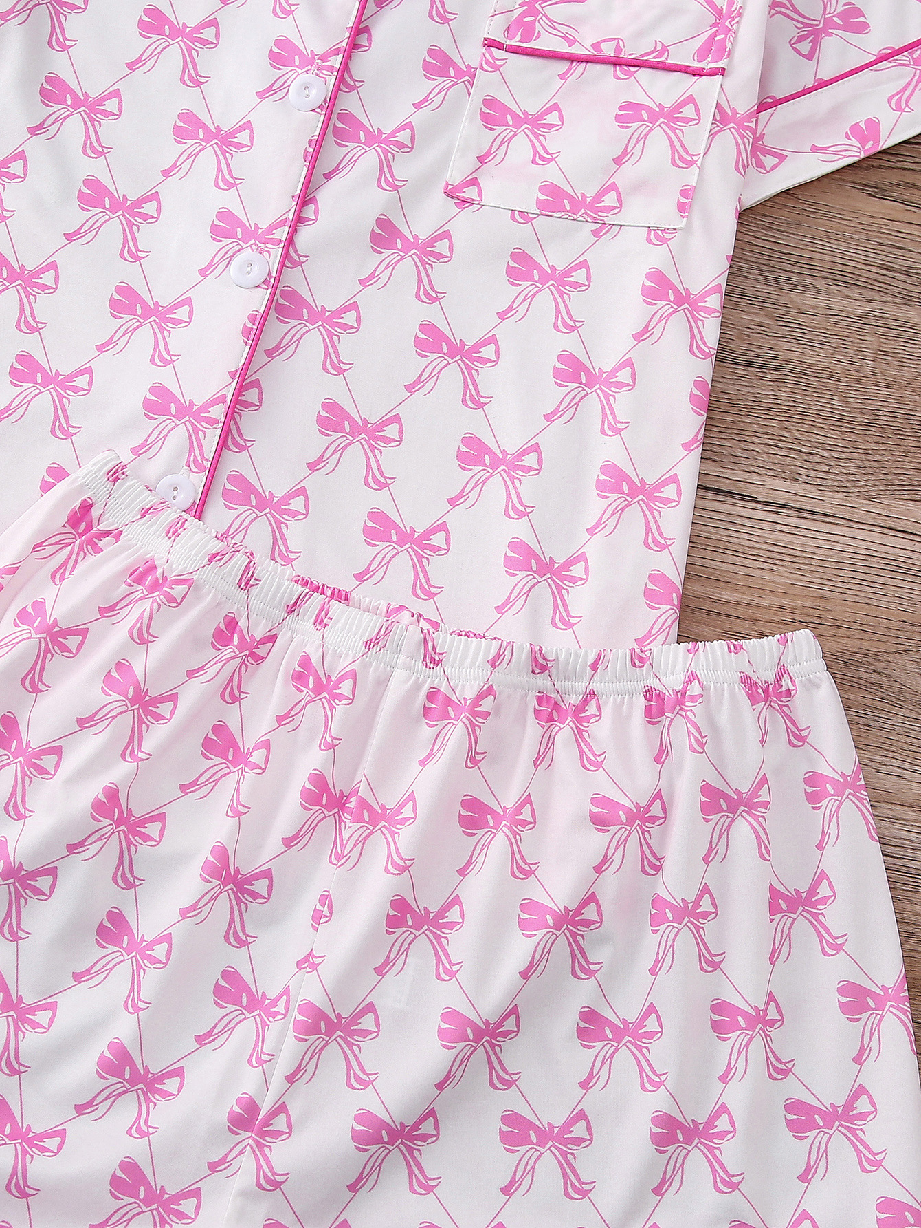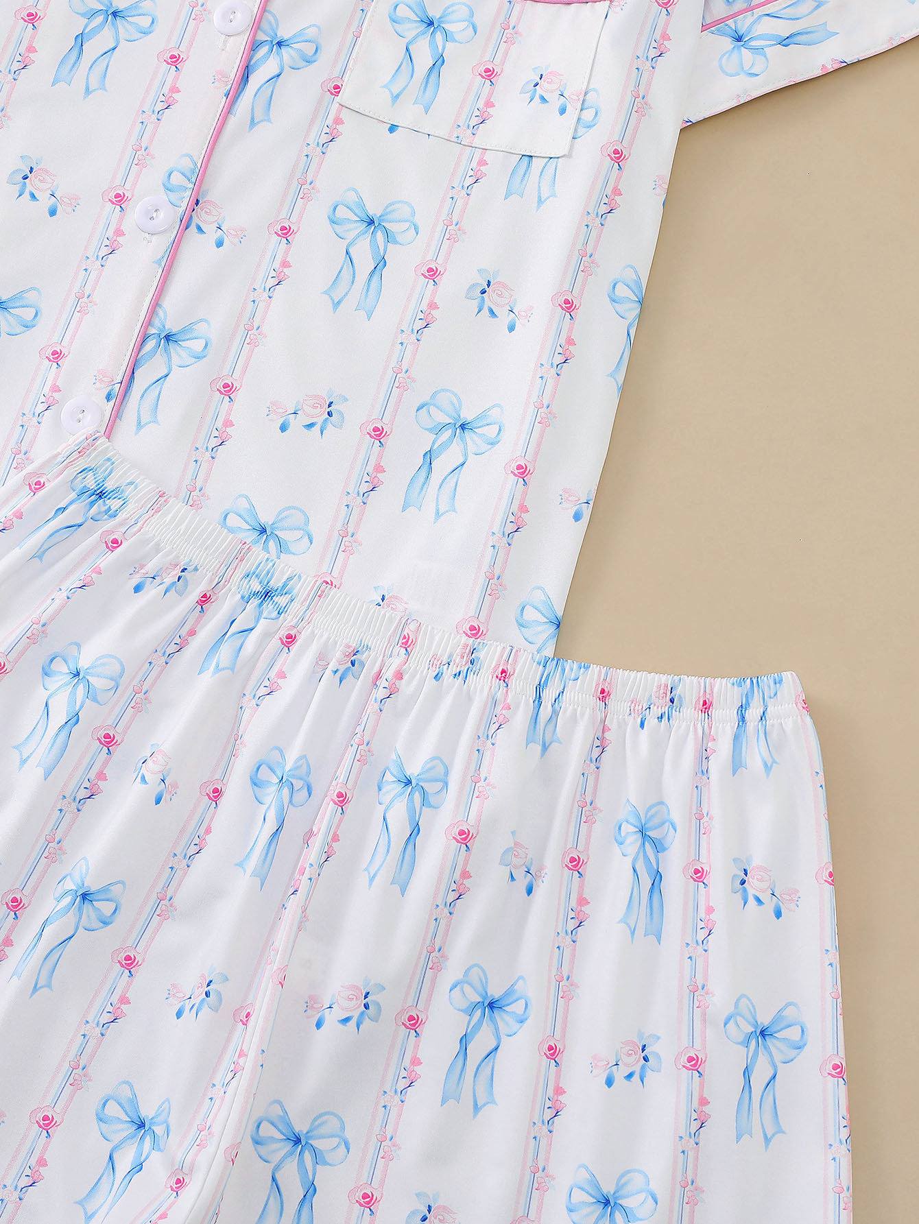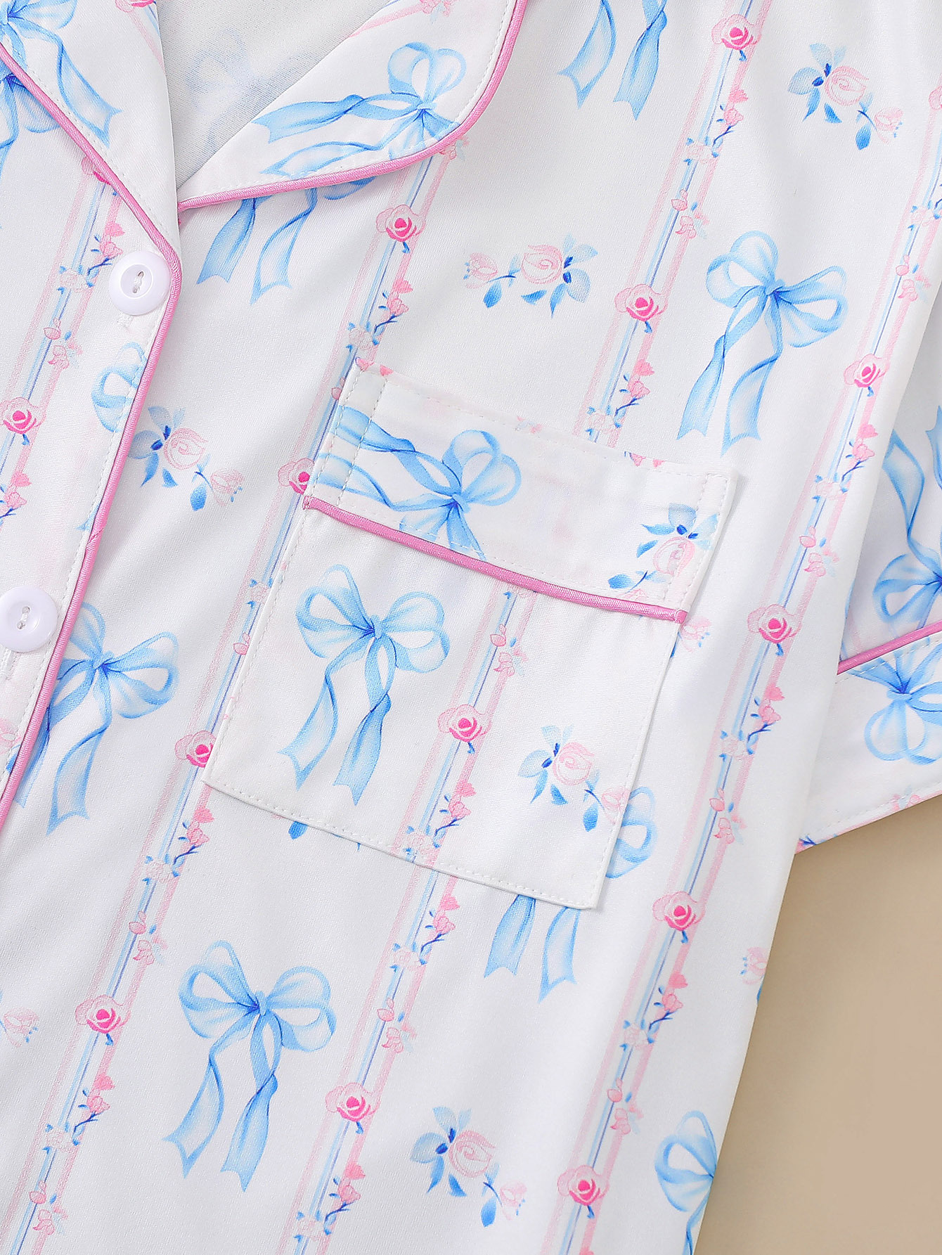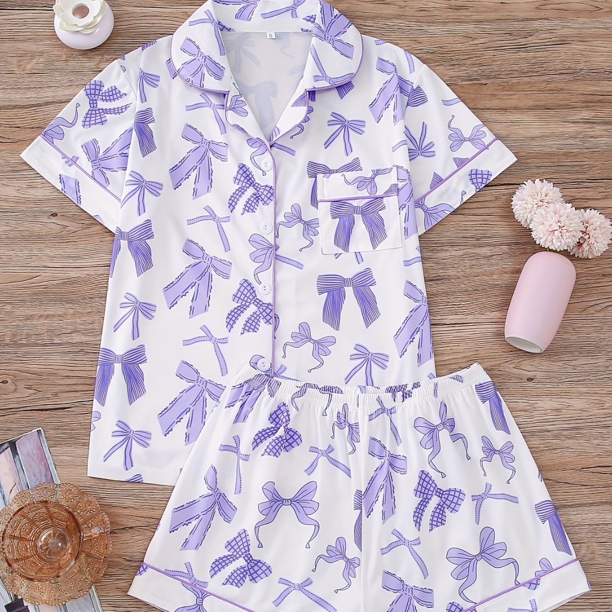 국경 간 대외 무역 인기 유럽과 미국 여성 잠옷 나비 프린트 라펠 반팔 반바지 잠옷