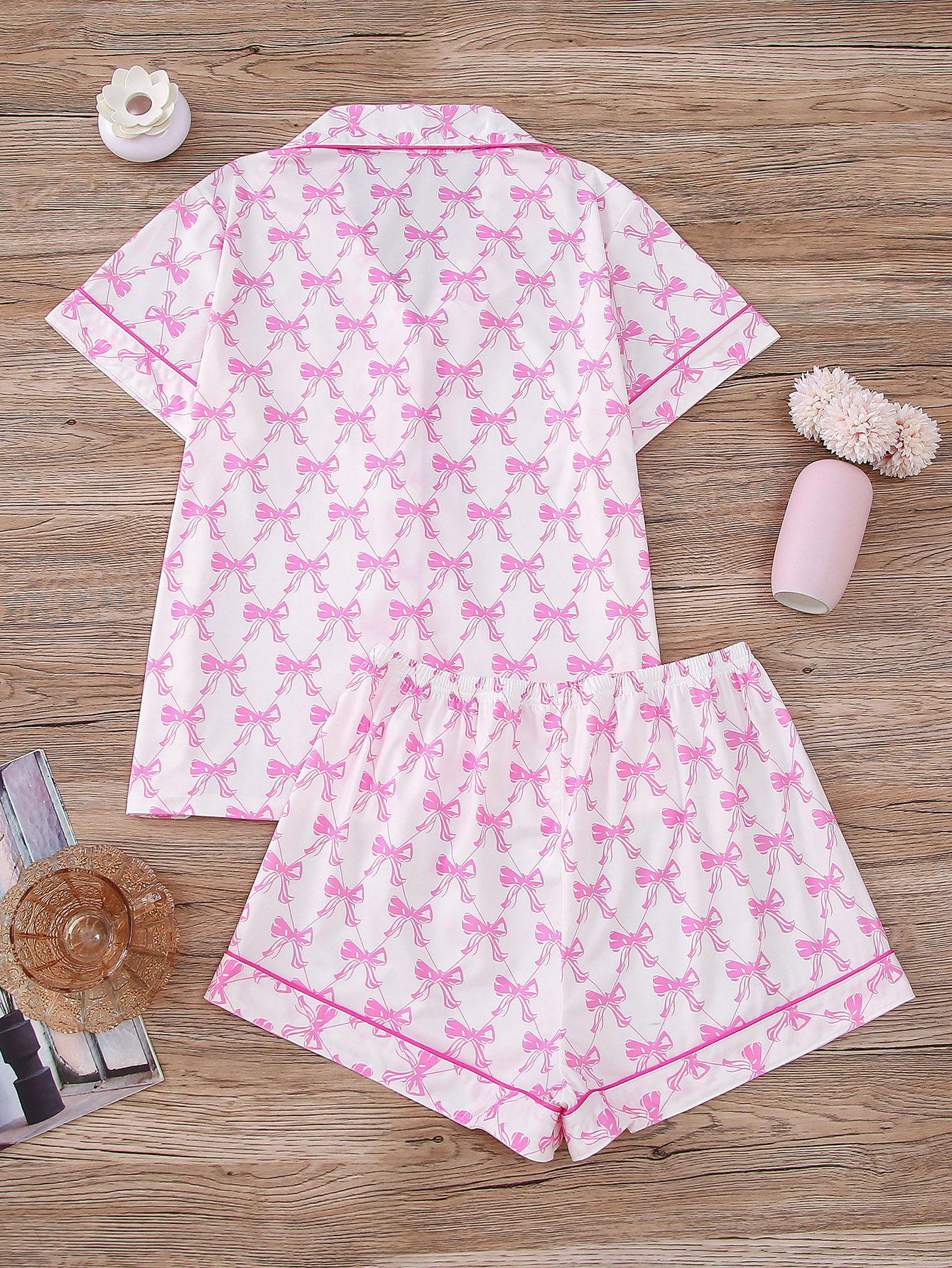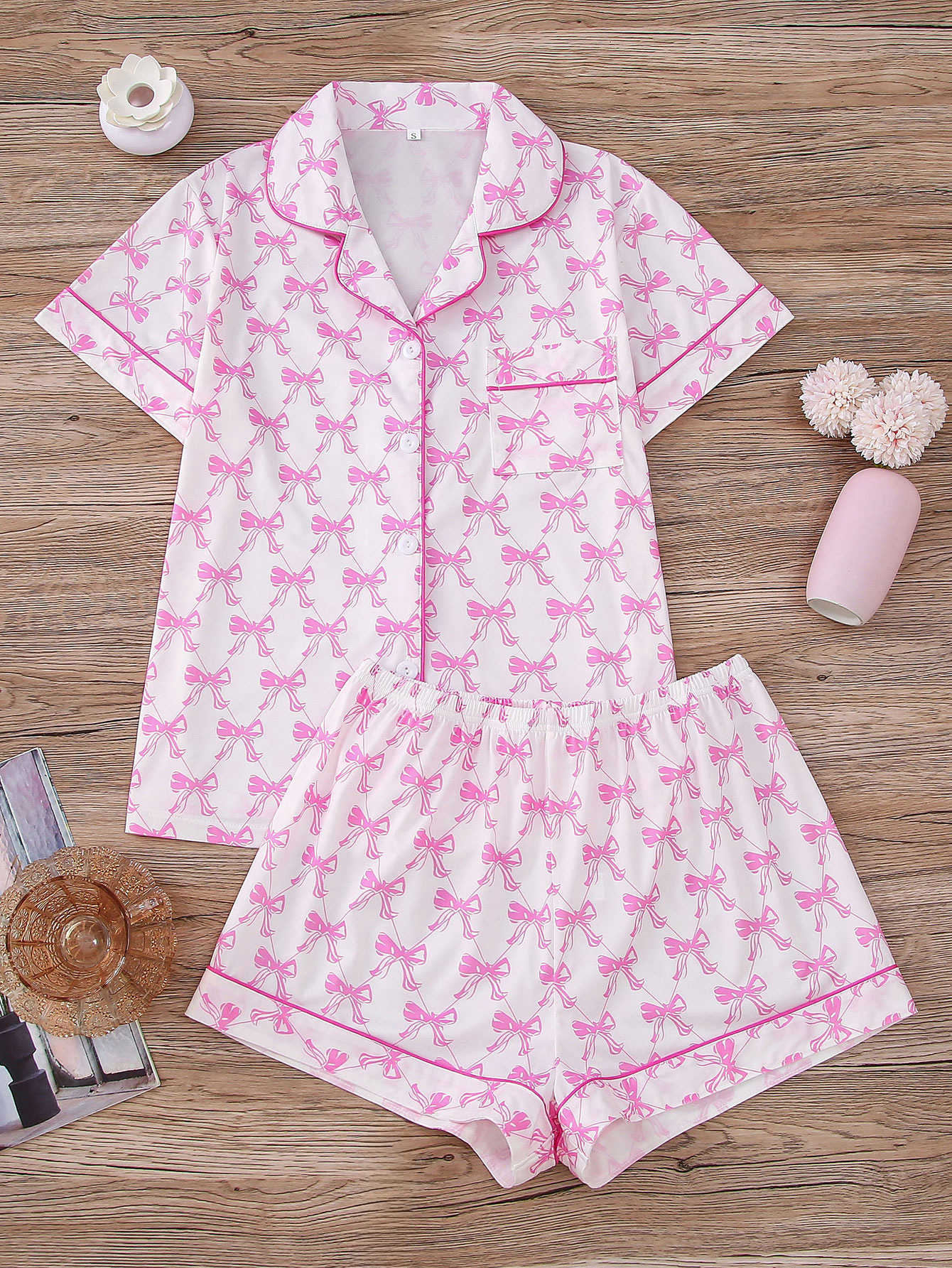 국경 간 대외 무역 인기 유럽과 미국 여성 잠옷 나비 프린트 라펠 반팔 반바지 잠옷스토어 가기