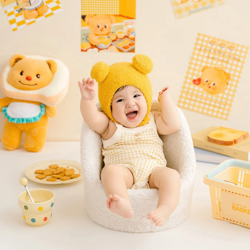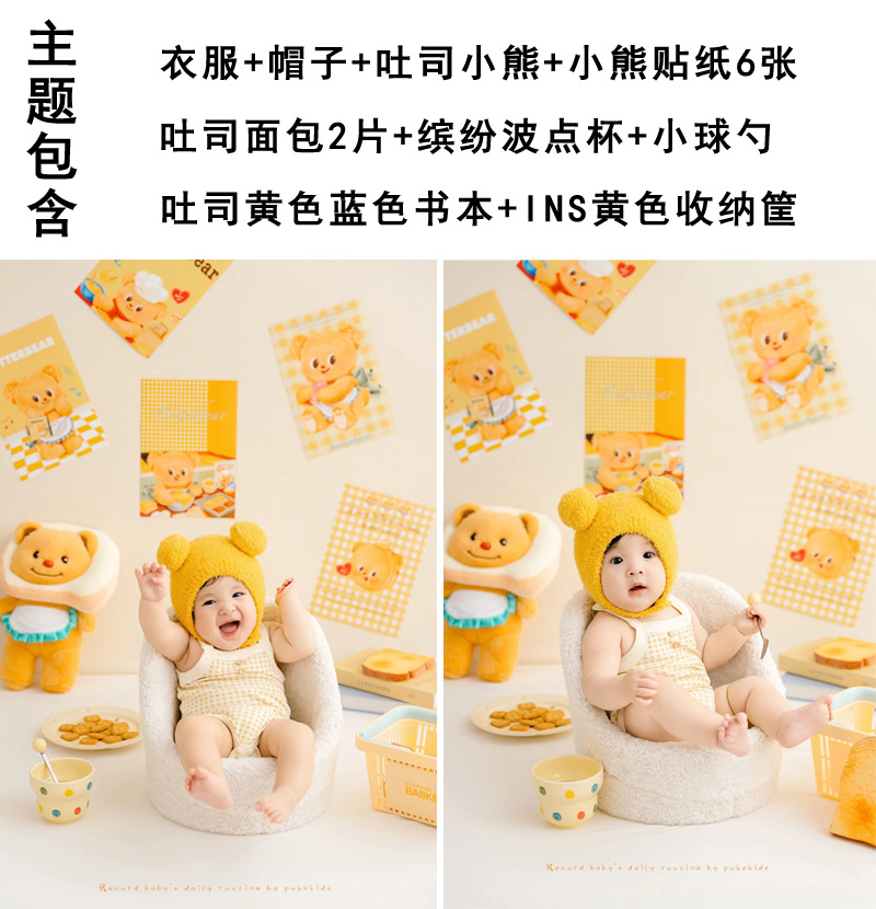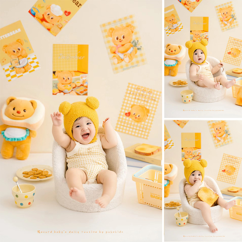 Xiaohongshu 인기 버터 베어 테마 아기의 100일 사진 예술 사진 스튜디오 소품 어린이 사진 의류스토어 가기