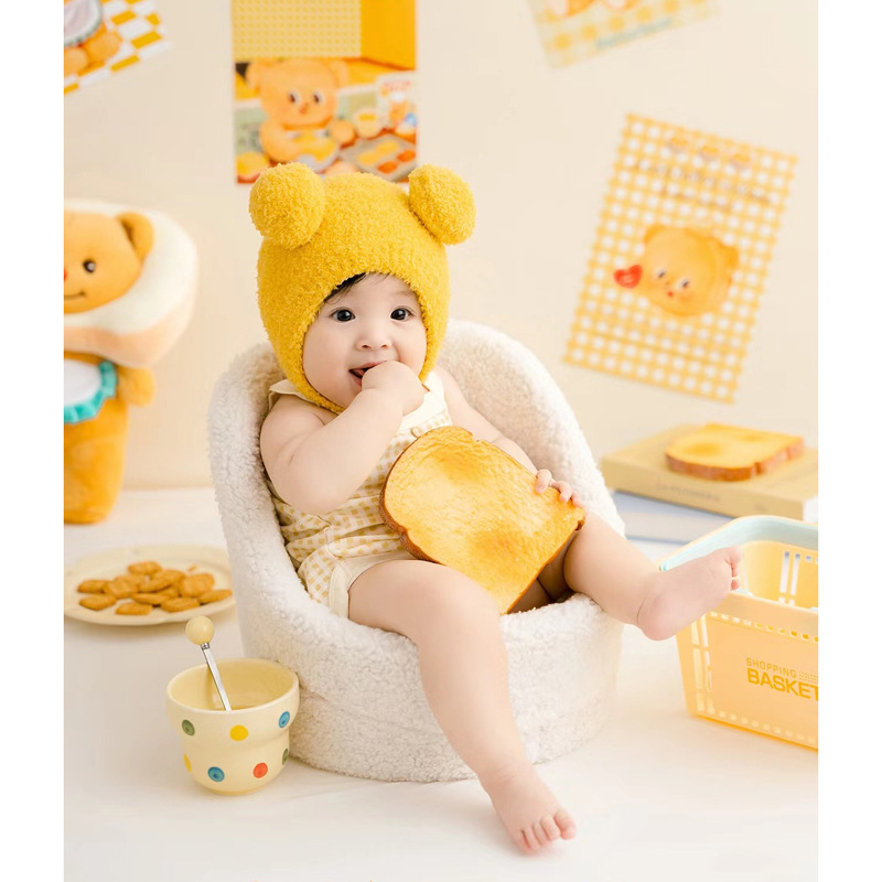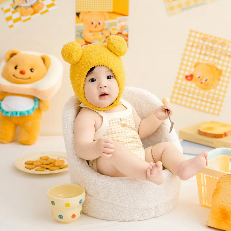 Xiaohongshu 인기 버터 베어 테마 아기의 100일 사진 예술 사진 스튜디오 소품 어린이 사진 의류