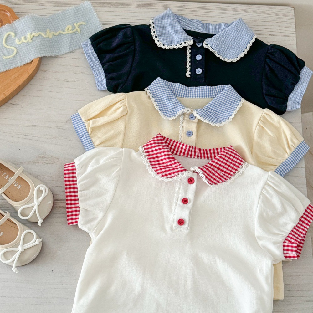 Tongxingyuan Girls 'Children's Wear 여름 새로운 귀여운 달콤한 어린이 반팔 티셔츠 최고의 대학 스타일 캐주얼 라 티셔츠