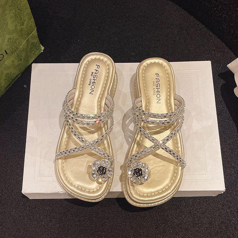 여름 여성을 위한 인터넷 연예인 진주 플립플롭 새로운 스타일 플랫 페어리 스타일 비치 샌들 부드러운 밑창 미끄럼 방지 샌들스토어 가기