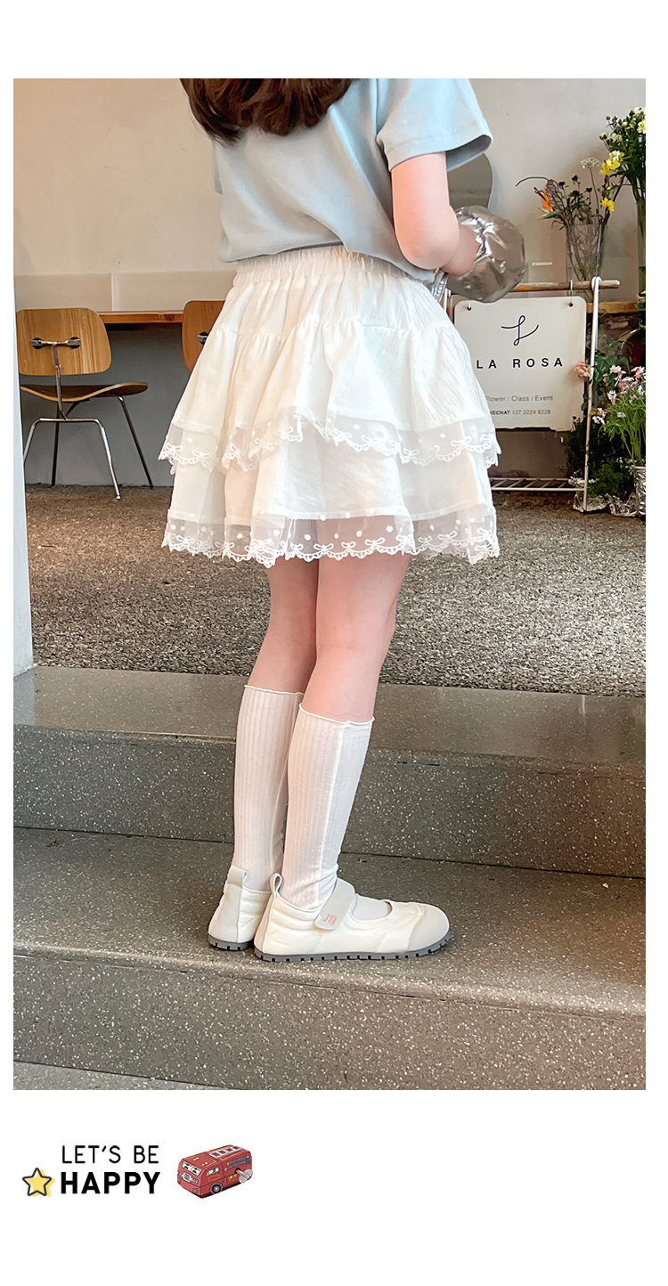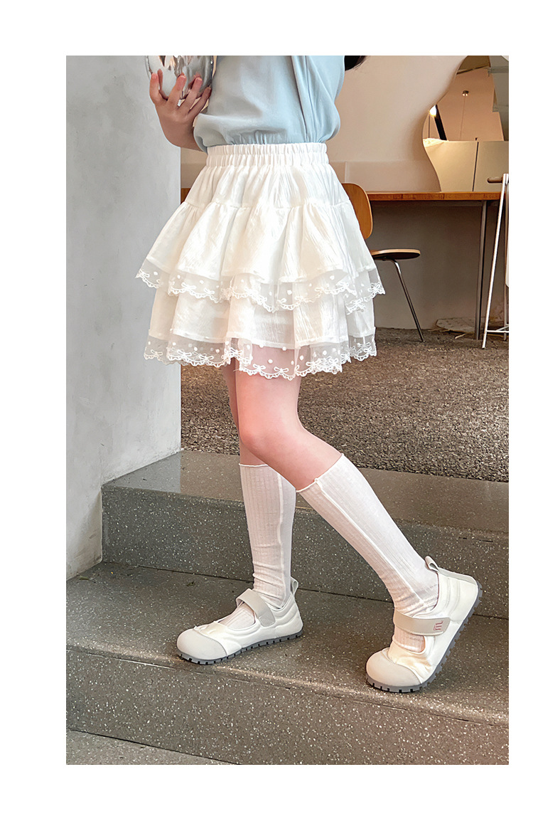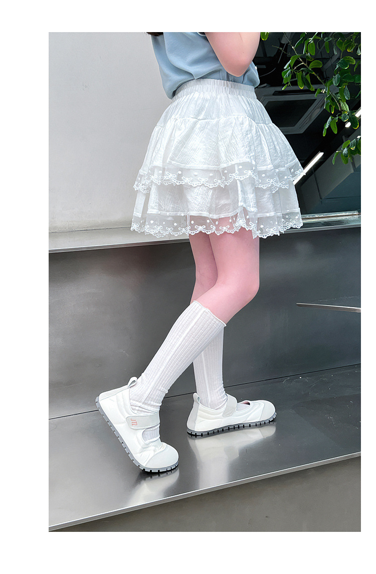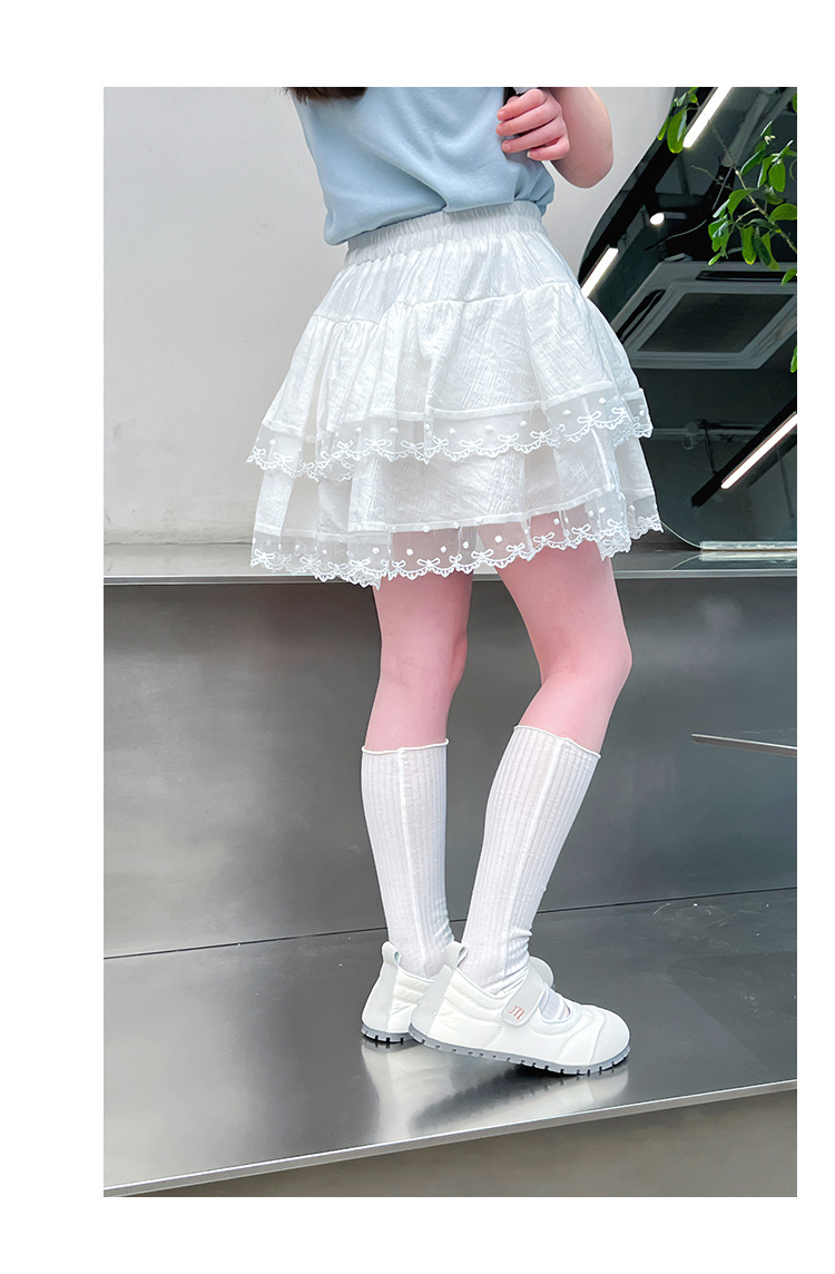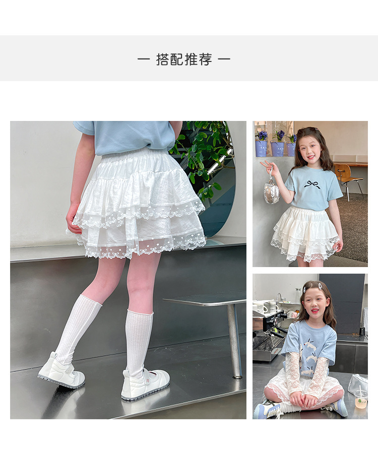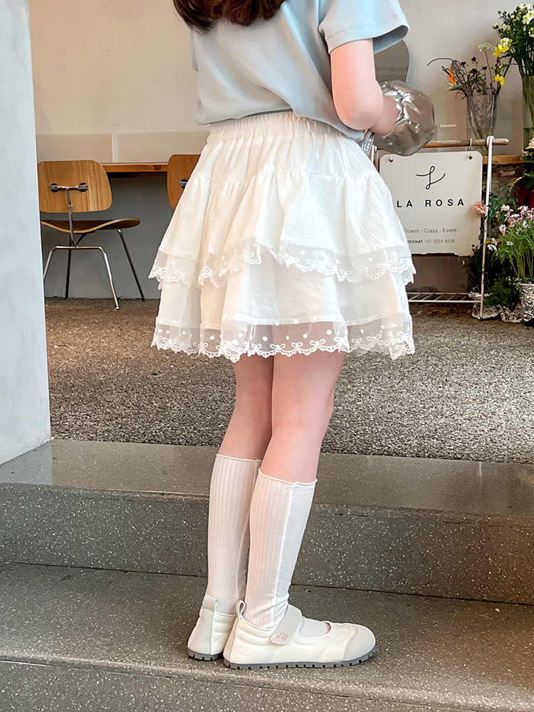여자 레이스 화이트 스커트 어린이 스타일 메쉬 스커트 큰 아동복 스커트 여자 2025 여름 새로운 스타일