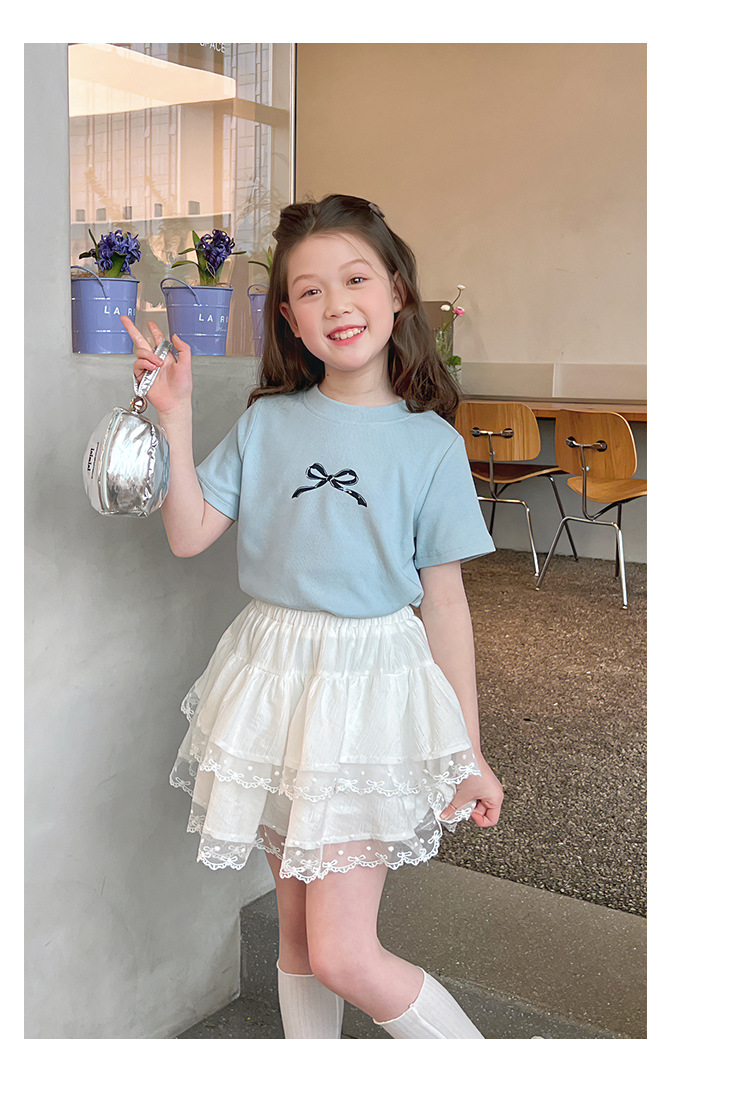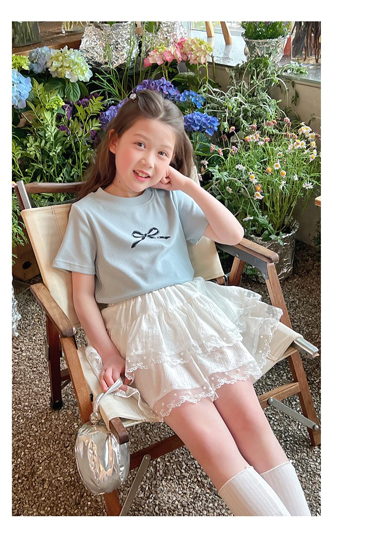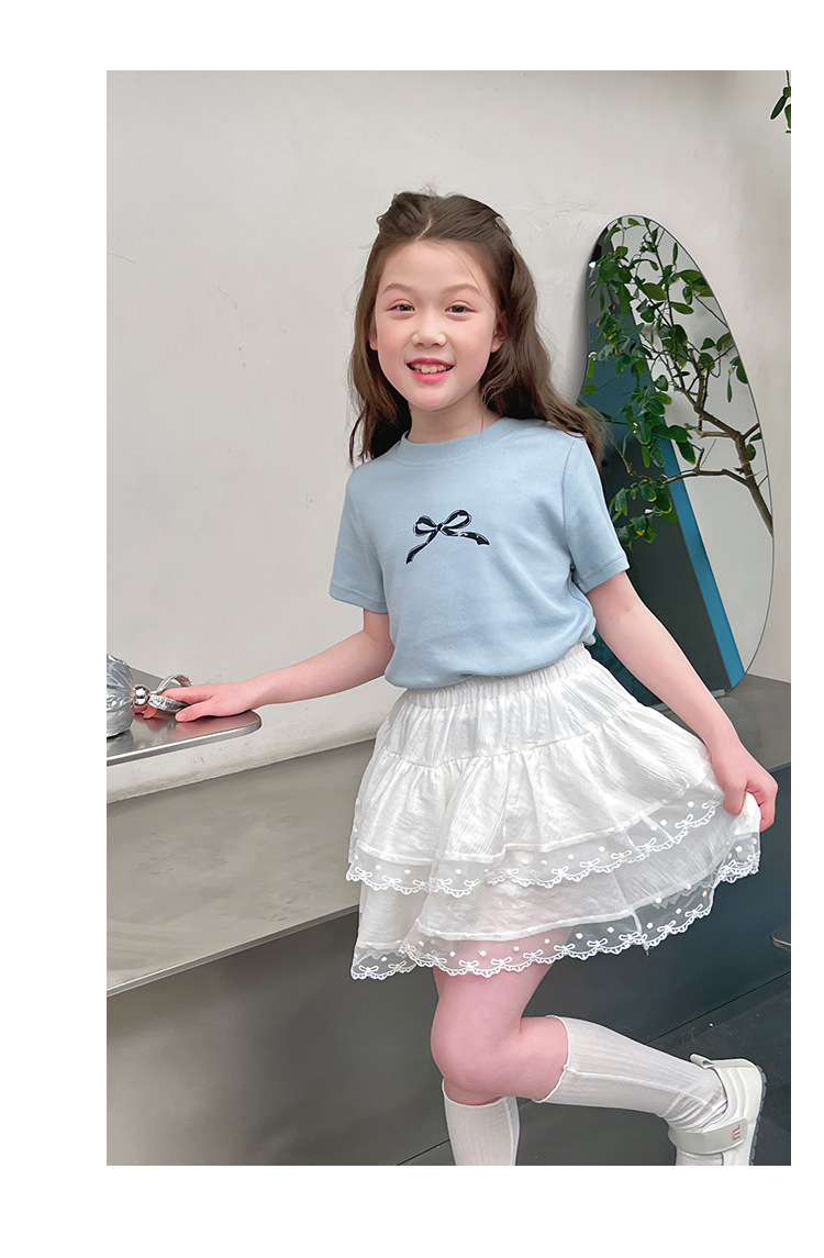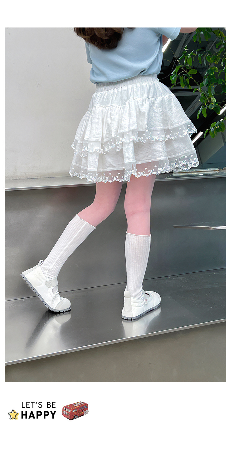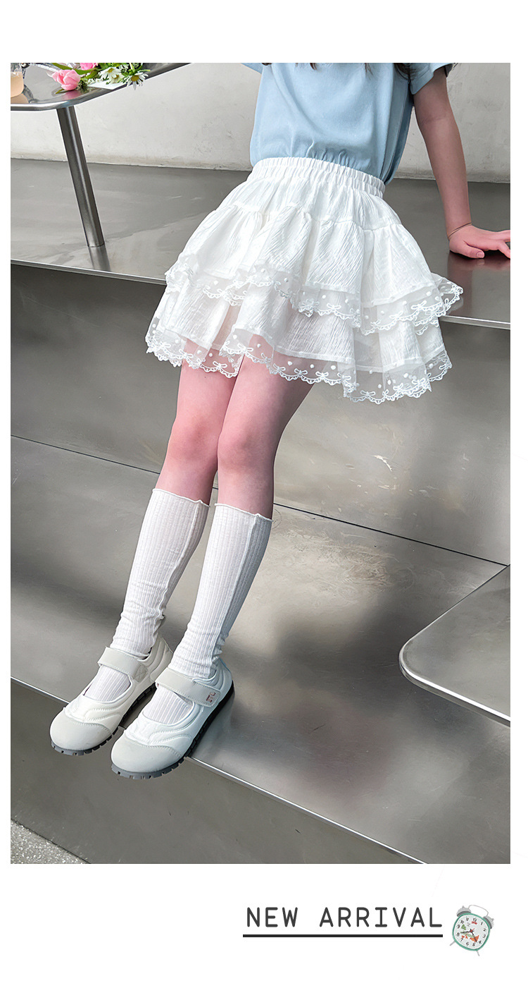 여자 레이스 화이트 스커트 어린이 스타일 메쉬 스커트 큰 아동복 스커트 여자 2025 여름 새로운 스타일