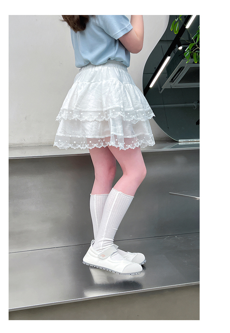 여자 레이스 화이트 스커트 어린이 스타일 메쉬 스커트 큰 아동복 스커트 여자 2025 여름 새로운 스타일스토어 가기