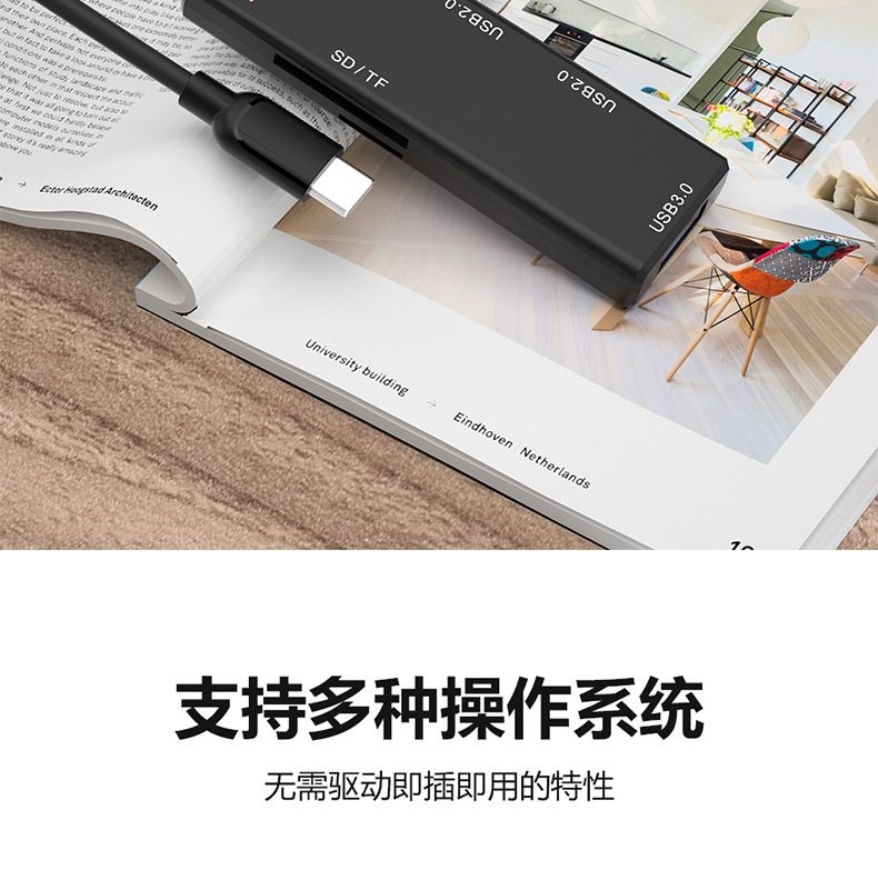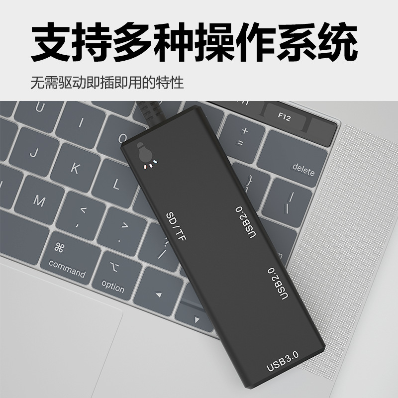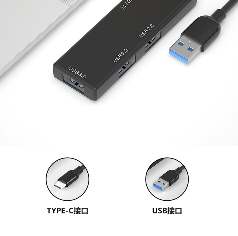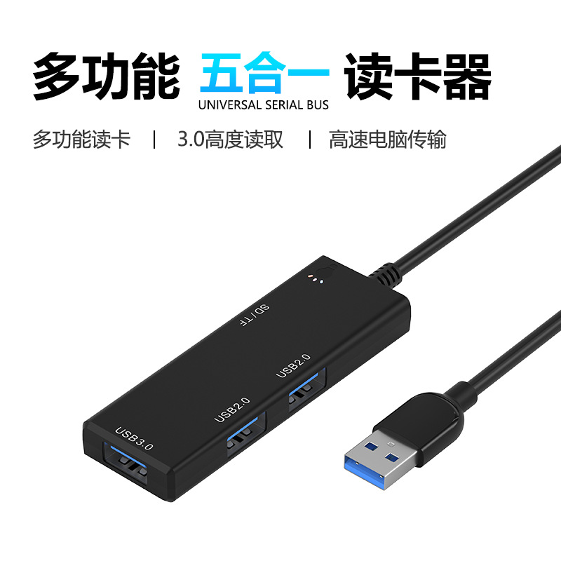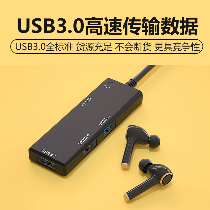 개인 모델 USB 3.0 분배기 SD/TF 카드 리더기 콤보 허브 검정색 ABS 플라스틱 쉘 재고 있음스토어 가기