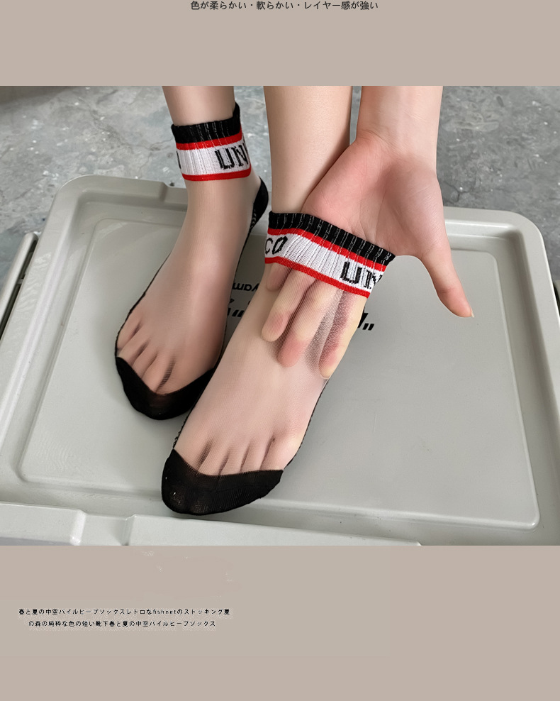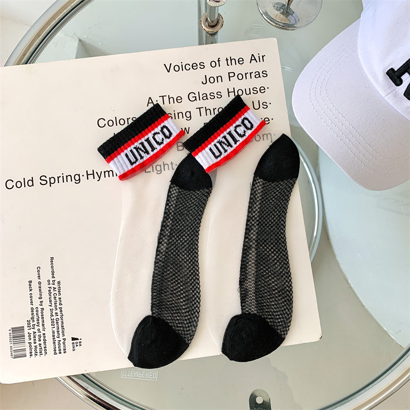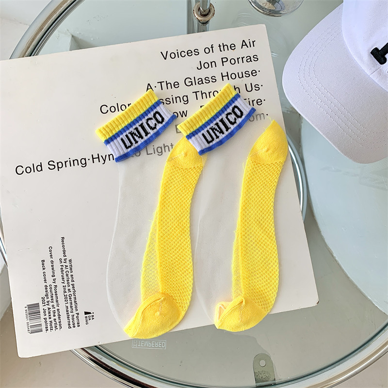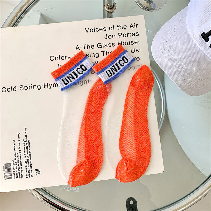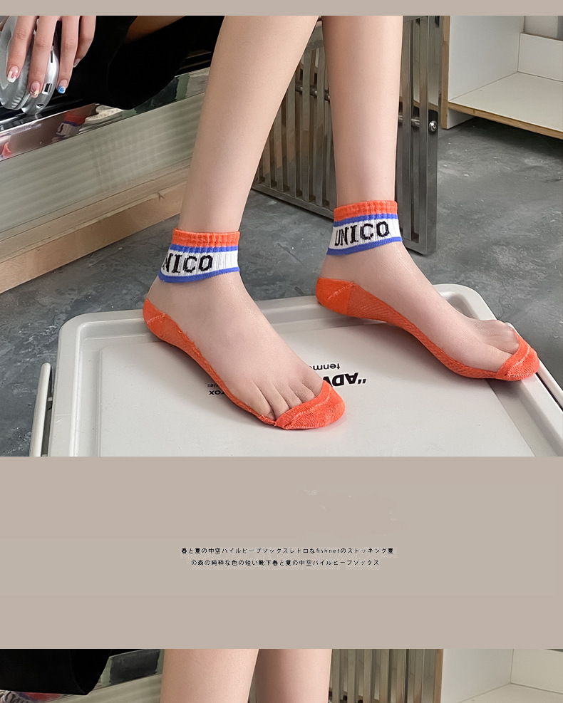 여성용 양말 여름 유리 실크 투명 크리스탈 실크 면 바닥 인터넷 연예인 편지 얇은 캔디 컬러 짧은 튜브 유행 양말스토어 가기