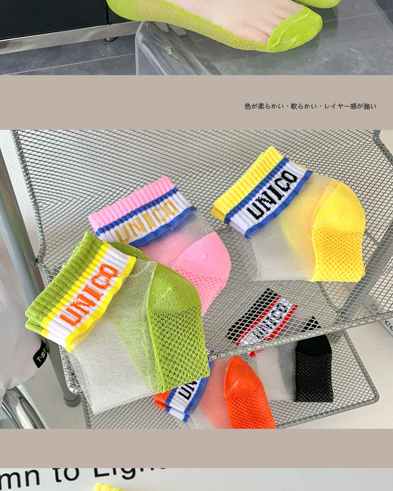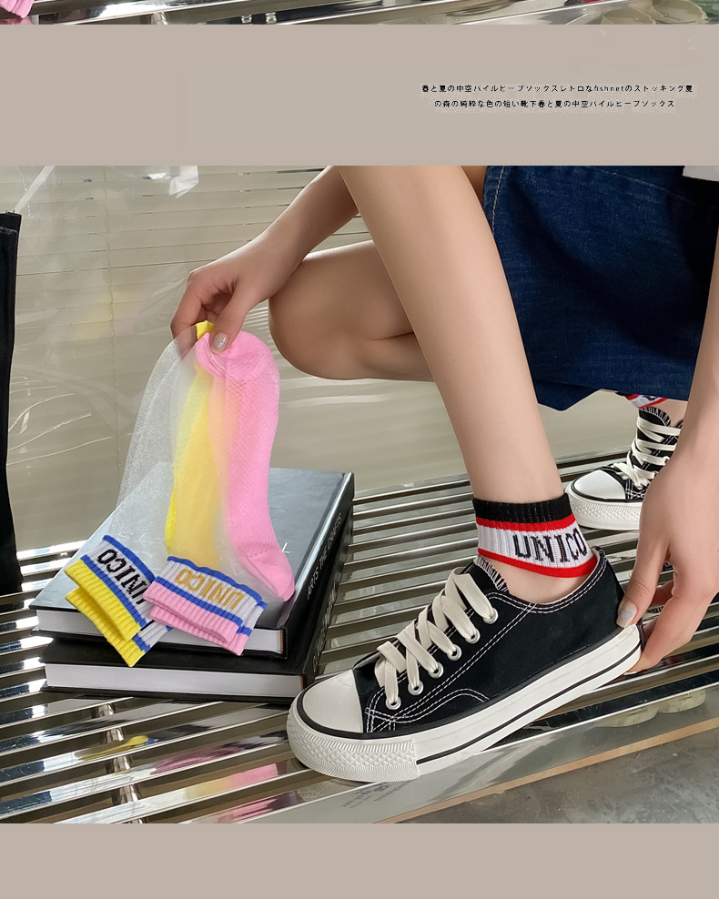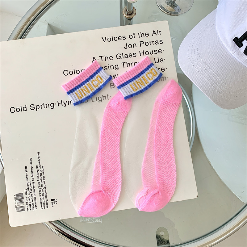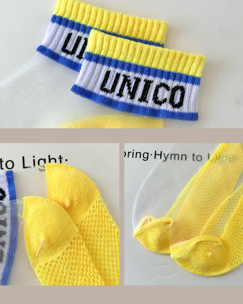 여성용 양말 여름 유리 실크 투명 크리스탈 실크 면 바닥 인터넷 연예인 편지 얇은 캔디 컬러 짧은 튜브 유행 양말스토어 가기