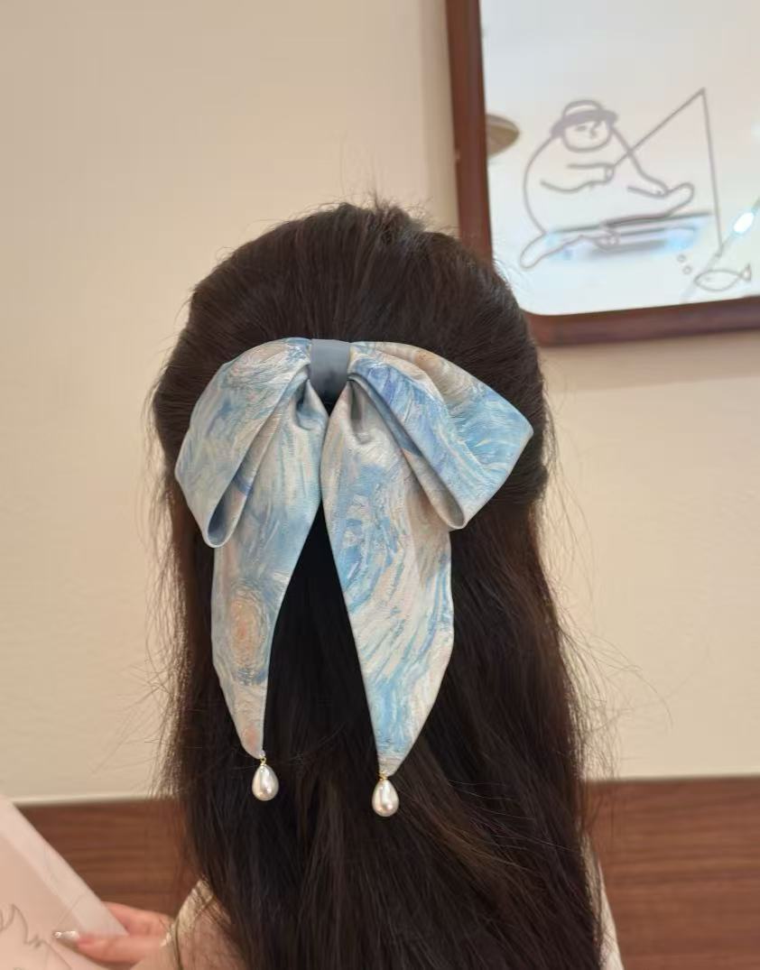 새로운 중국 유화 넥타이 염료 활 높은 포니 테일 잡아 헤어 액세서리 새로운 하이 엔드 스타 리본 교수형 구슬 헤드웨어스토어 가기