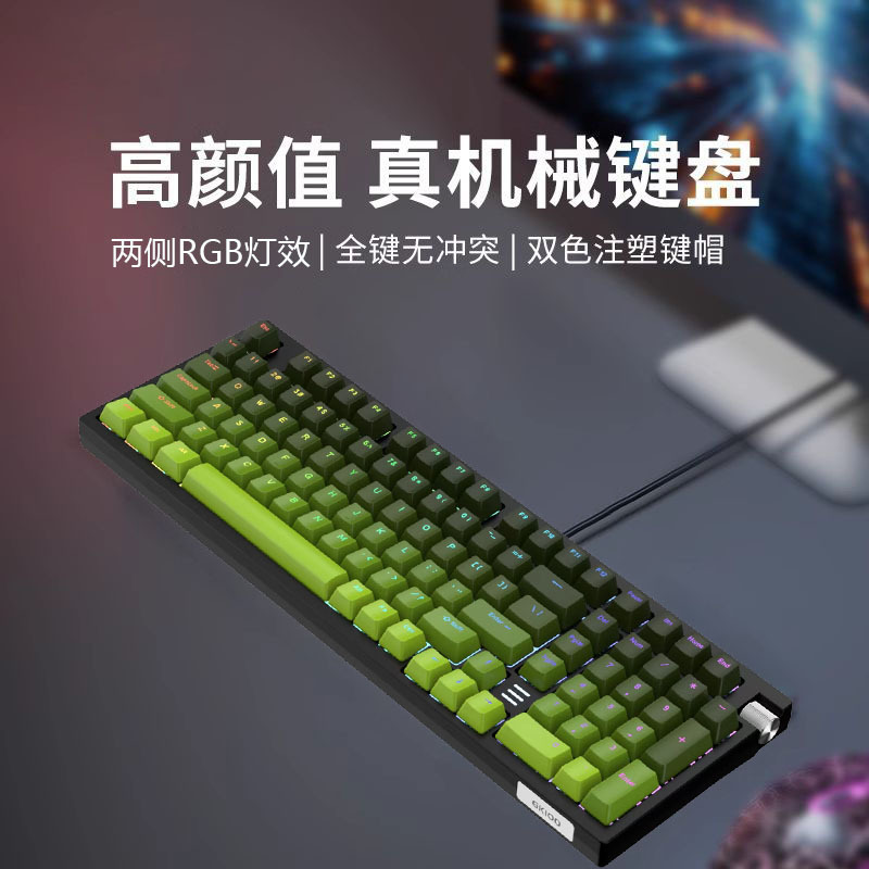 RGB 조명 효과 그라디언트 컬러 매칭의 양면에 공장 e-스포츠 게임 클래식 광학 축 기계식 키보드 100 키 캡 키 야옹