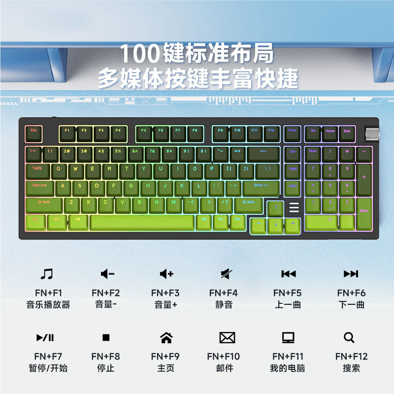 RGB 조명 효과 그라디언트 컬러 매칭의 양면에 공장 e-스포츠 게임 클래식 광학 축 기계식 키보드 100 키 캡 키 야옹스토어 가기