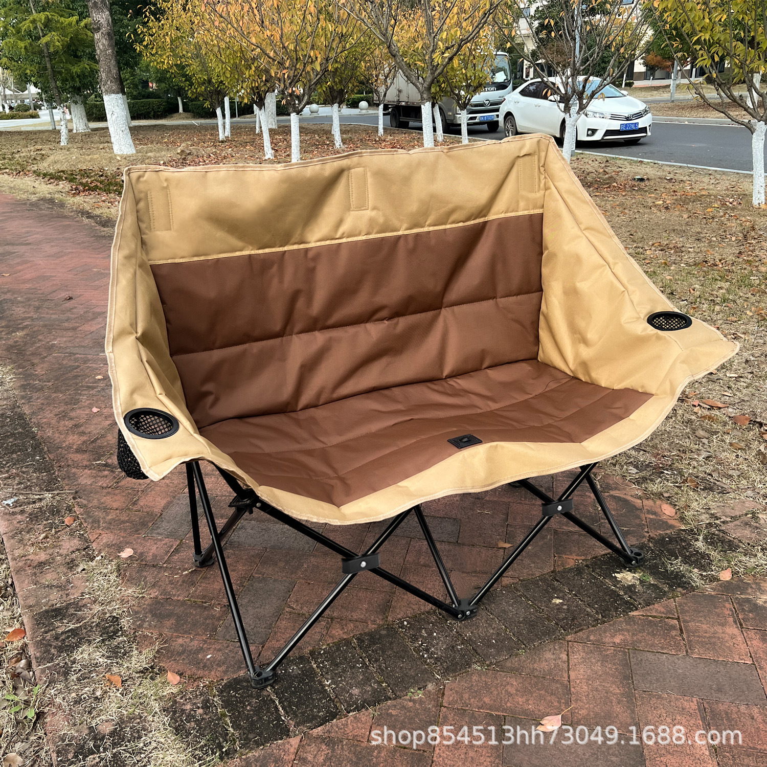 야외 접이식 의자 퀼트 더블 의자 휴대용 캠핑 의자 피크닉 낚시 등받이 해변 레저 안락 의자스토어 가기