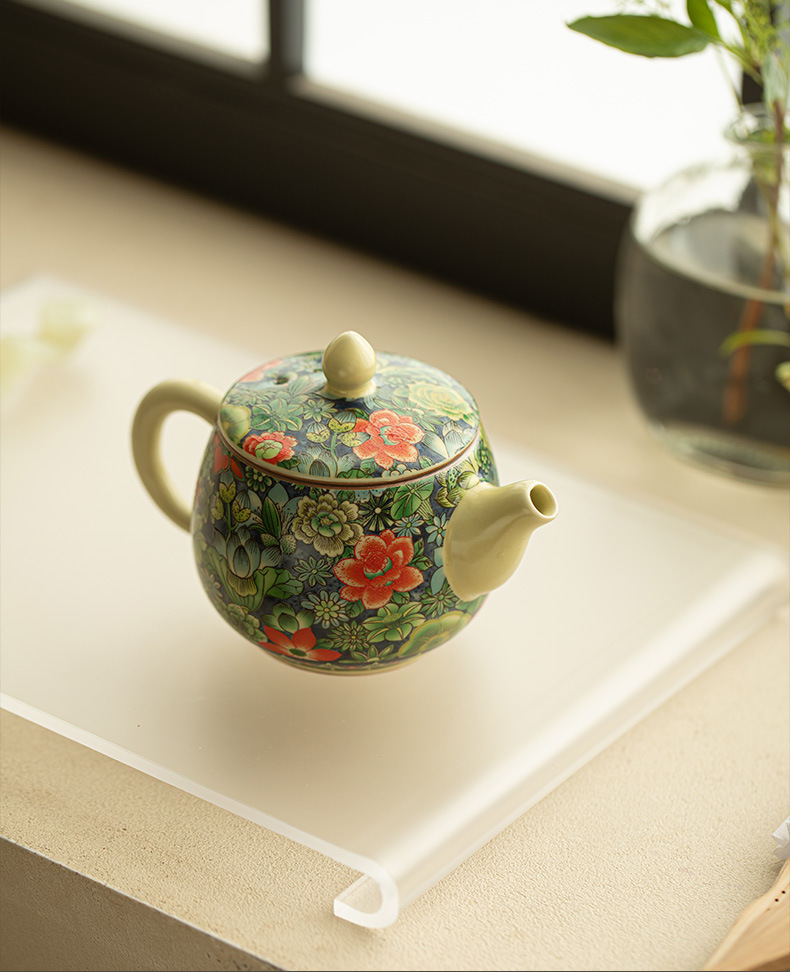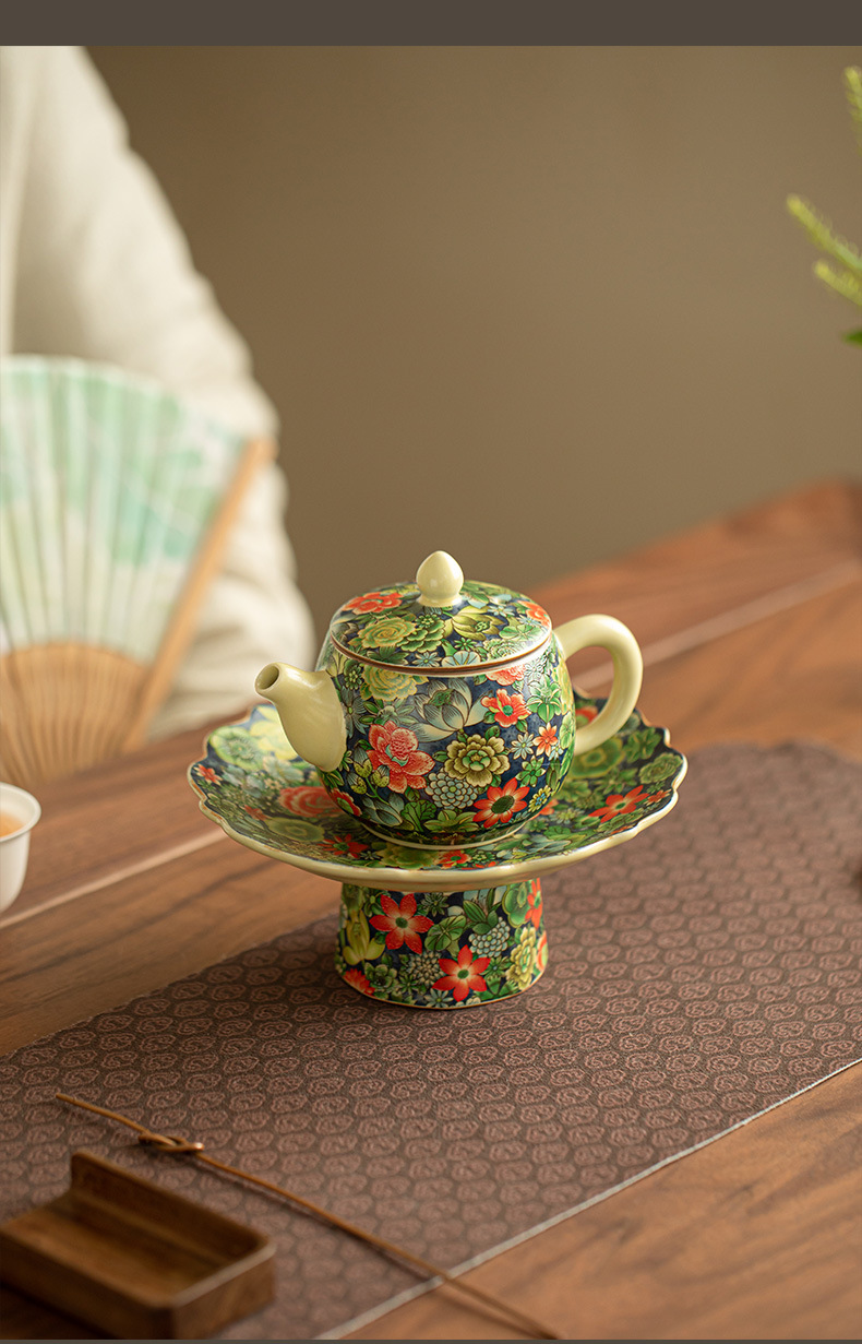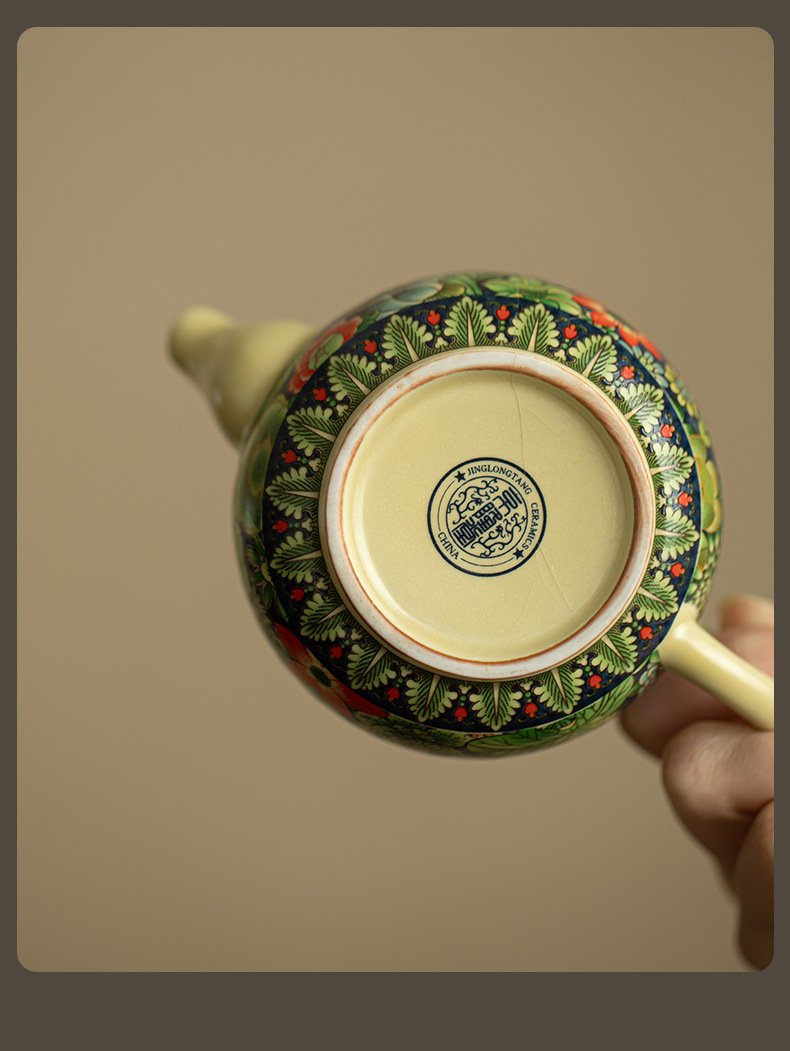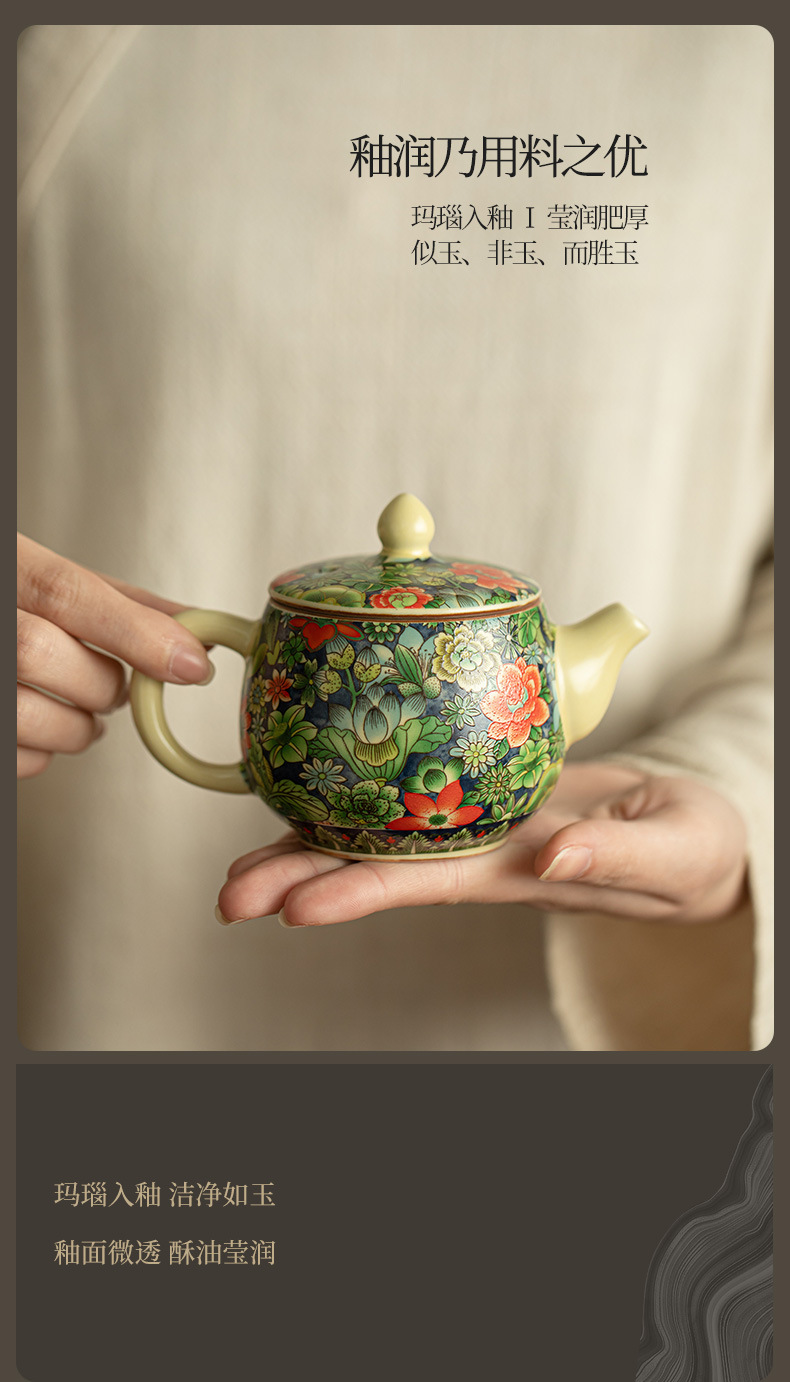 Jingdezhen 빈티지 꽃 파스텔 주전자 그물 주전자 푹신한 주전자 세라믹 차 세트 홈 오피스 쿵푸 차 세트스토어 가기