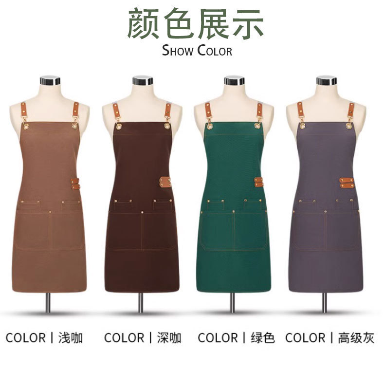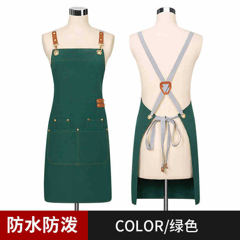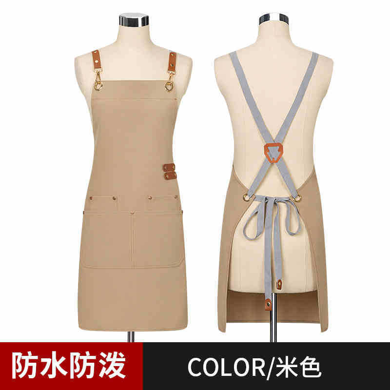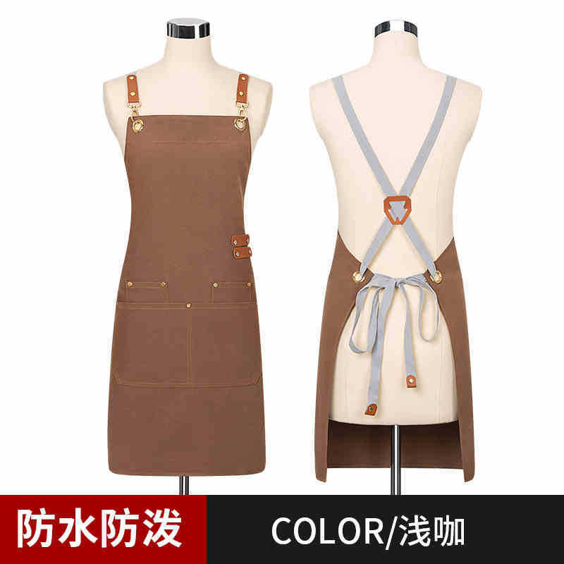 주방 캔버스 앞치마 방수 케이터링 특수 작업복 인쇄 로고 커피 밀크 티 샵 웨이터 앞치마 여성용스토어 가기