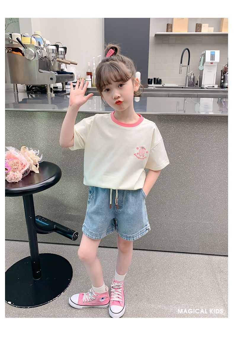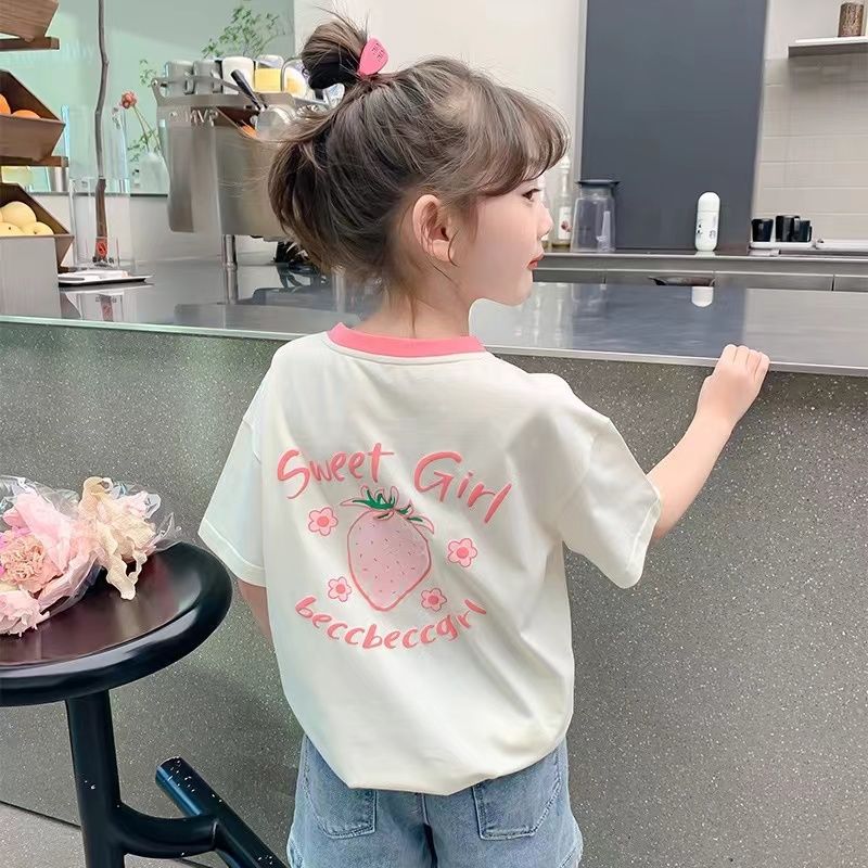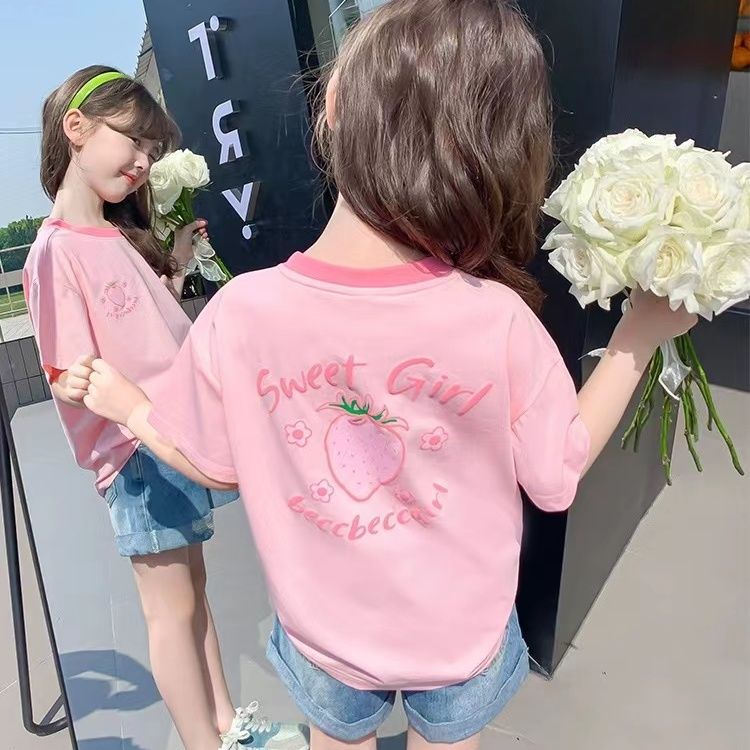 여자 반소매 티셔츠 여름 2025 새로운 스타일 여자 서양식 아동복 여름 티셔츠 어린이 여름 반소매 탑스토어 가기