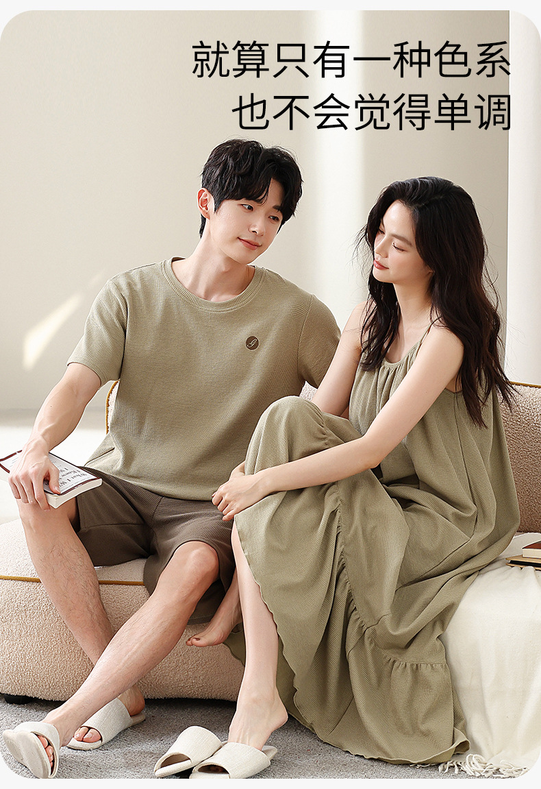 커플 잠옷 여름 와플 순수 코튼 여성 서스펜더 잠옷 남성 패션 반팔 반바지 홈웨어 세트