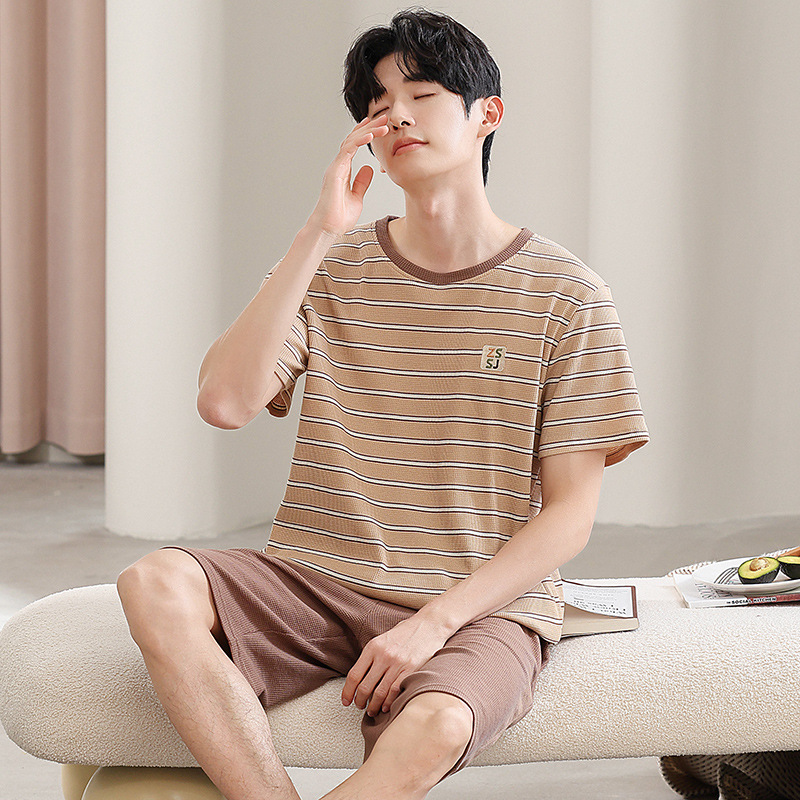 커플 잠옷 여름 와플 순수 코튼 여성 서스펜더 잠옷 남성 패션 반팔 반바지 홈웨어 세트스토어 가기