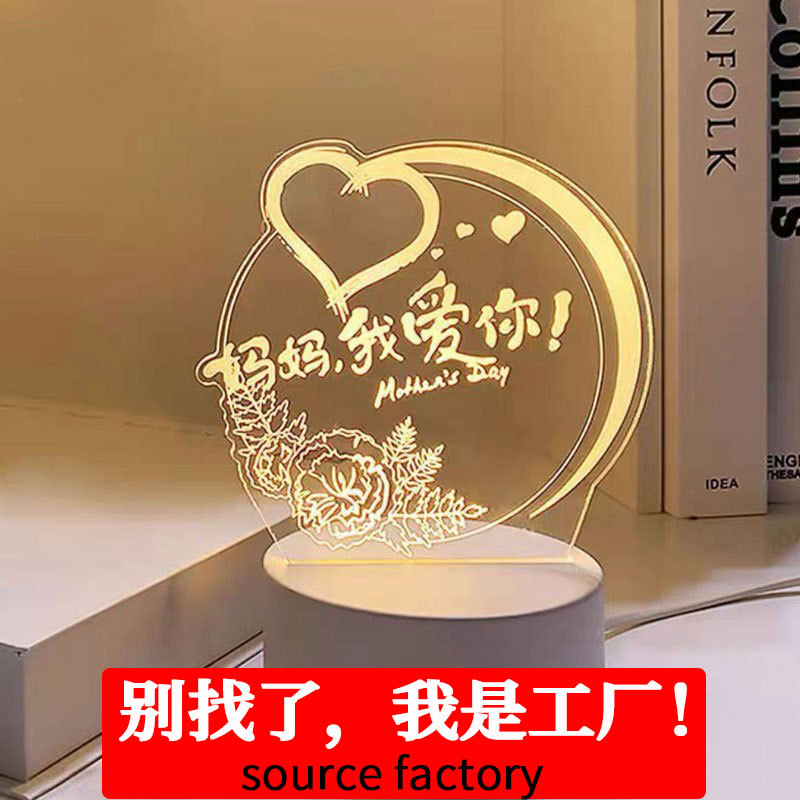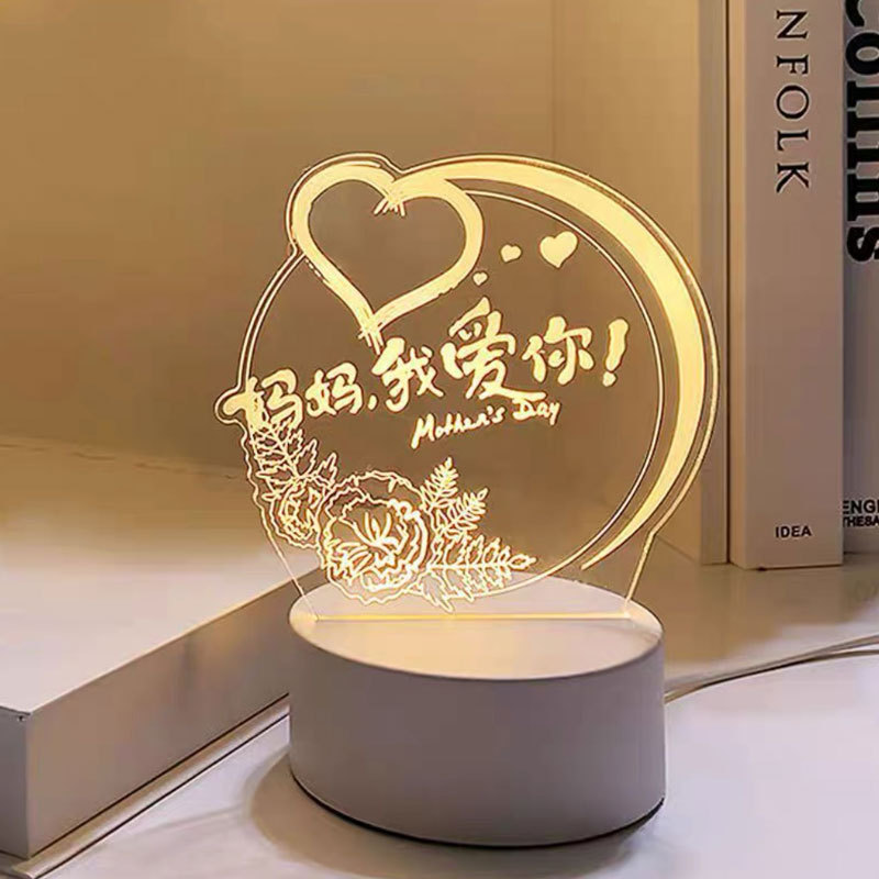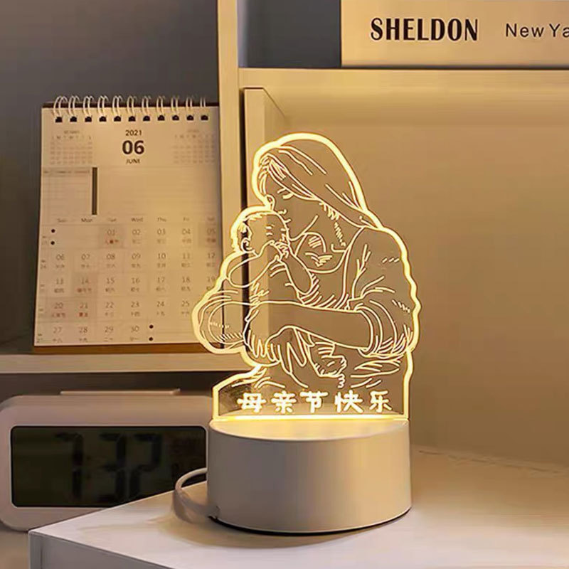 어머니날 선물 아이디어: 실용적인 3D 무드등, 침실 침대 옆 분위기 조성 수면용 플러그인 테이블 램프 신제품