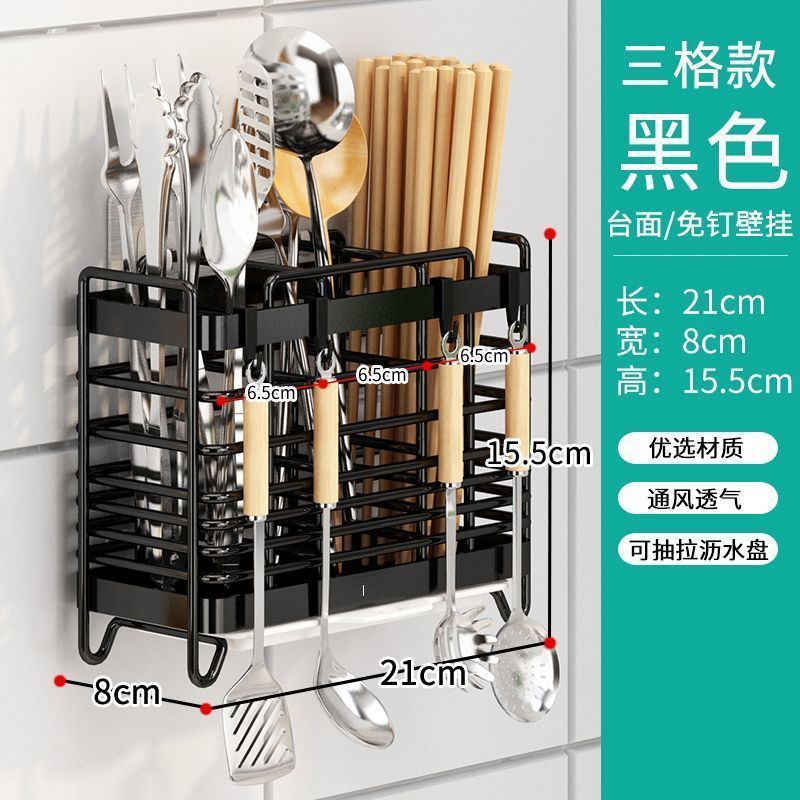 • 블랙 [선택된 고품질 탄소강] - 새 모델은 더 이상 젓가락과 숟가락이 새지 않습니다. 탄소강 조밀한 메쉬 3개 칸 - 데스크탑 모델 + 배수 트레이