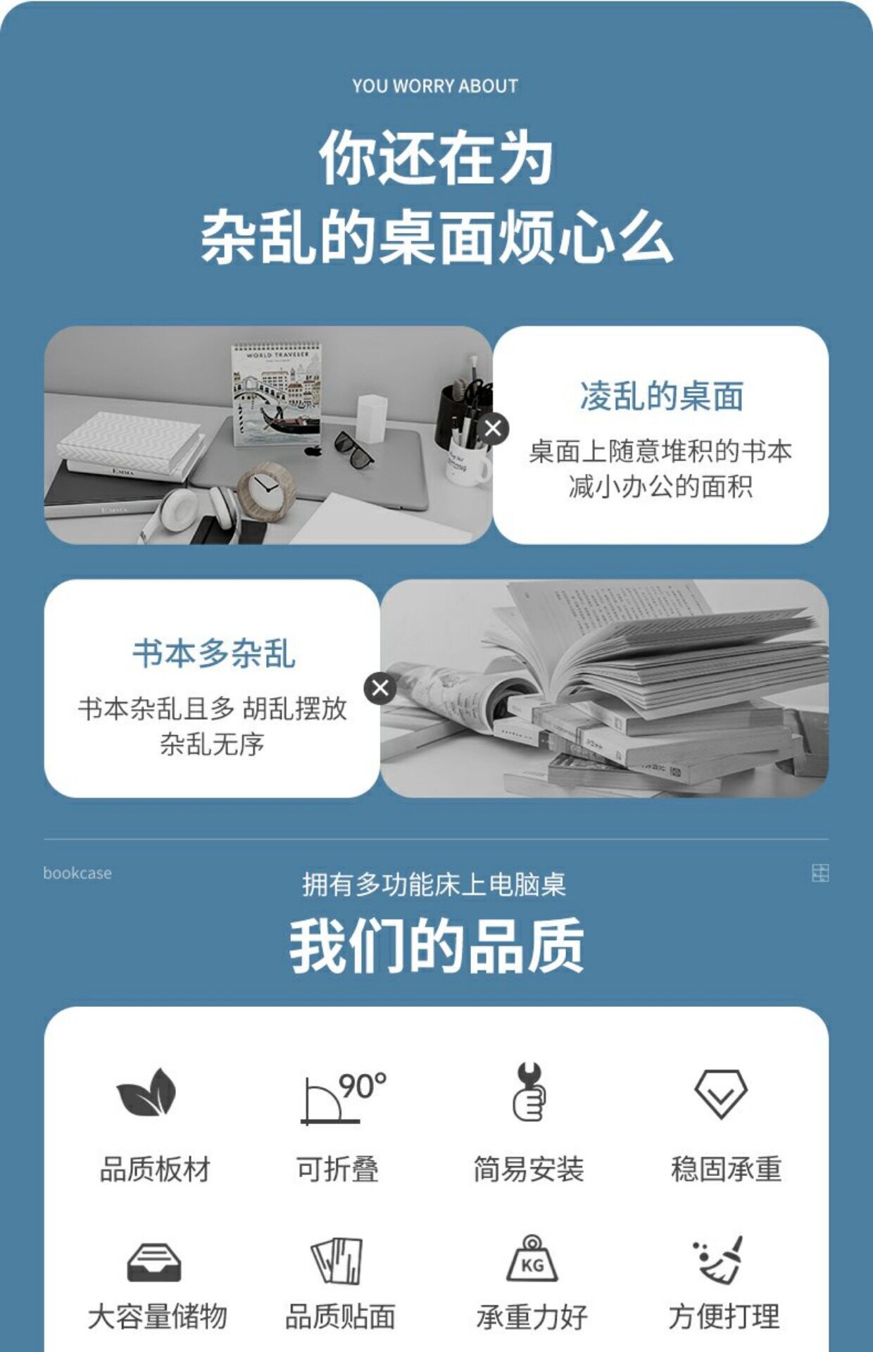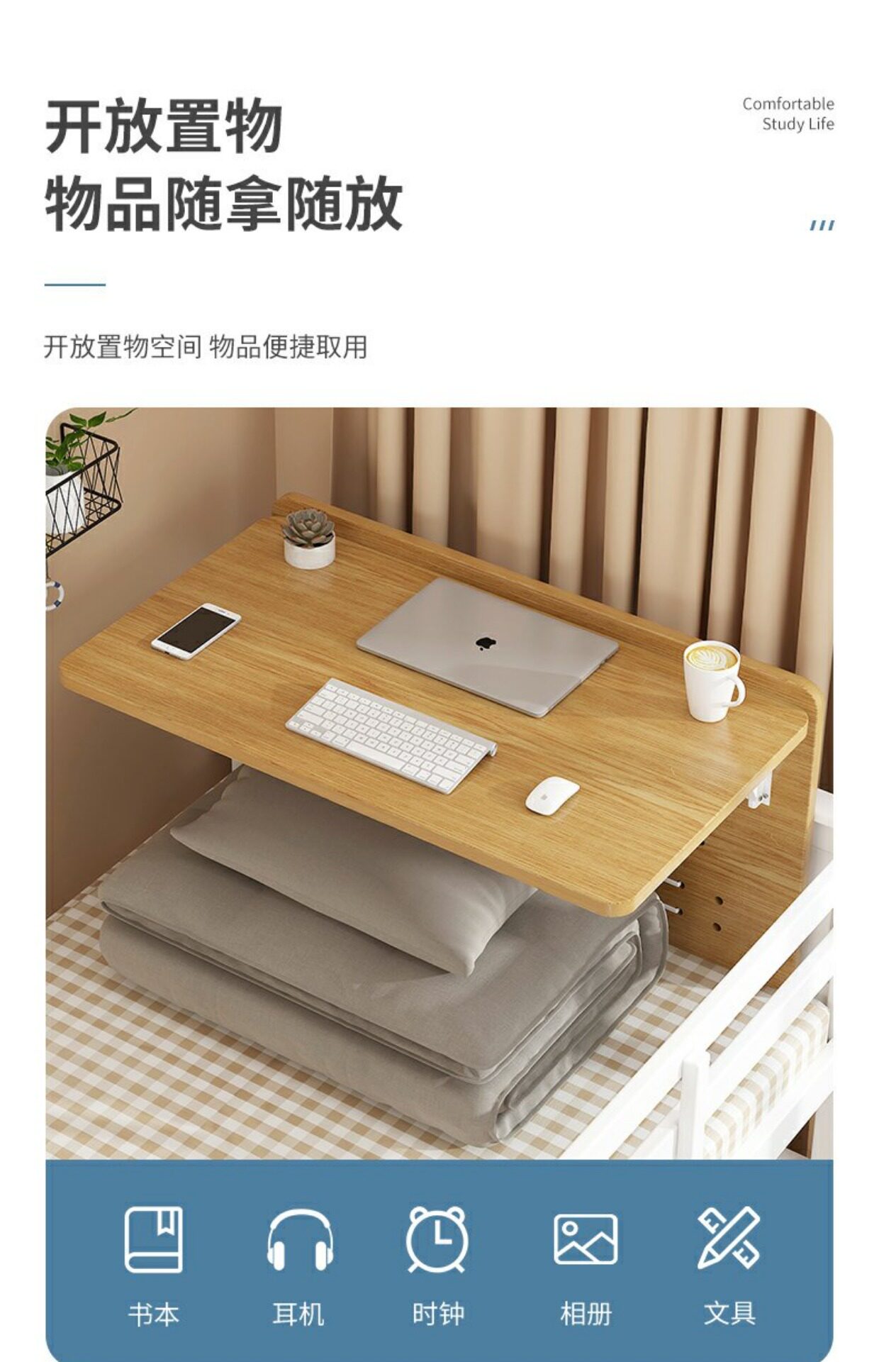 게으른 사람들을 위한 침대 컴퓨터, 대학생 기숙사용 간단한 작은 테이블, 상하층 침대용 공중에 뜨는 접이식 책상