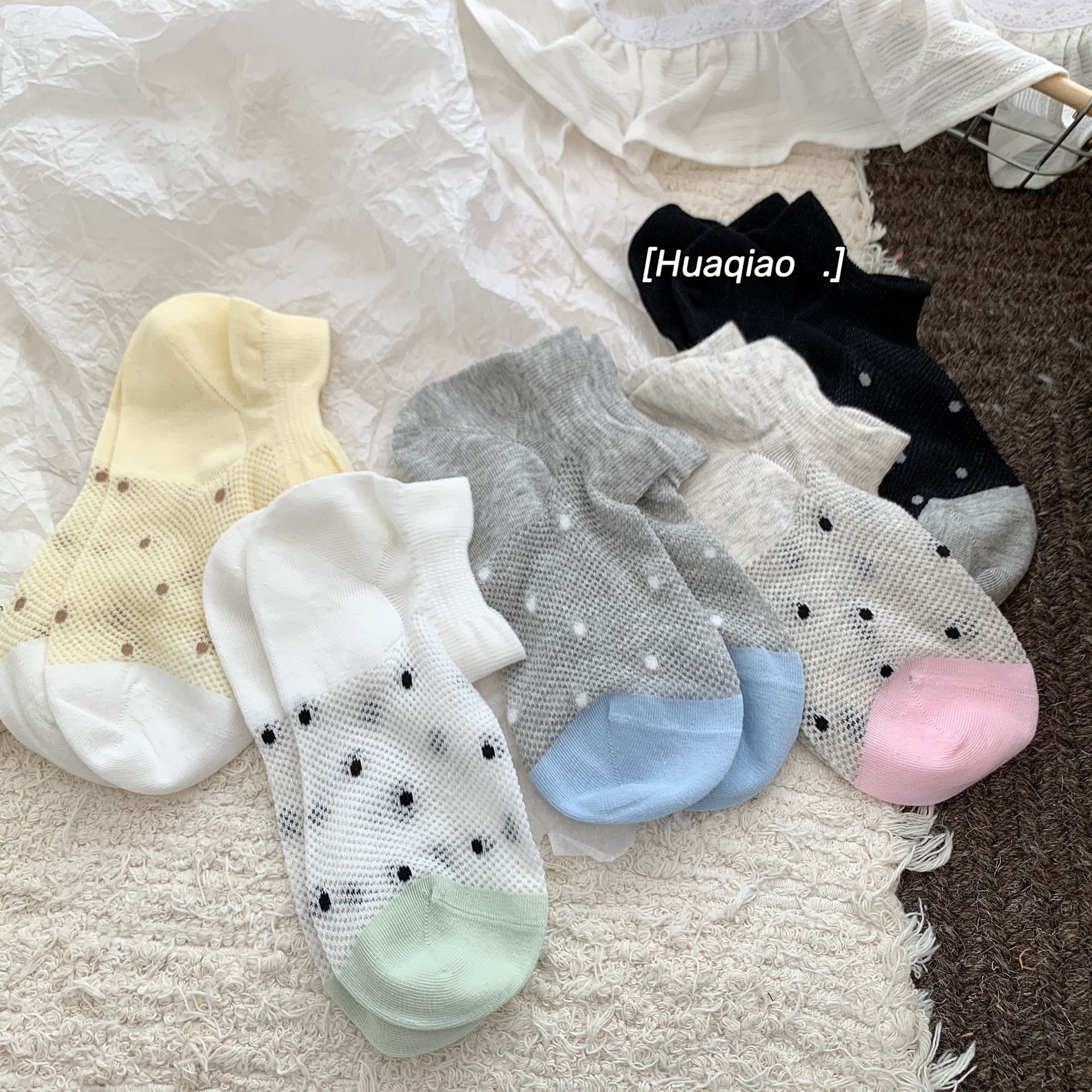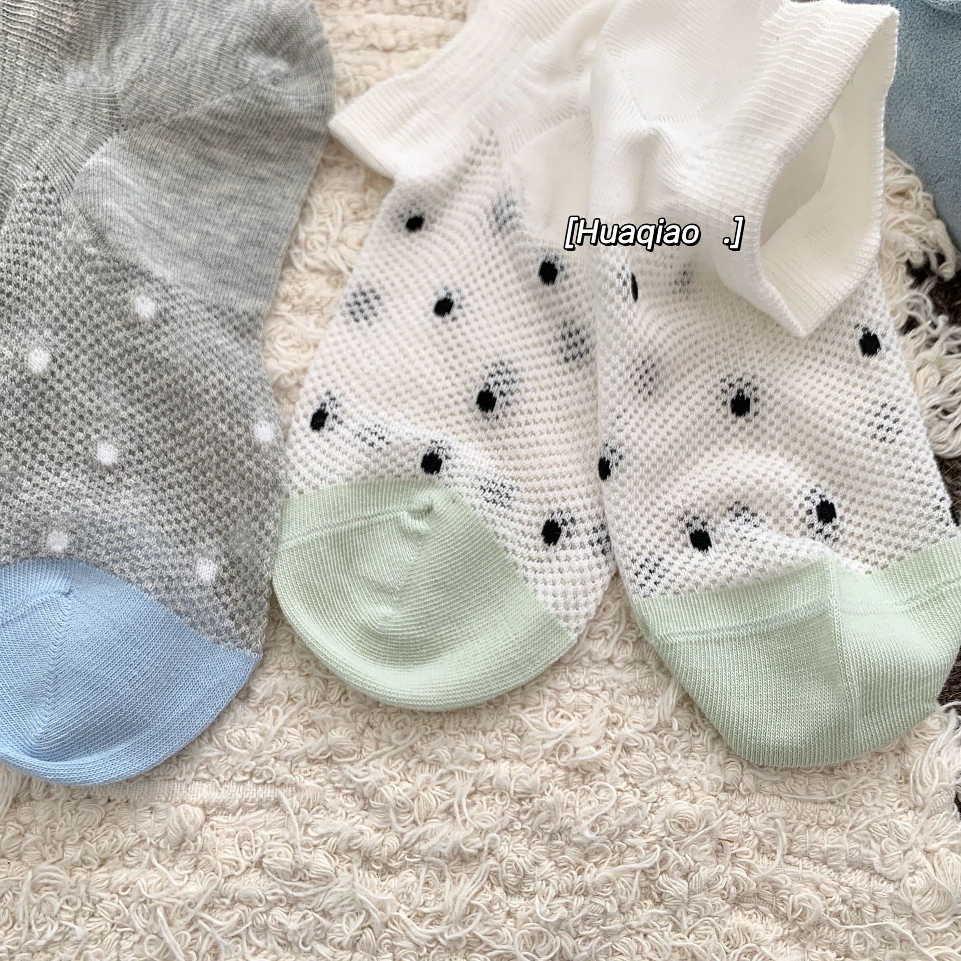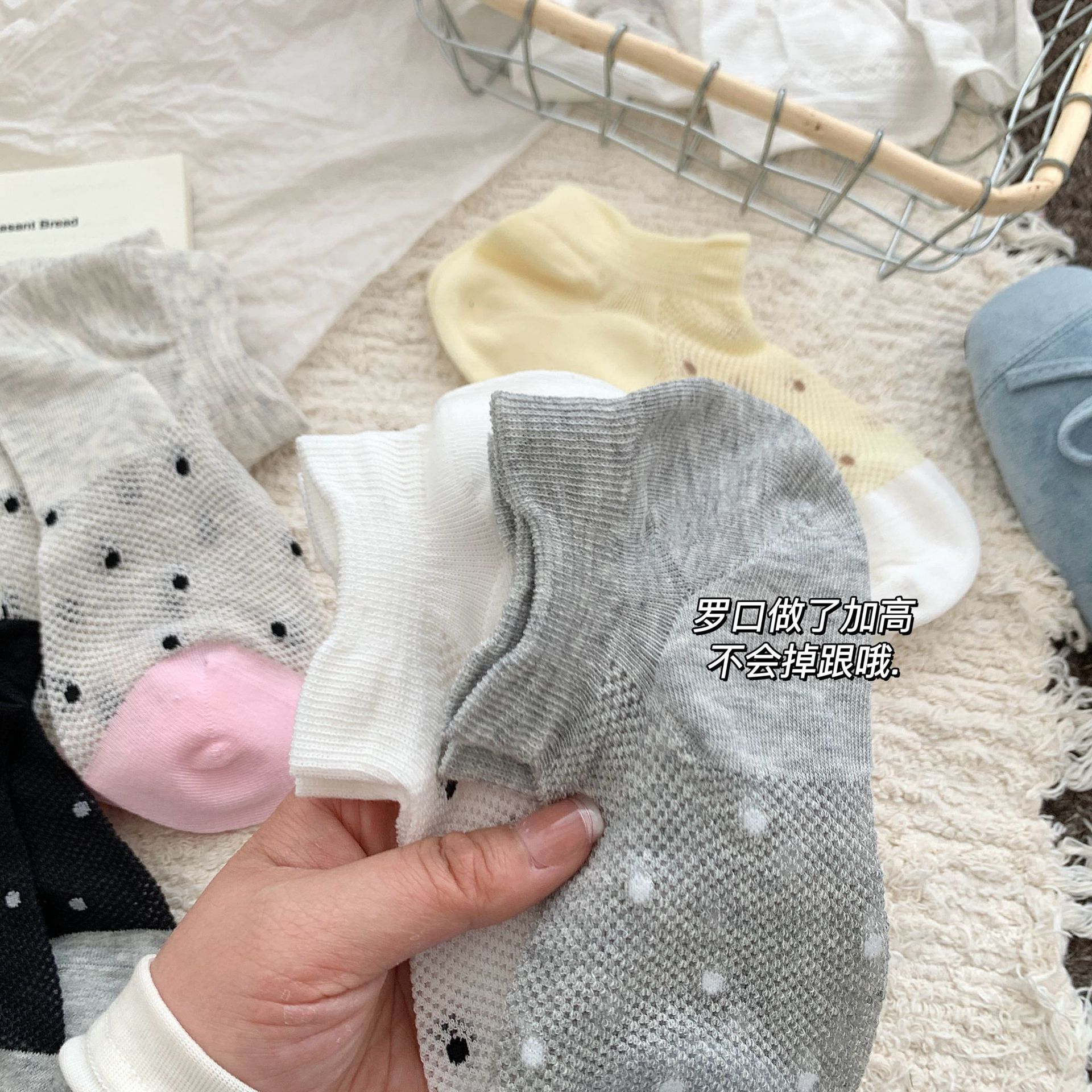 봄과 여름 새로운 스타일 양말 여성 한국 스타일 인스 타 그램 스타일 웨이브 도트 보트 양말 얇은 메쉬는 통기성 캐주얼 얕은 입 짧은 양말로 떨어지지 않습니다