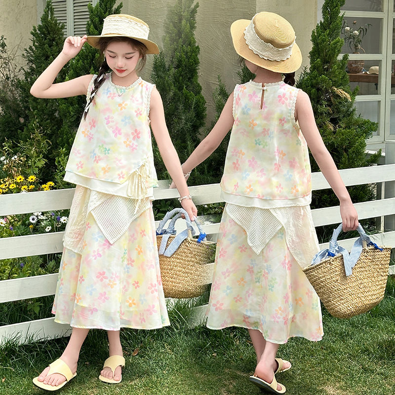 소녀의 여름 원피스 2025 새로운 소녀들의 여름 원피스 휴일 스타일 원피스 어린이 여름 꽃 잠 못 이루는 치마스토어 가기