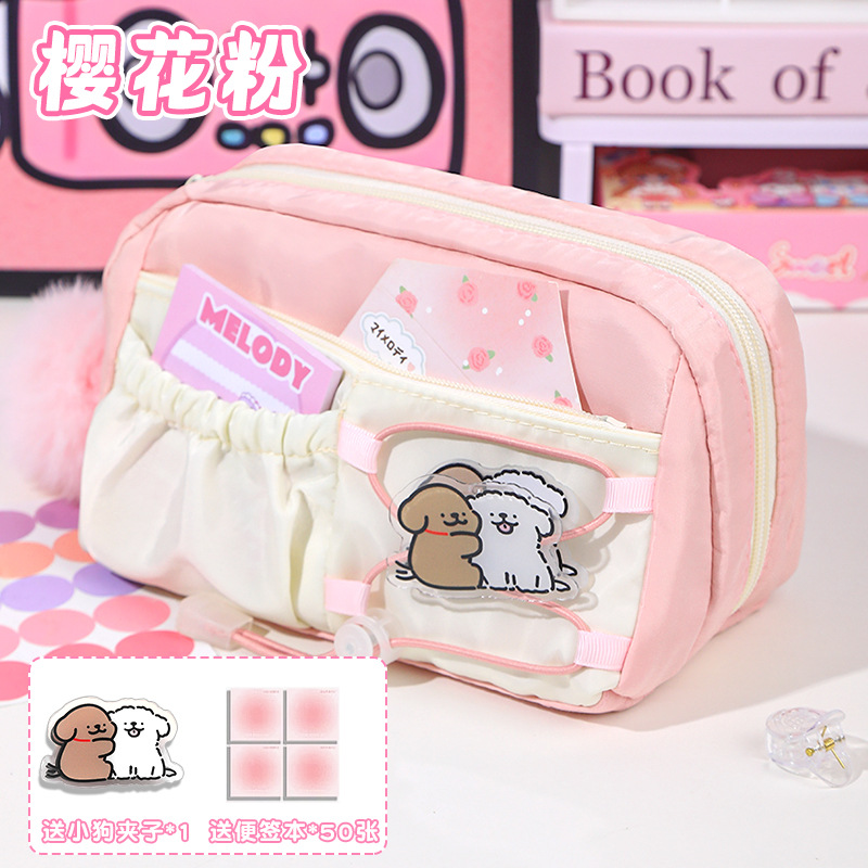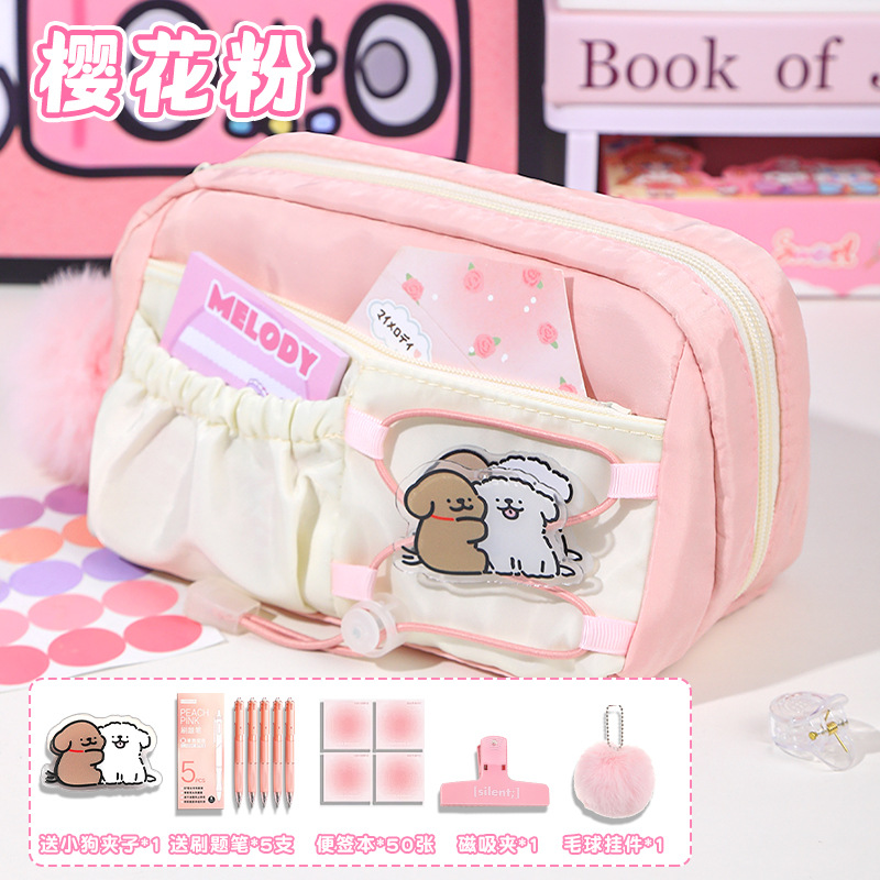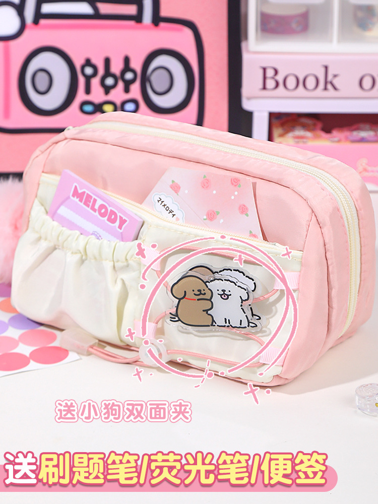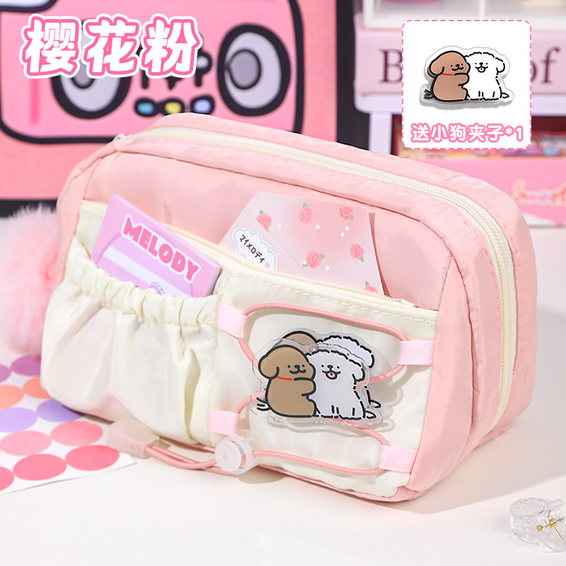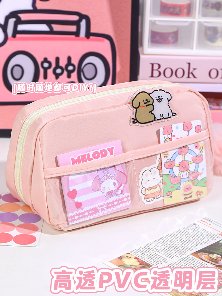 라인 강아지 연필 가방 소녀와 어린이를위한 고급스러운 스타일의 문구 상자 공주 연필 상자 간단한 투명 통증 가방스토어 가기