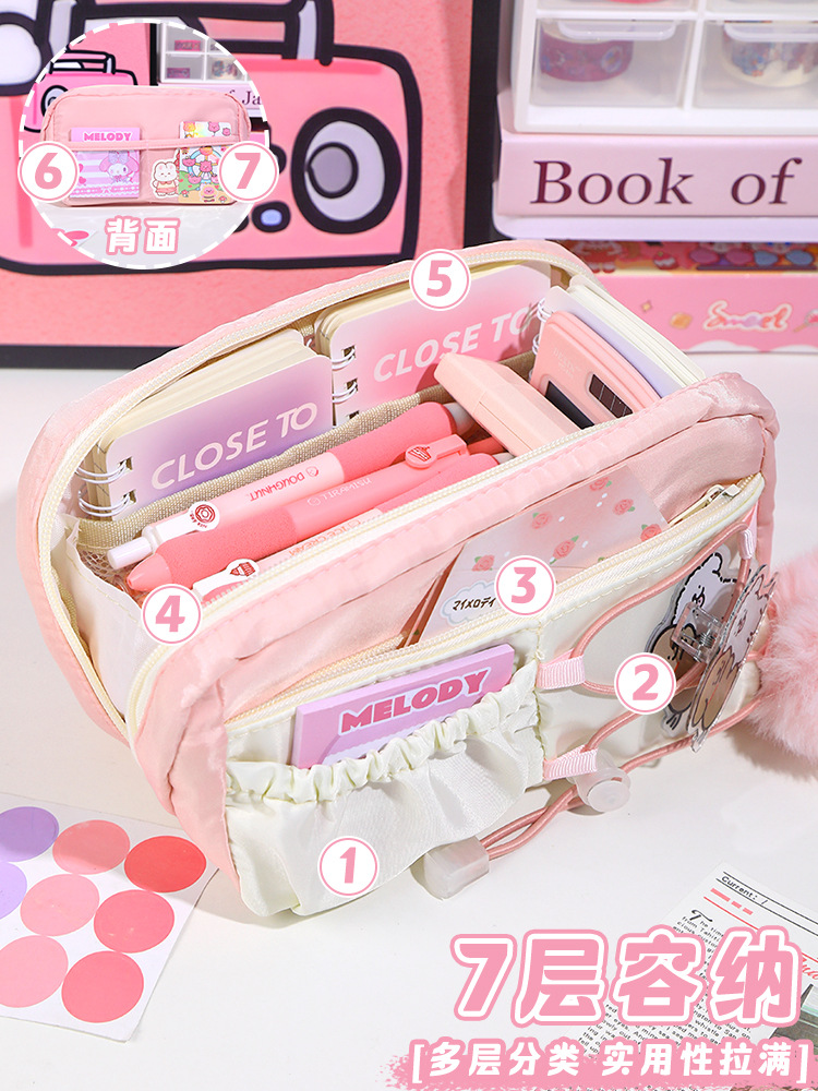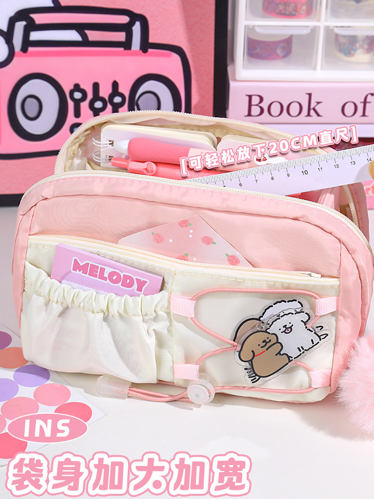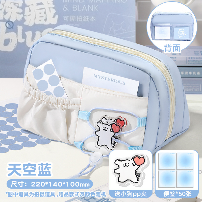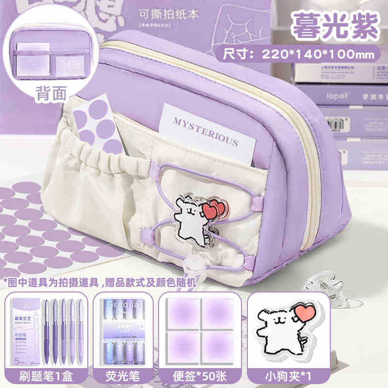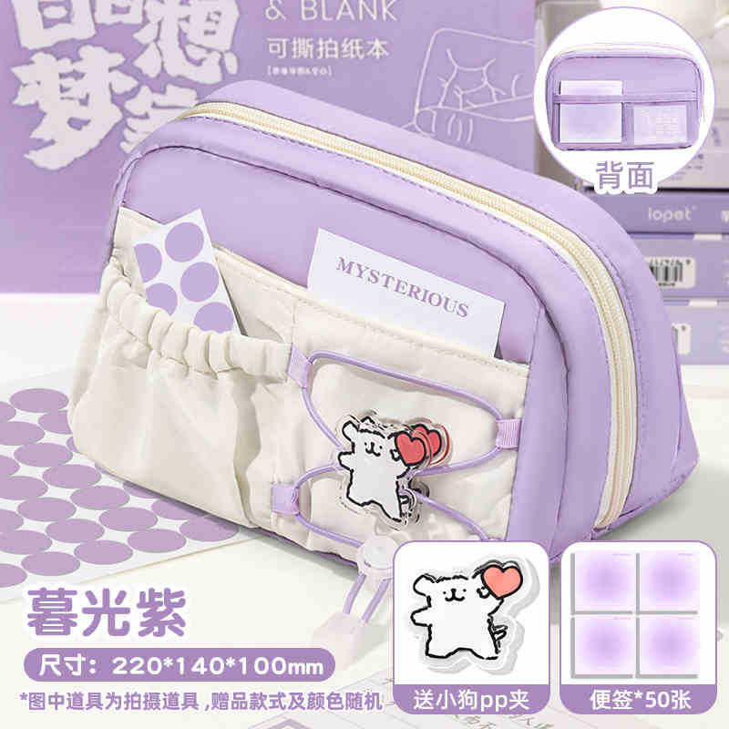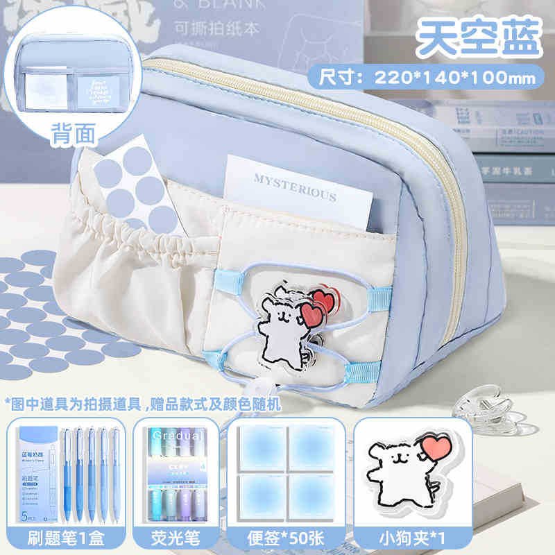 라인 강아지 연필 가방 소녀와 어린이를위한 고급스러운 스타일의 문구 상자 공주 연필 상자 간단한 투명 통증 가방스토어 가기