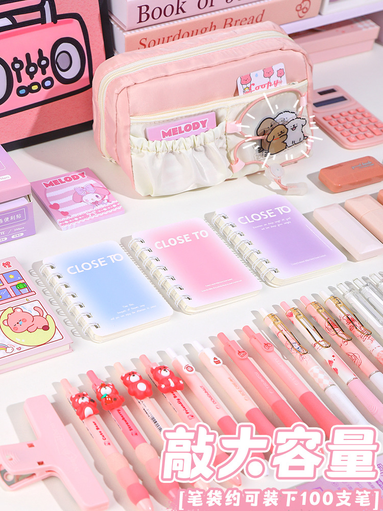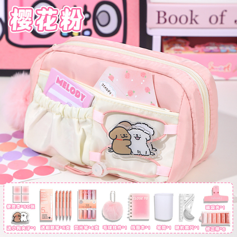 • [슈퍼밸류세트] 사쿠라 핑크/동색 젤펜 5개 + 하이라이터 4개 + 그라데이션 노트 50개 + 강아지 클립